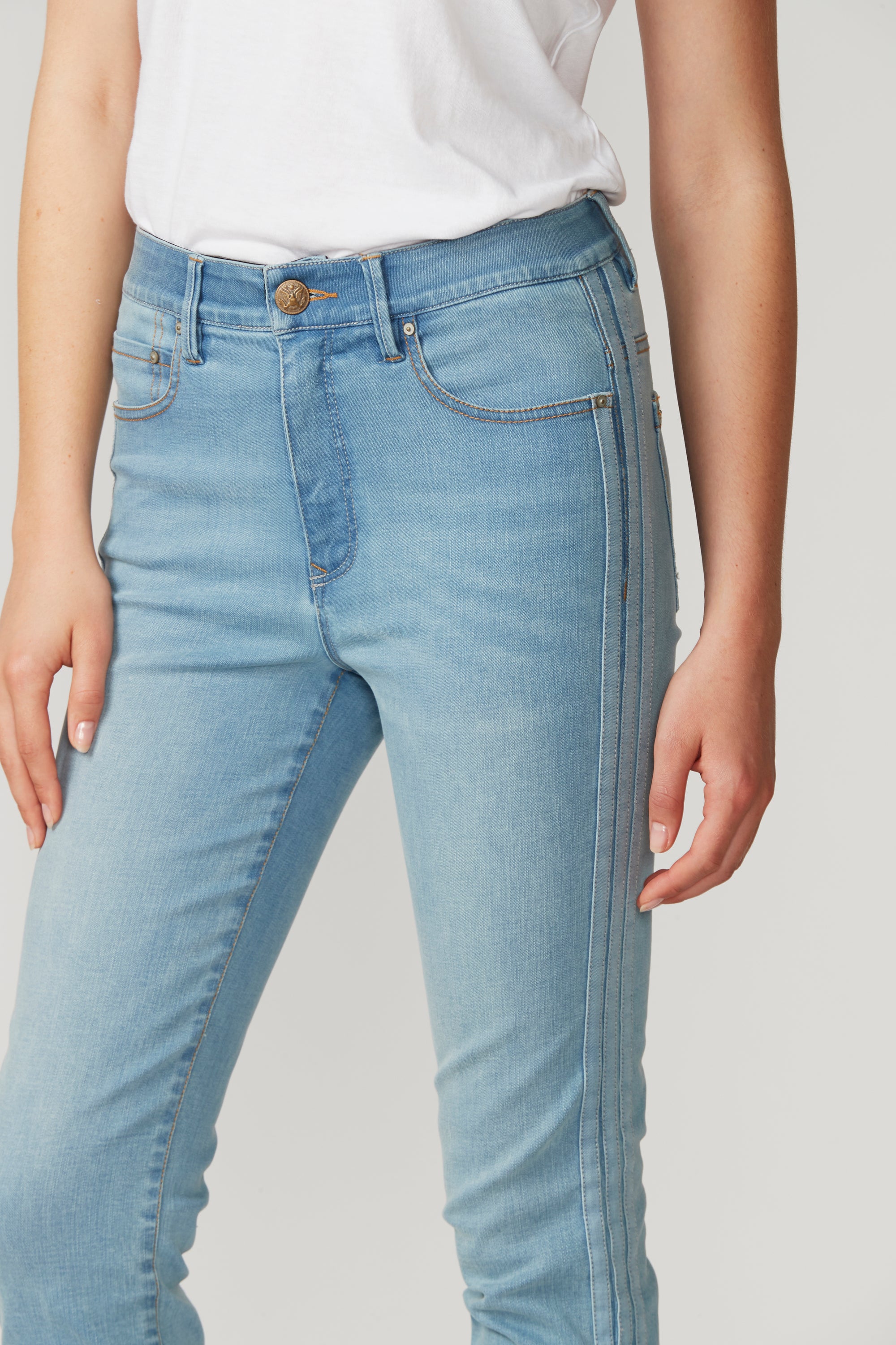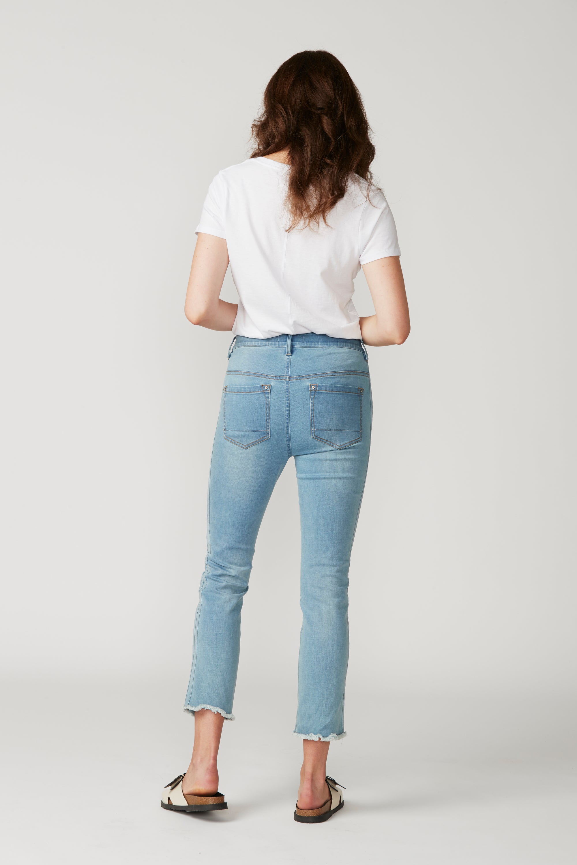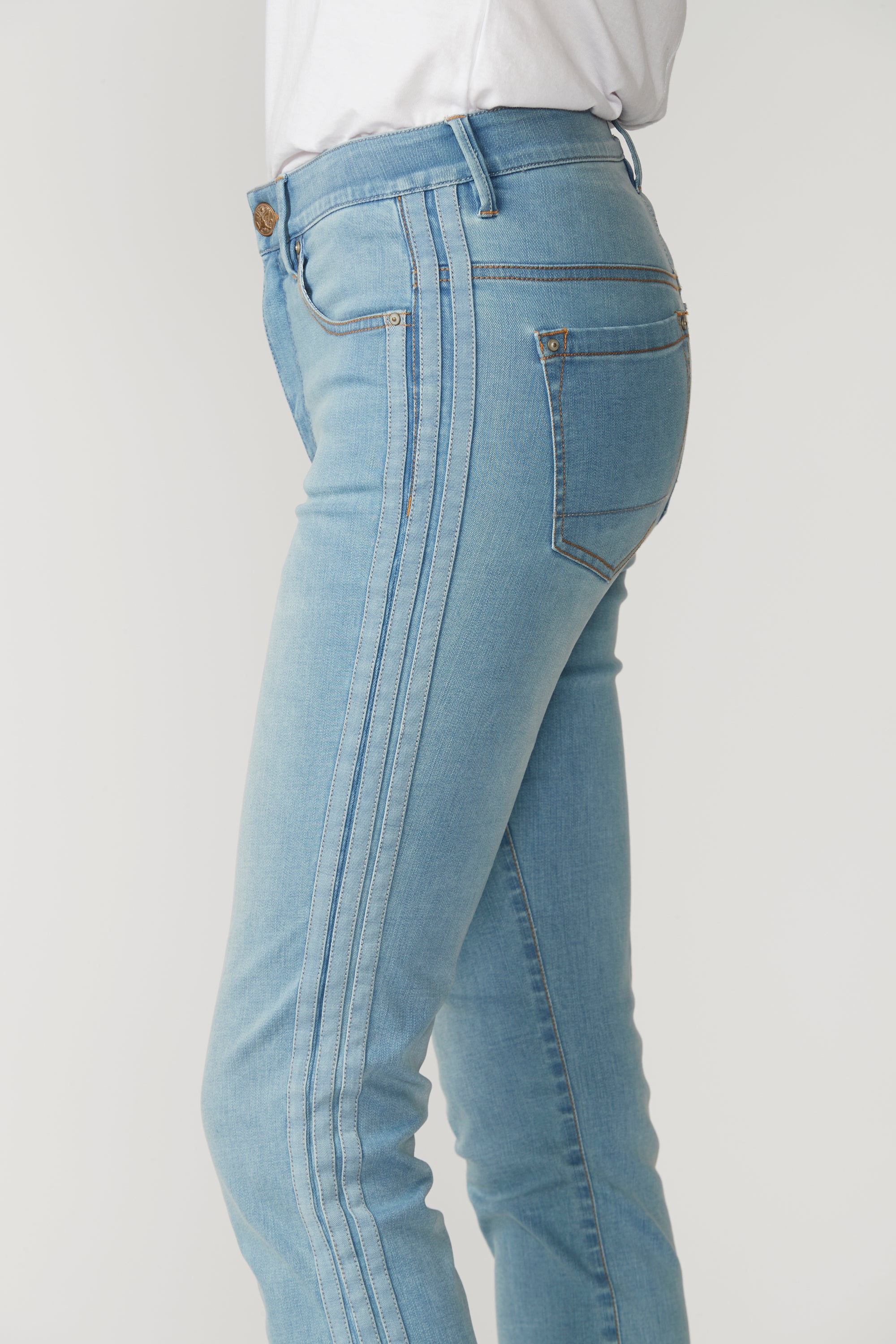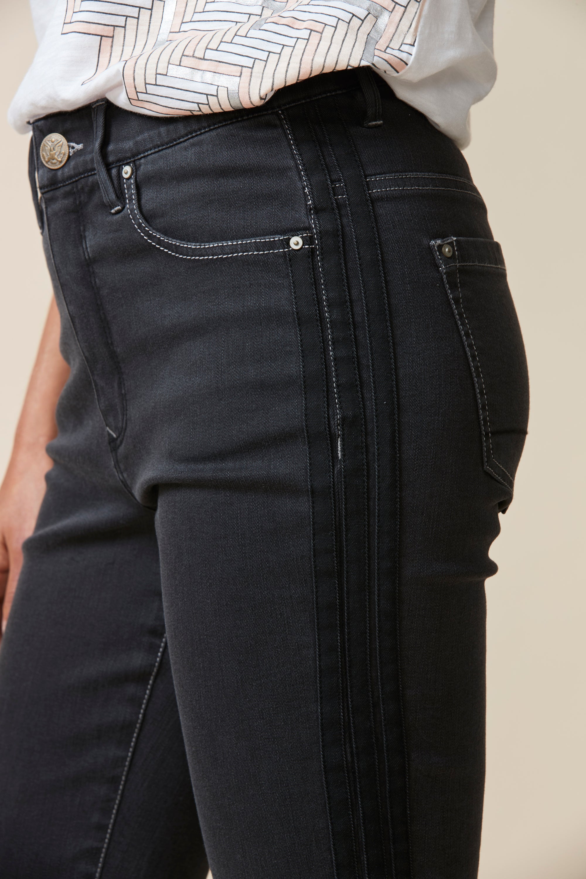 Straight fit mid rise jeans in a super stretchy denim, featuring a frayed hem and self stripe detail at outside leg. Our signature stretch waist construction is so comfortable you can wear these jeans day in day out.