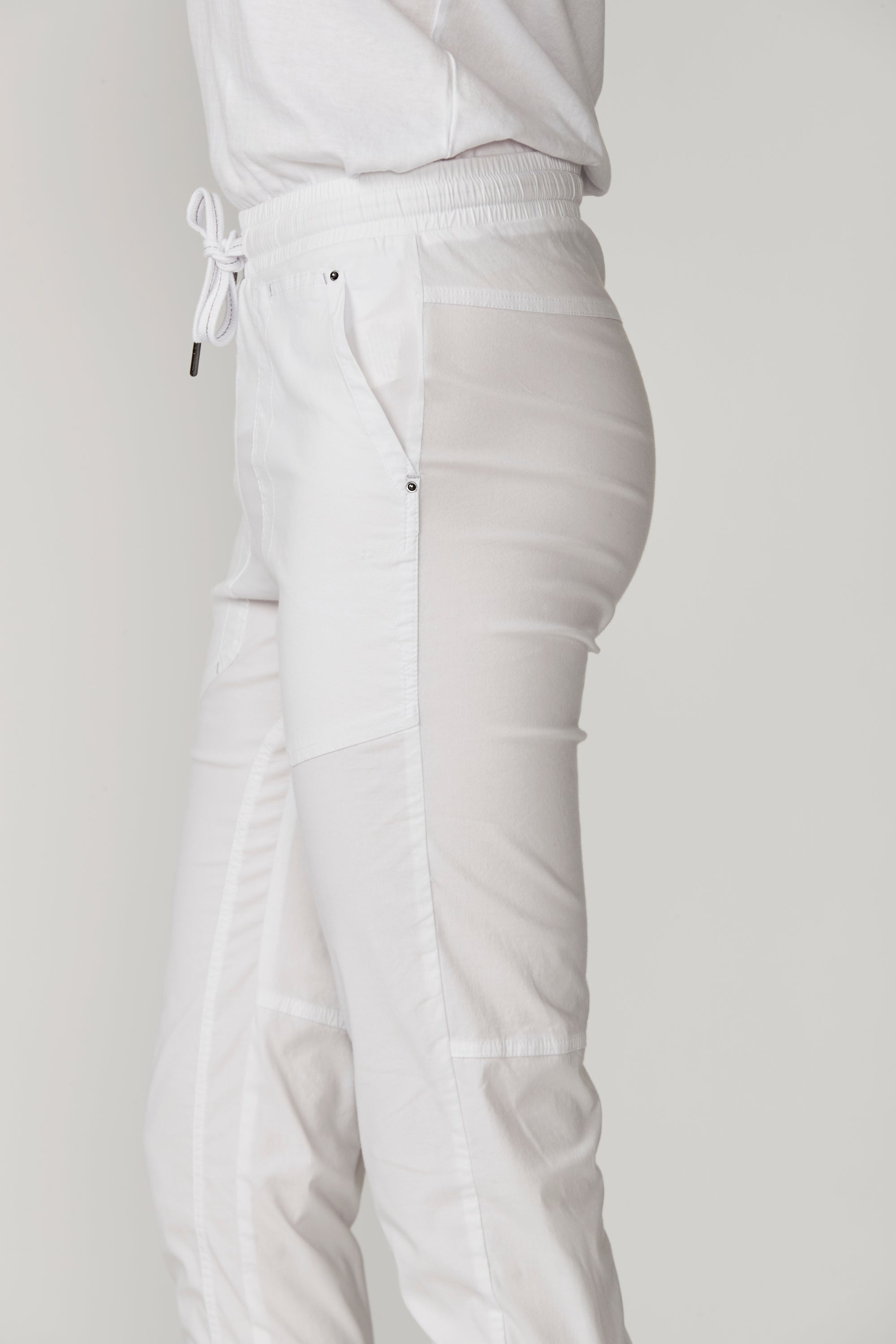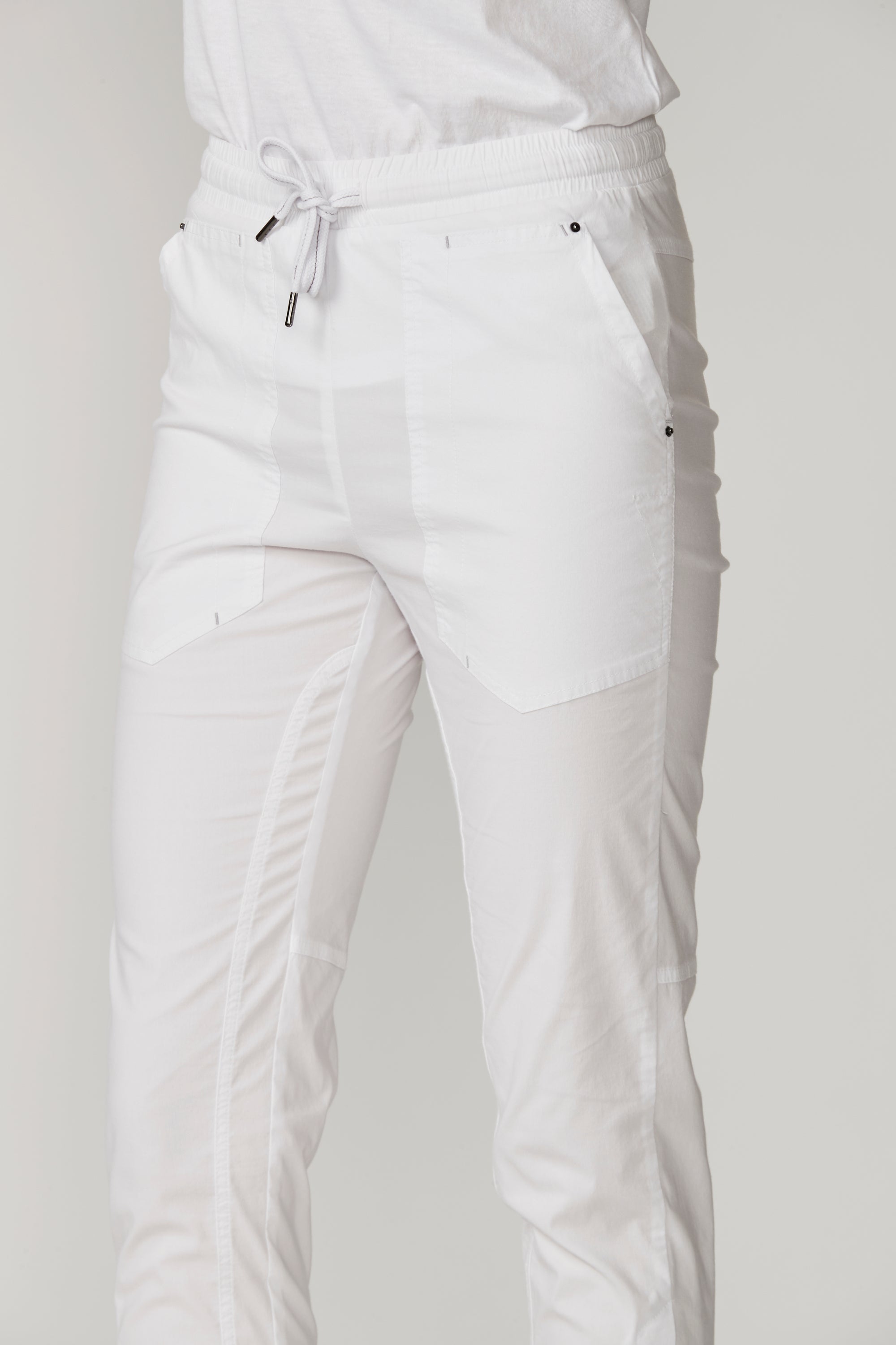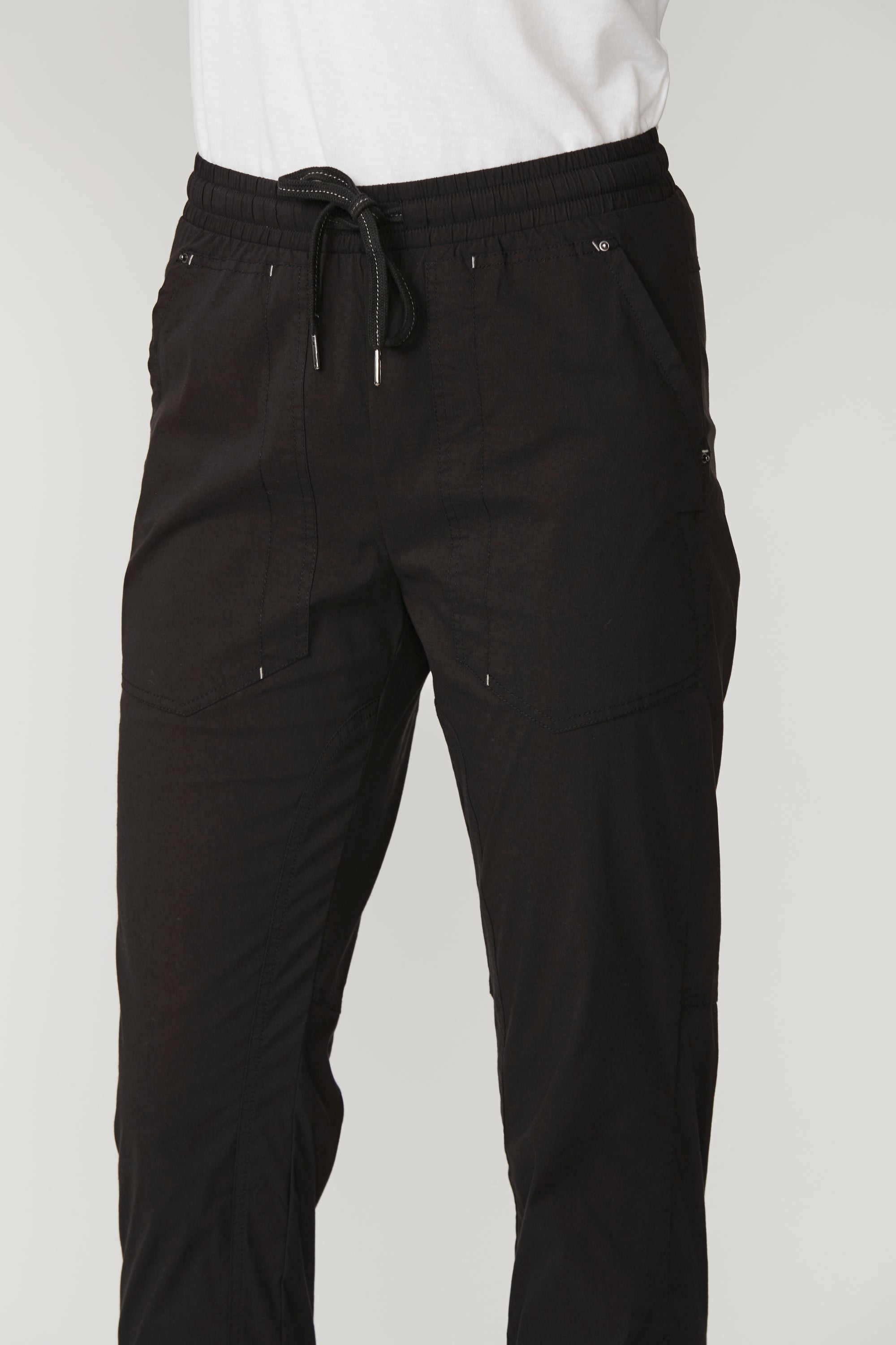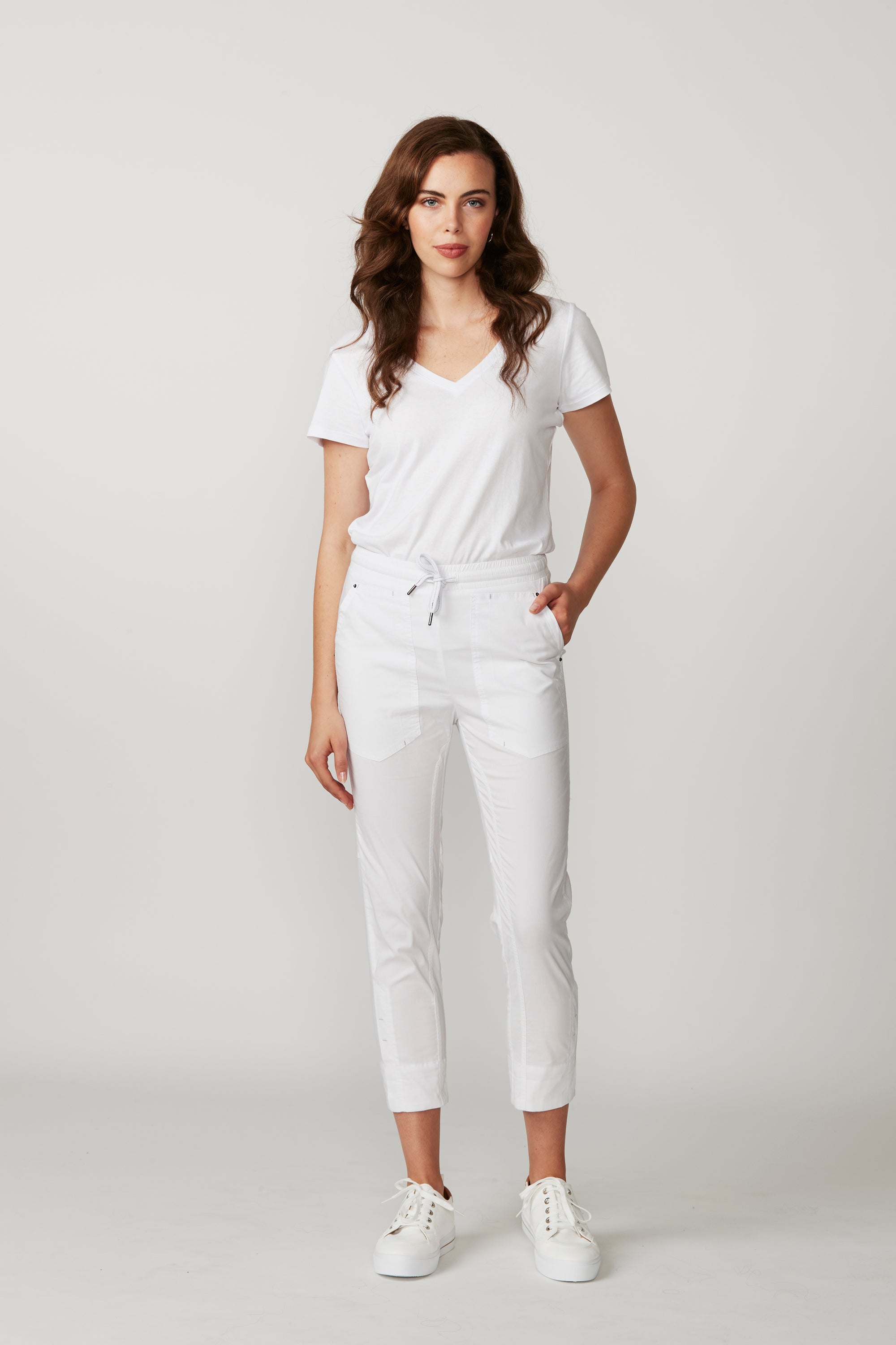 The LTL port 7/8 pant – features elasticated waist with adjustable drawcord, front pocket with antique nickel hardware & relaxed leg with optional turn up cuff. Perfect lightweight cotton rich stretch pant for everyday.