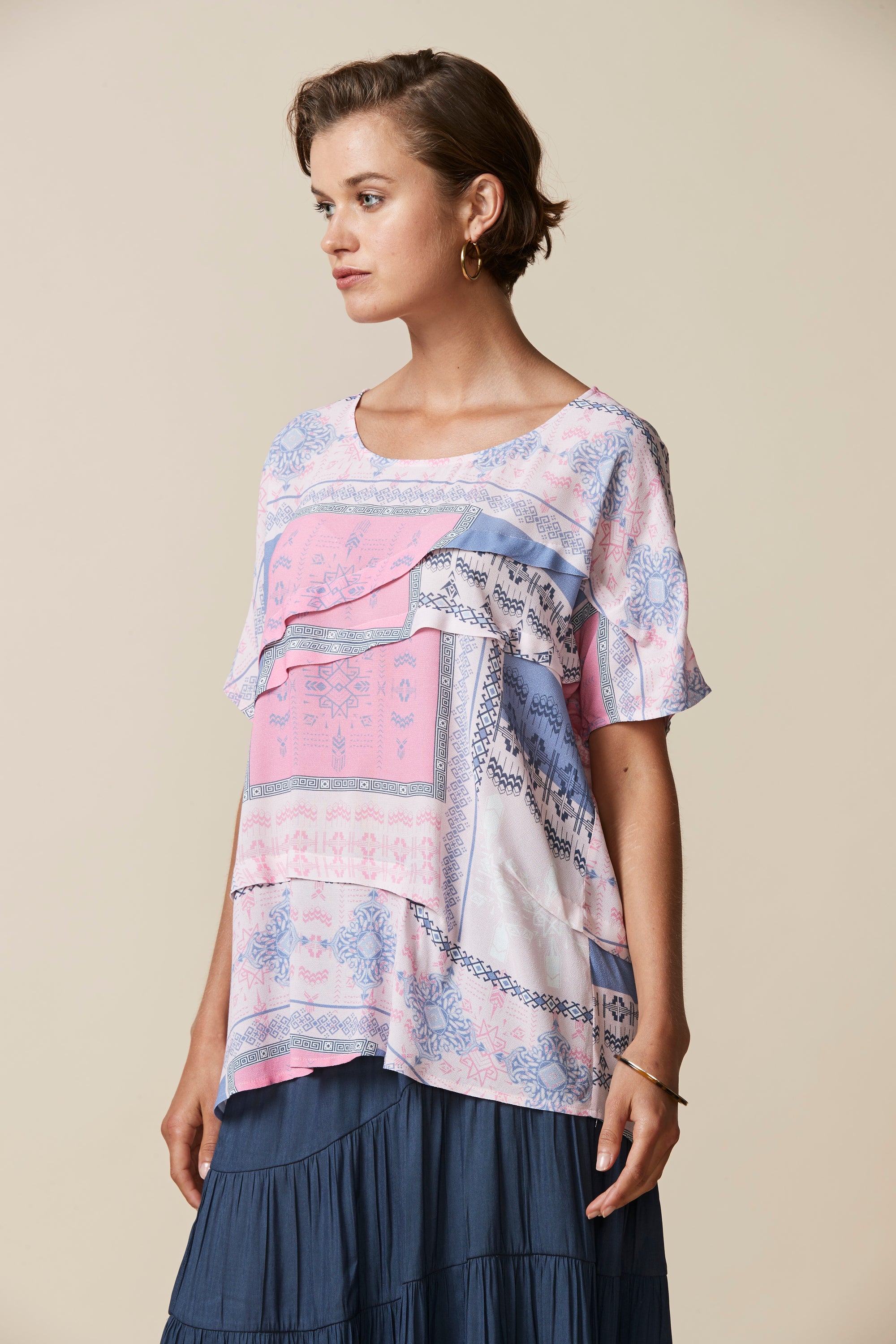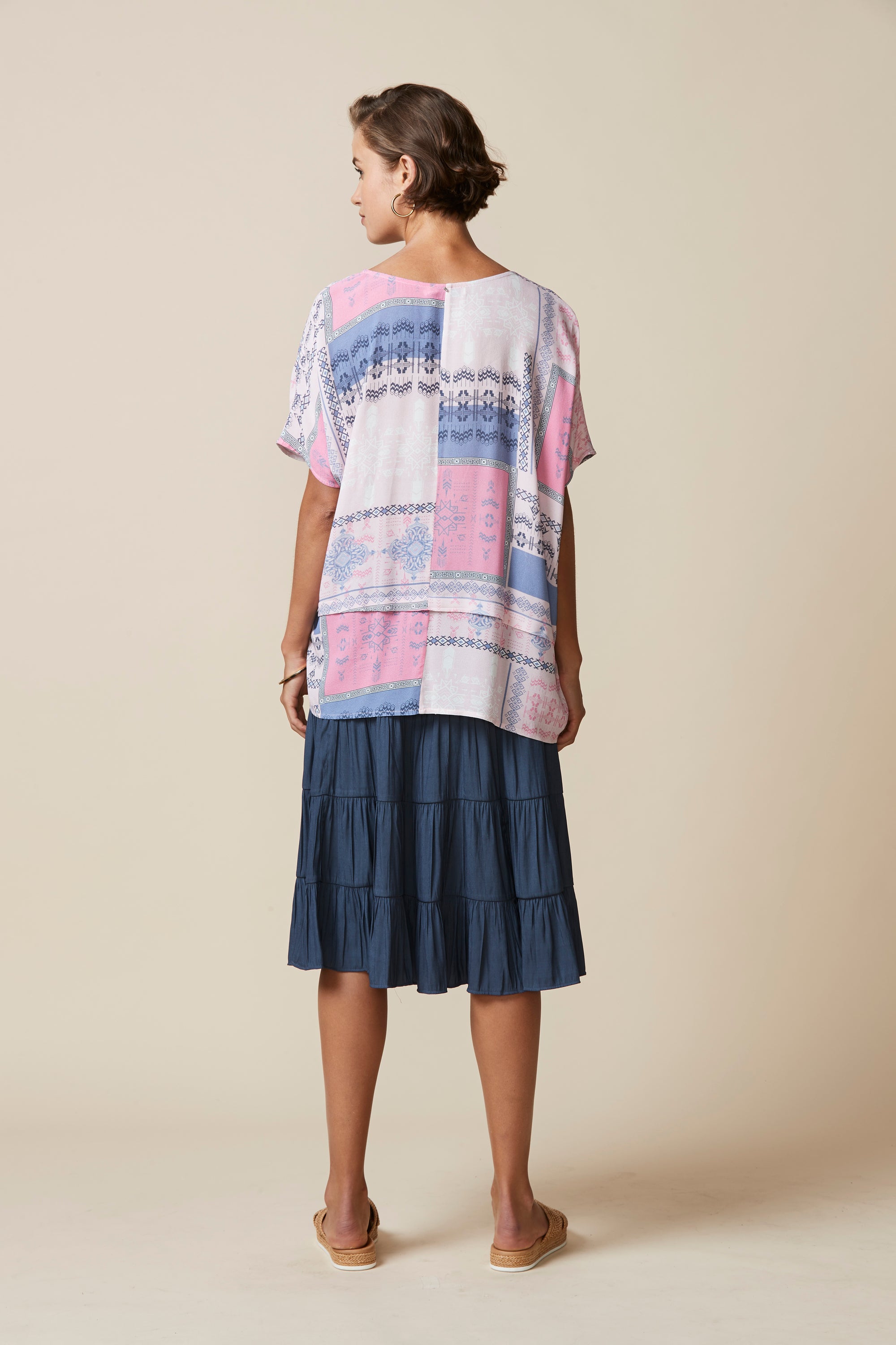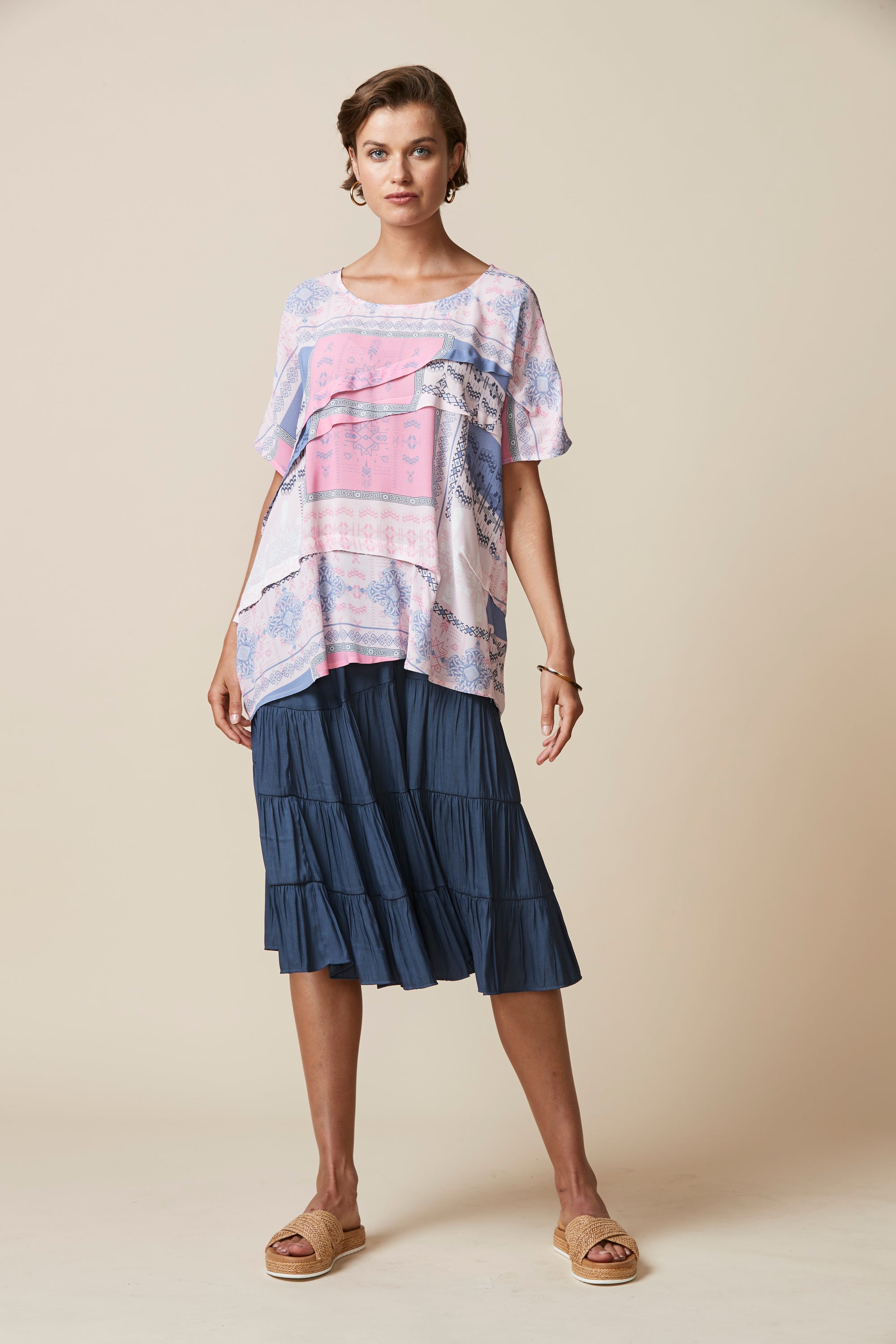 This oversized scoop neck top in our reef print features tuck detailing, an asymmetric hemline and a soft flattering drape over the body.