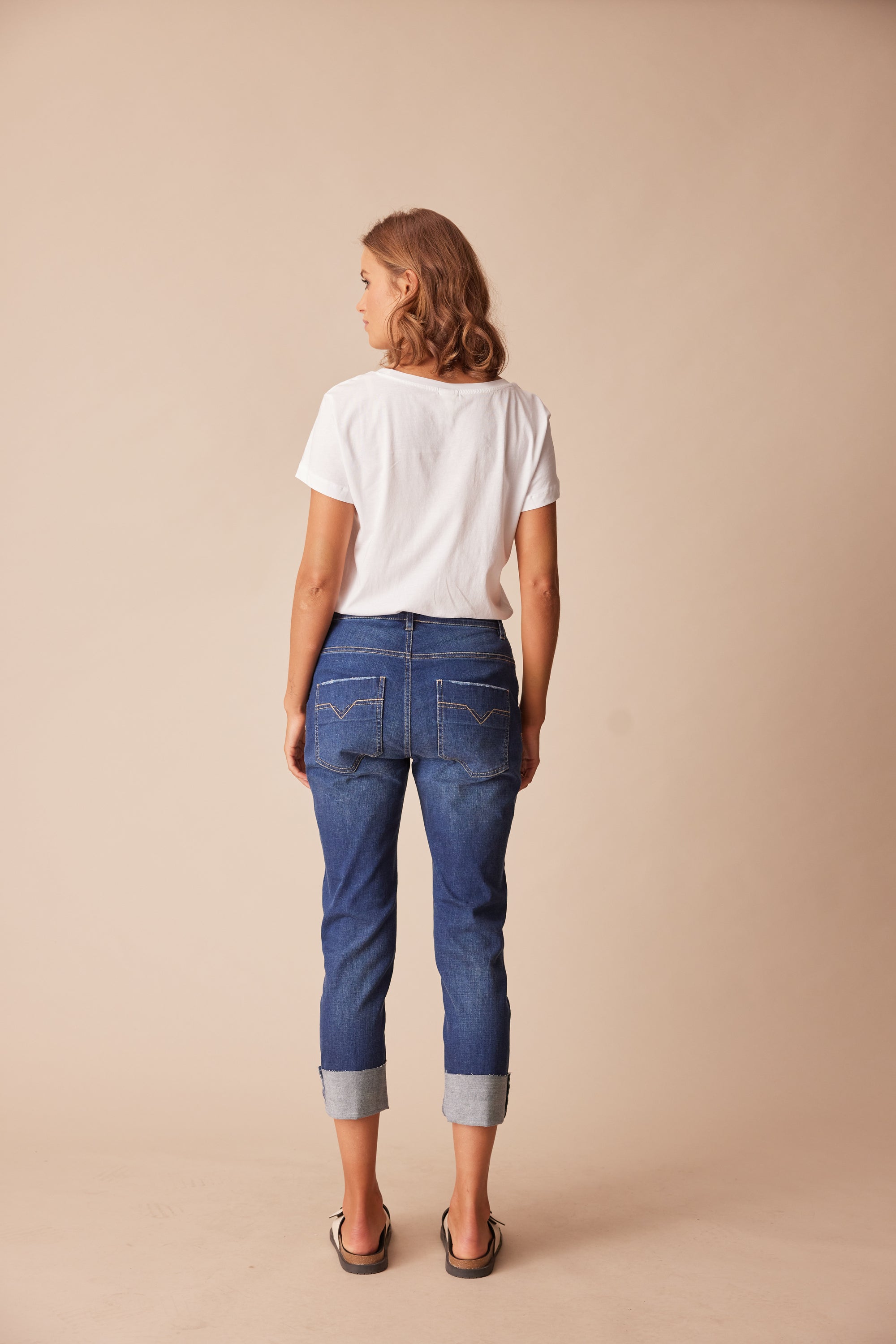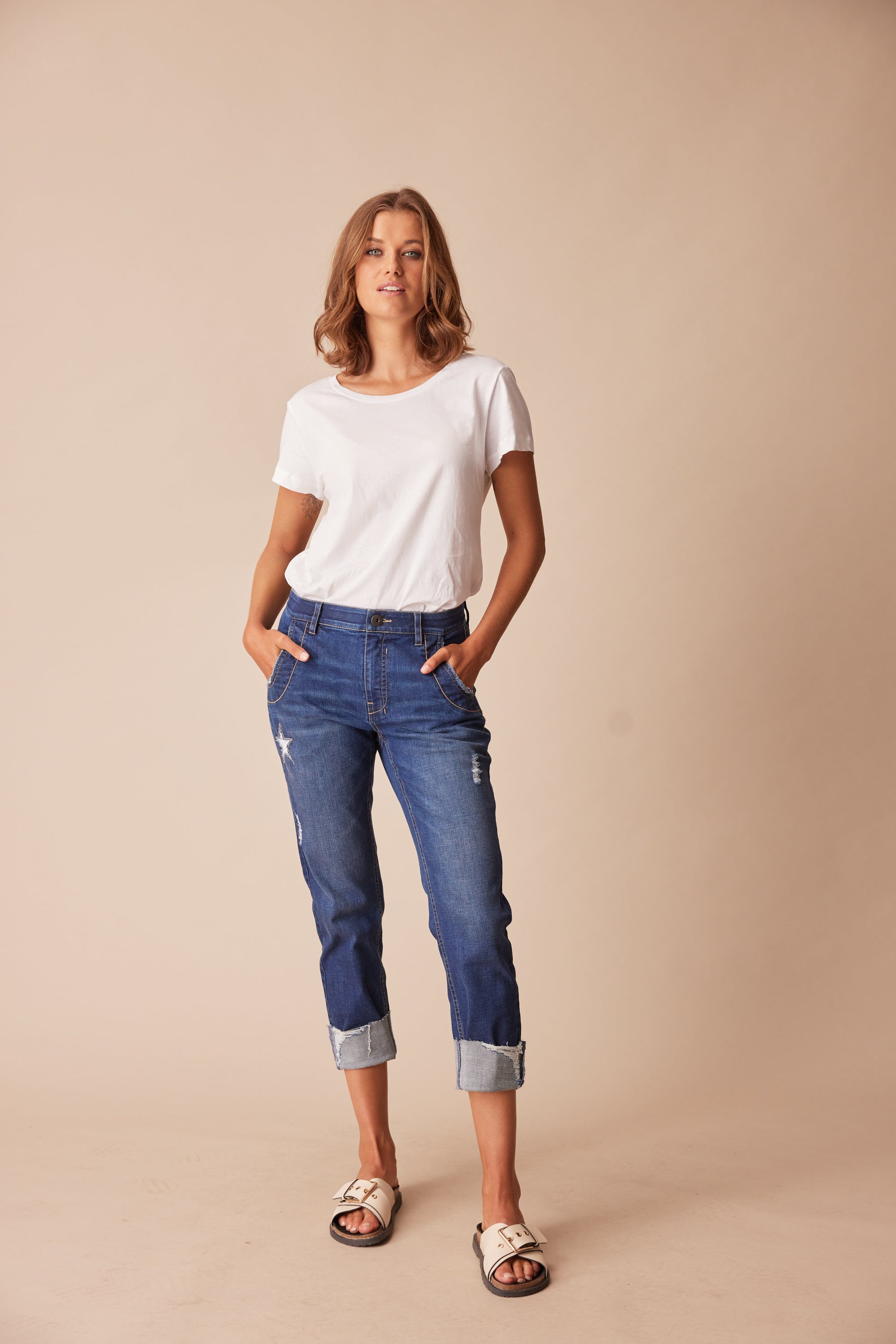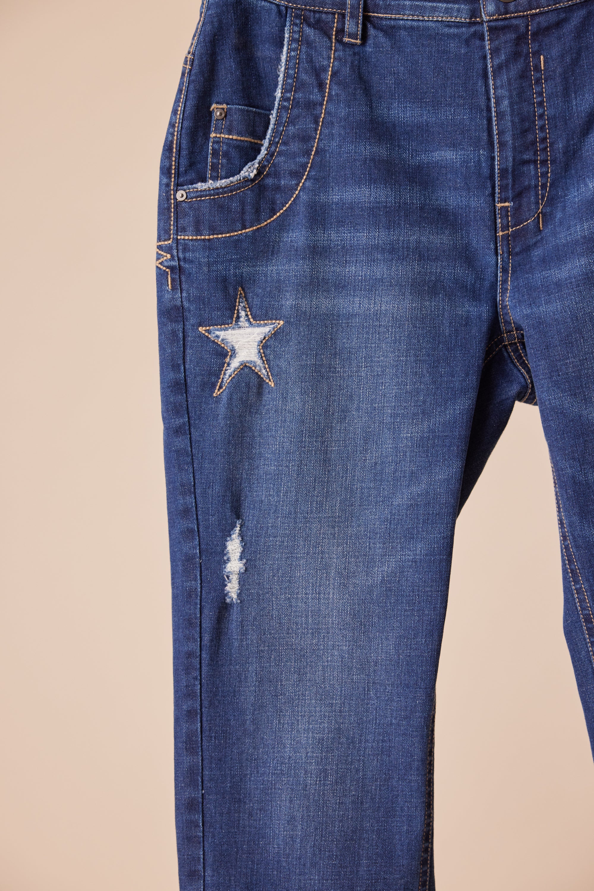 Our favourite casual jean fit has been re-invented for spring with embroidery stitching, distress detailing and optional deep hem turn-up. Our signature stretch waist construction offers superior fit and comfort, while the special garment wash creates a soft handle & distressed finish.