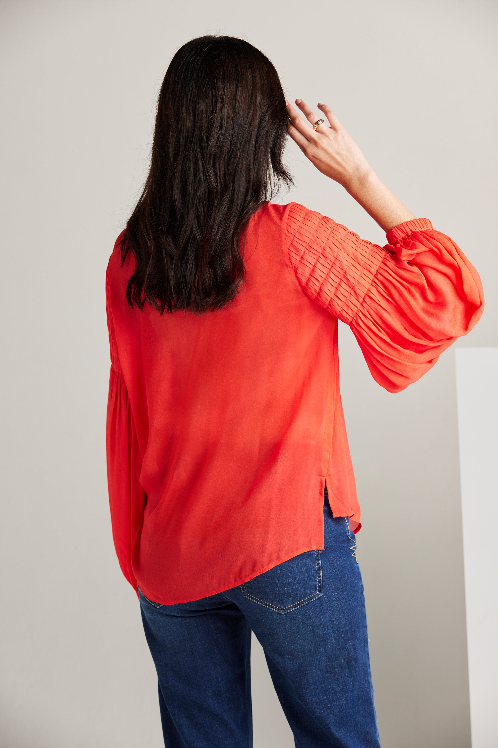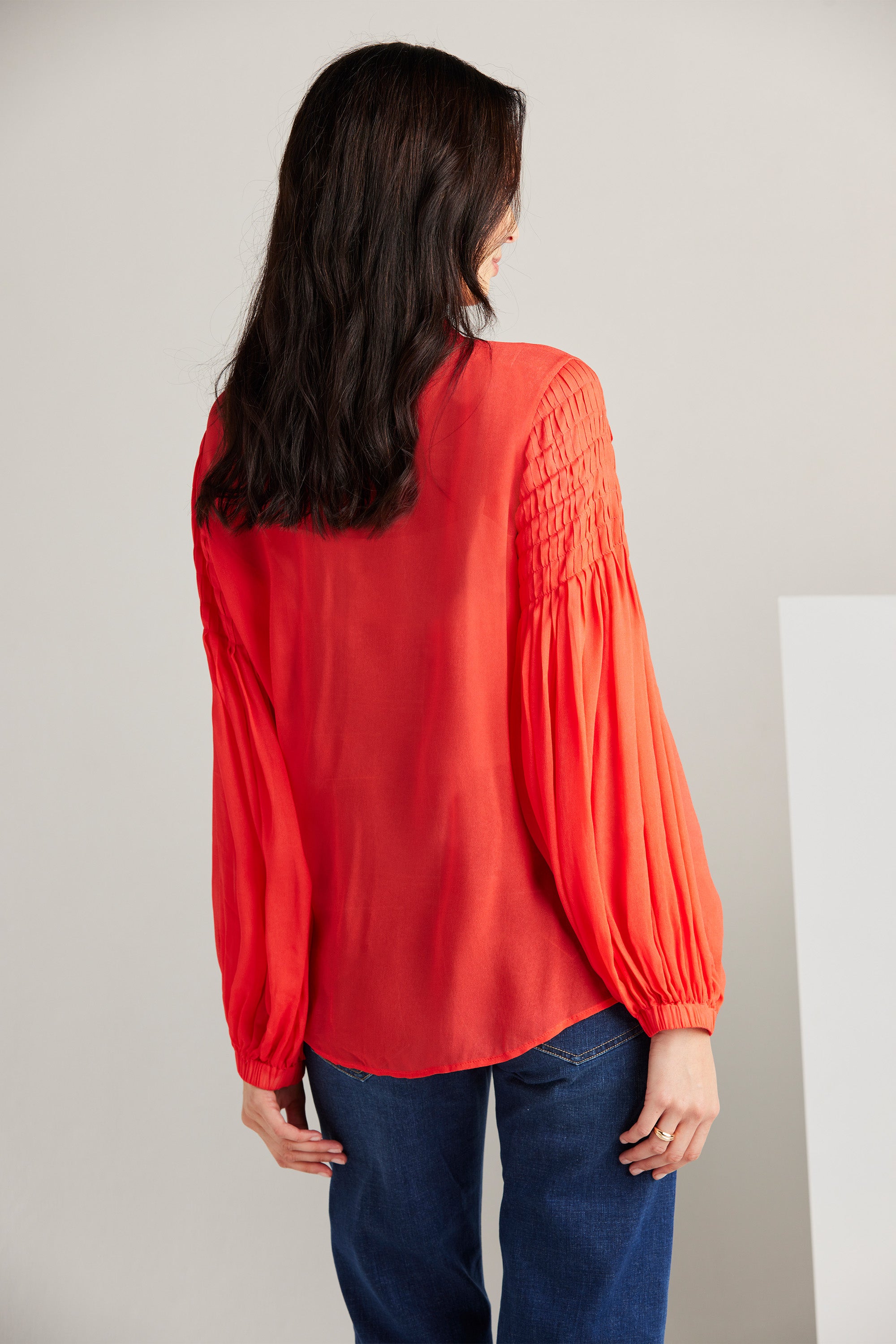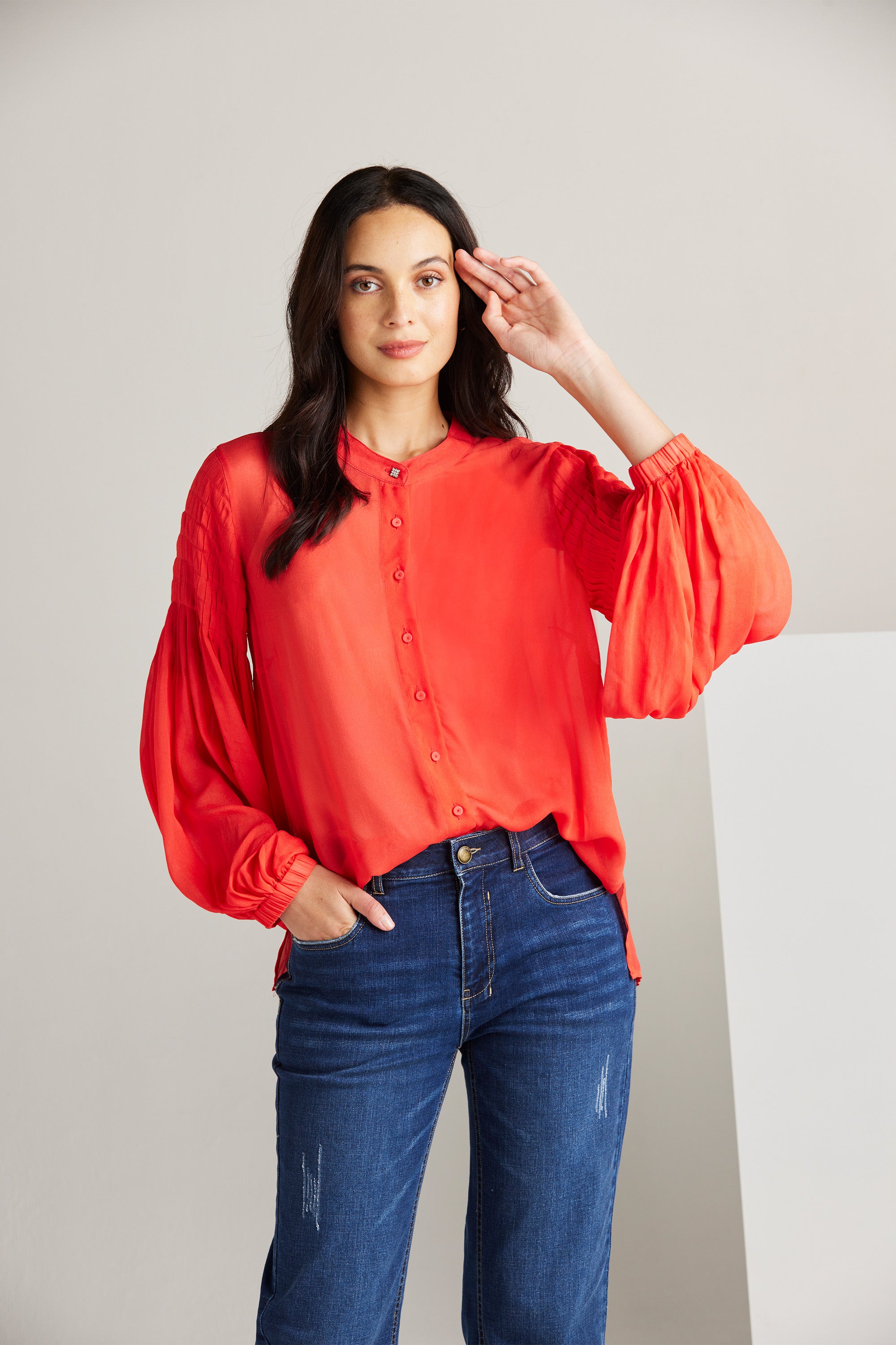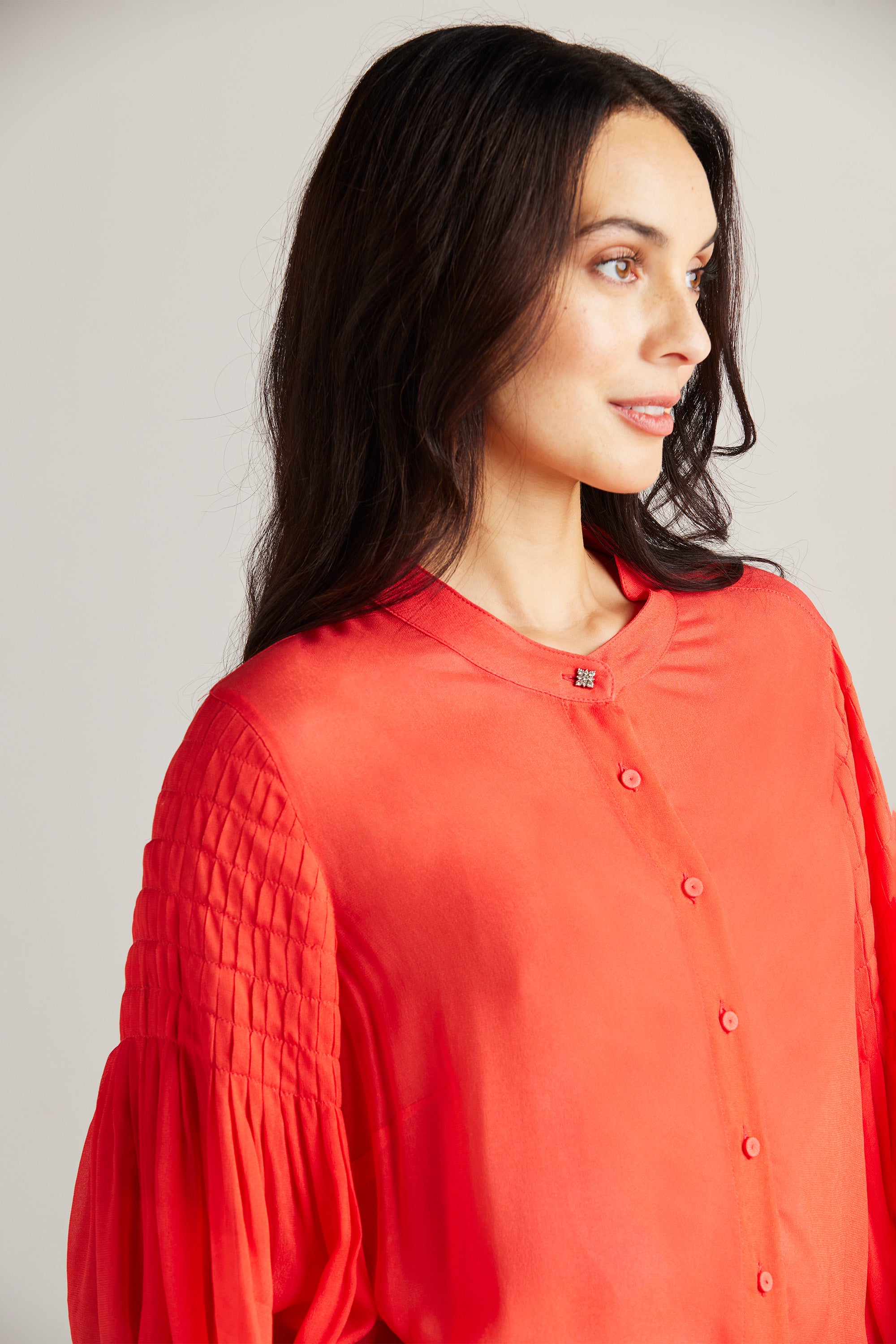 The Art Shirt is a refined and charming style that's ideal for welcoming the new season. It boasts delicate pleat details on the sleeve, which create a voluminous and billowing effect. The collar stand is embellished with a graceful jewel button, adding to the shirt's overall sophistication.