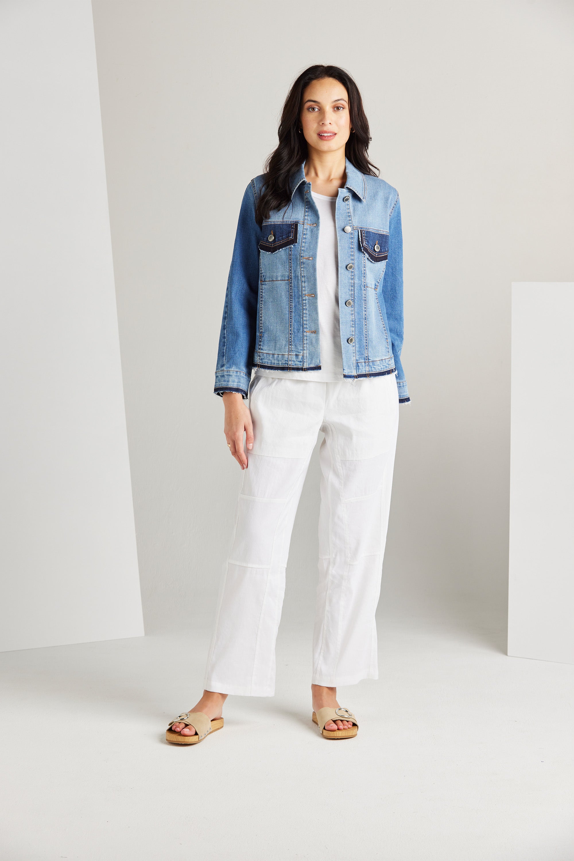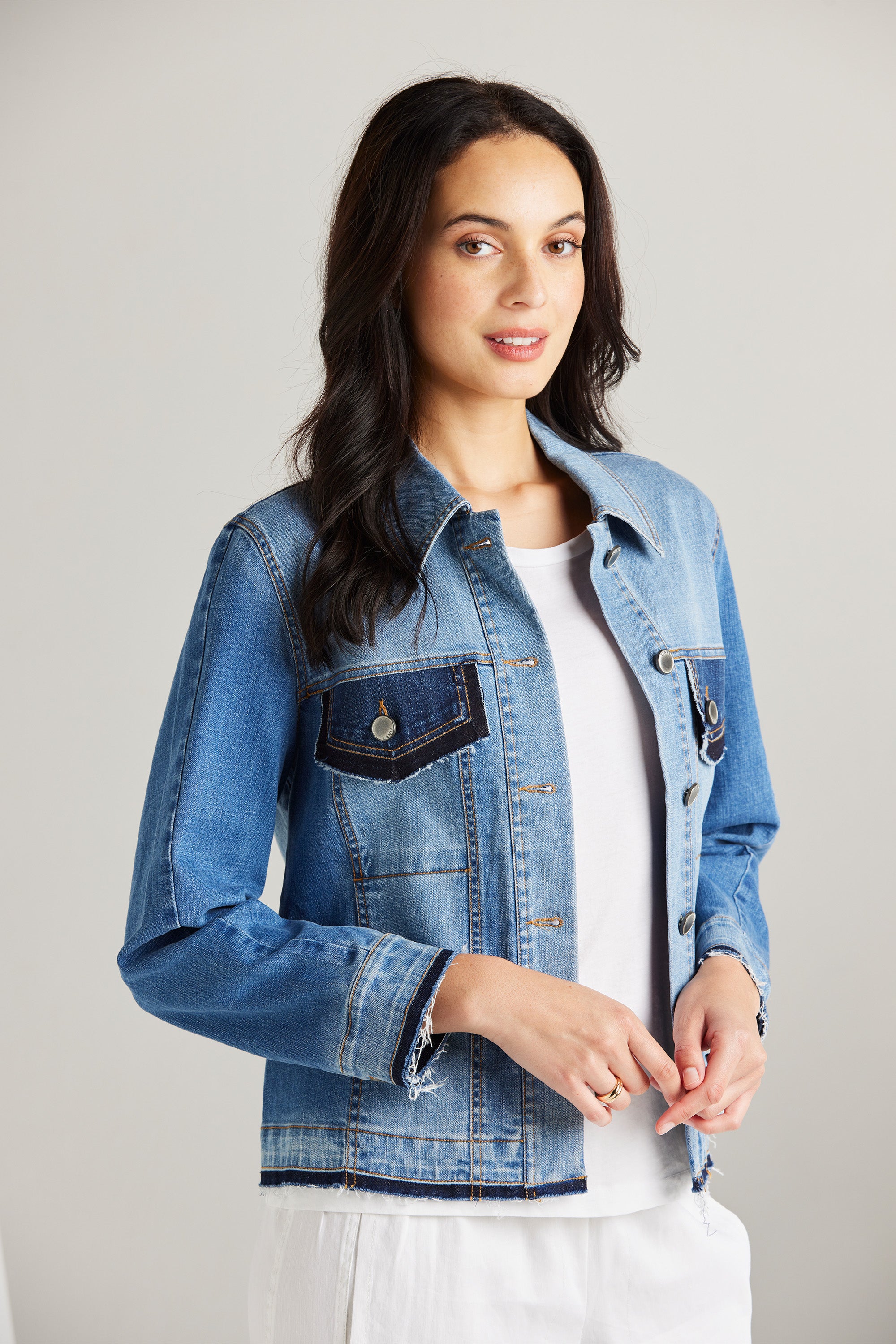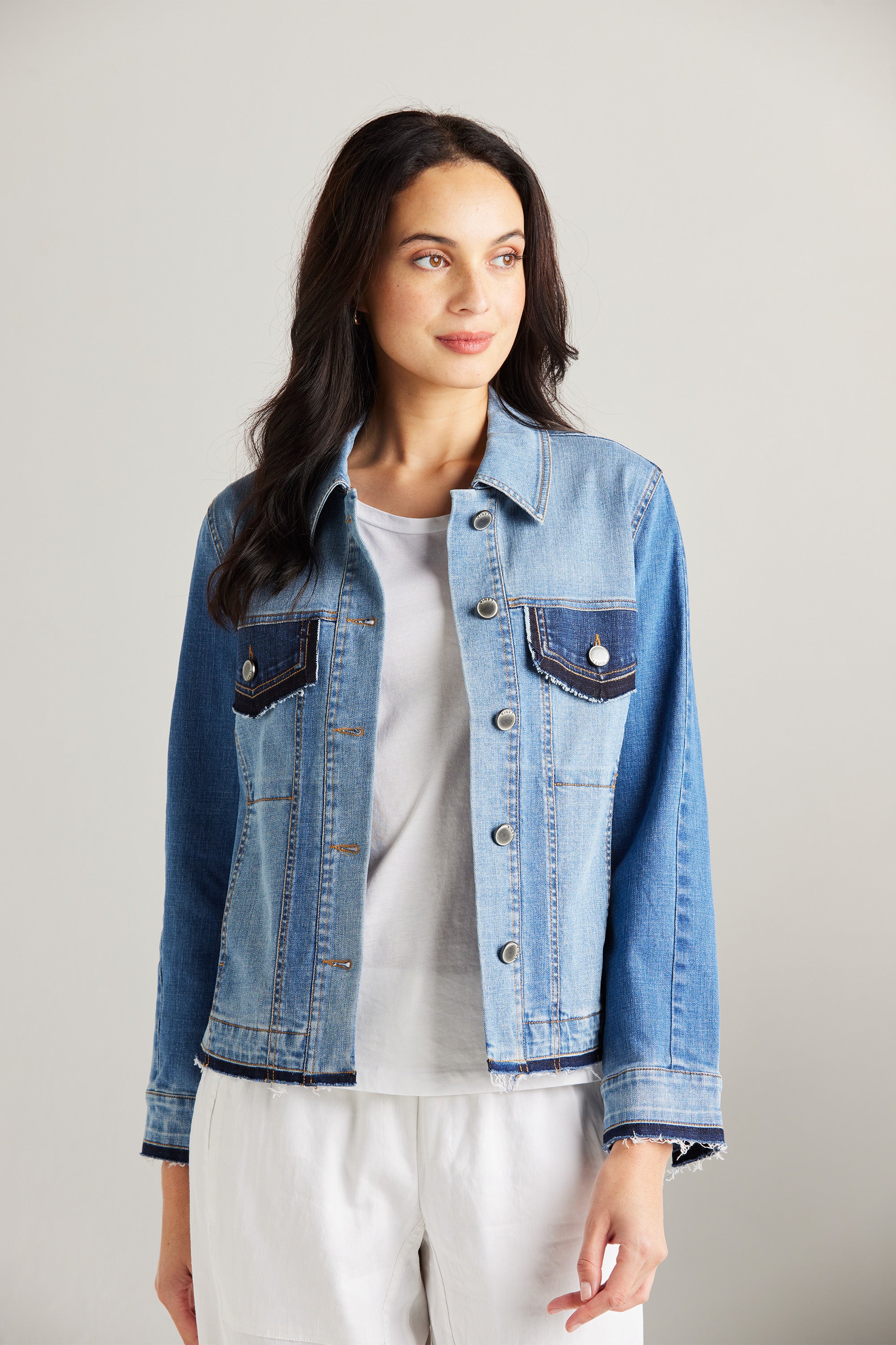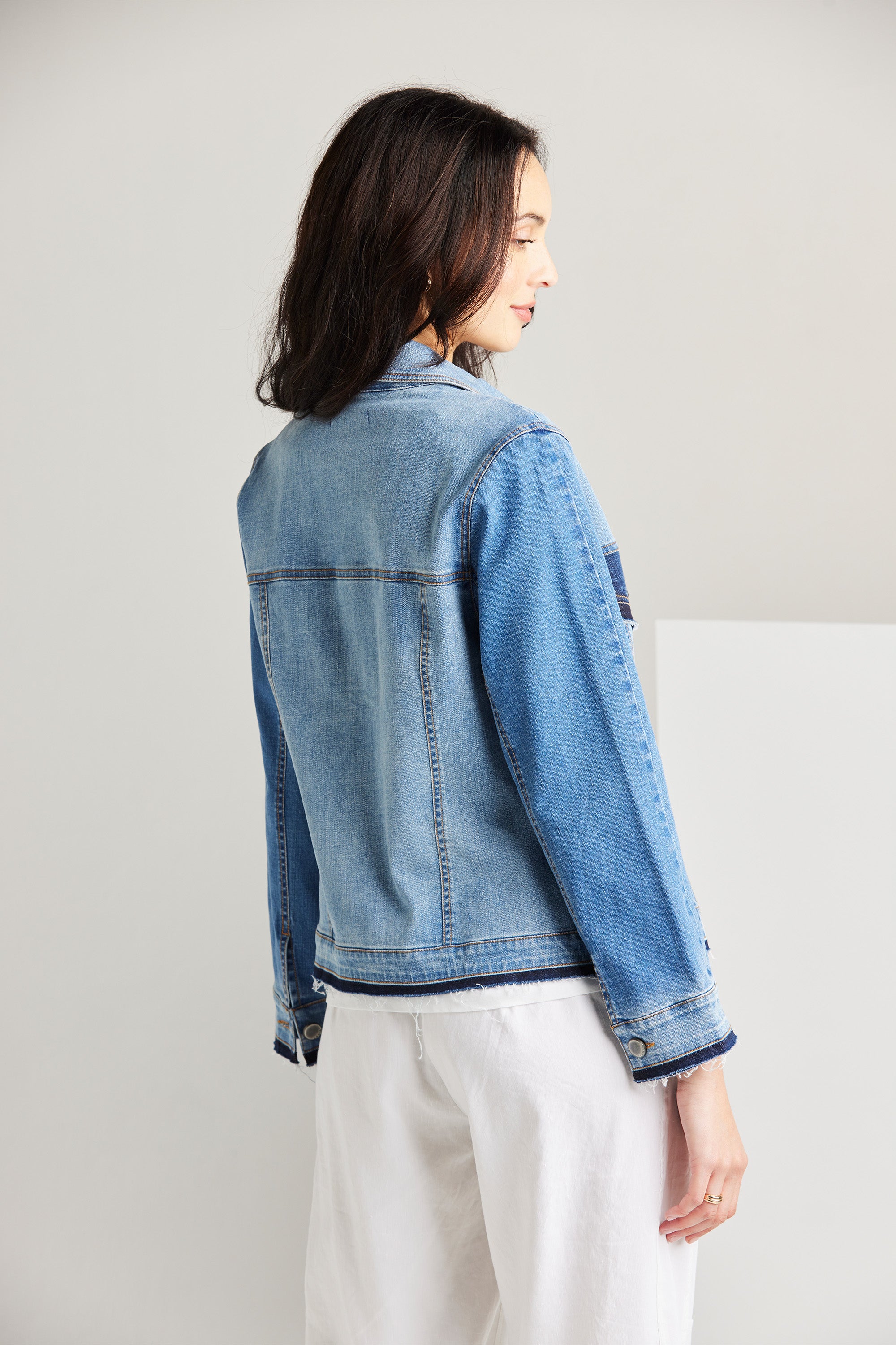 Introducing the Branch Jacket, the perfect addition to your wardrobe for a stylish and effortless look. Crafted with a unique two-toned garment–dye design featuring a raw edge that adds a contemporary touch, this denim jacket is a must-have for trans-seasonal dressing. The jacket showcases a contrast topstitch, front pockets, and metal buttons, making it a versatile piece that can be dressed up or down. Don't miss out on the chance to elevate your everyday look with the Branch Jacket.