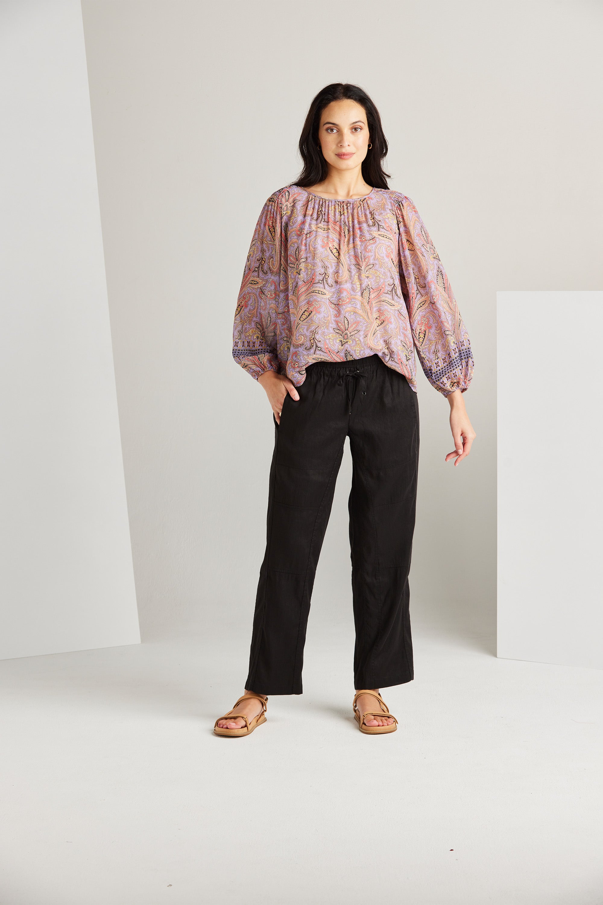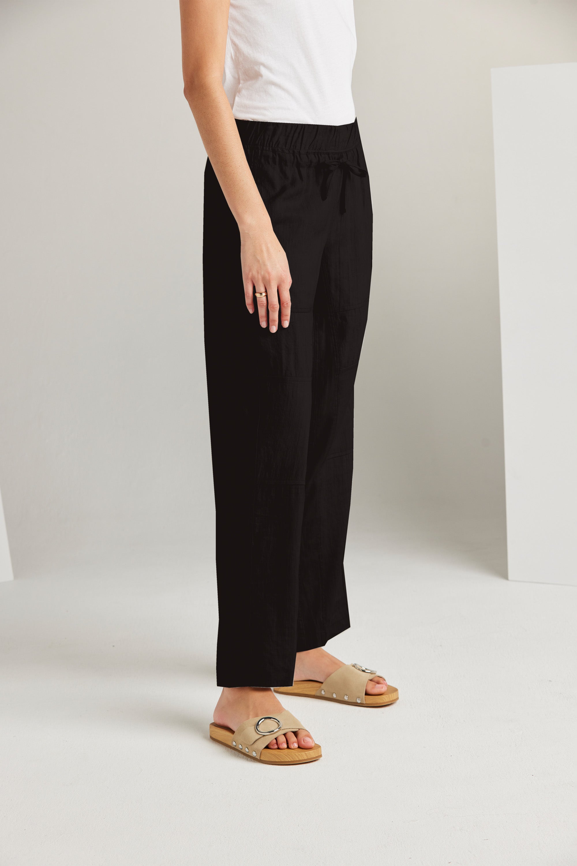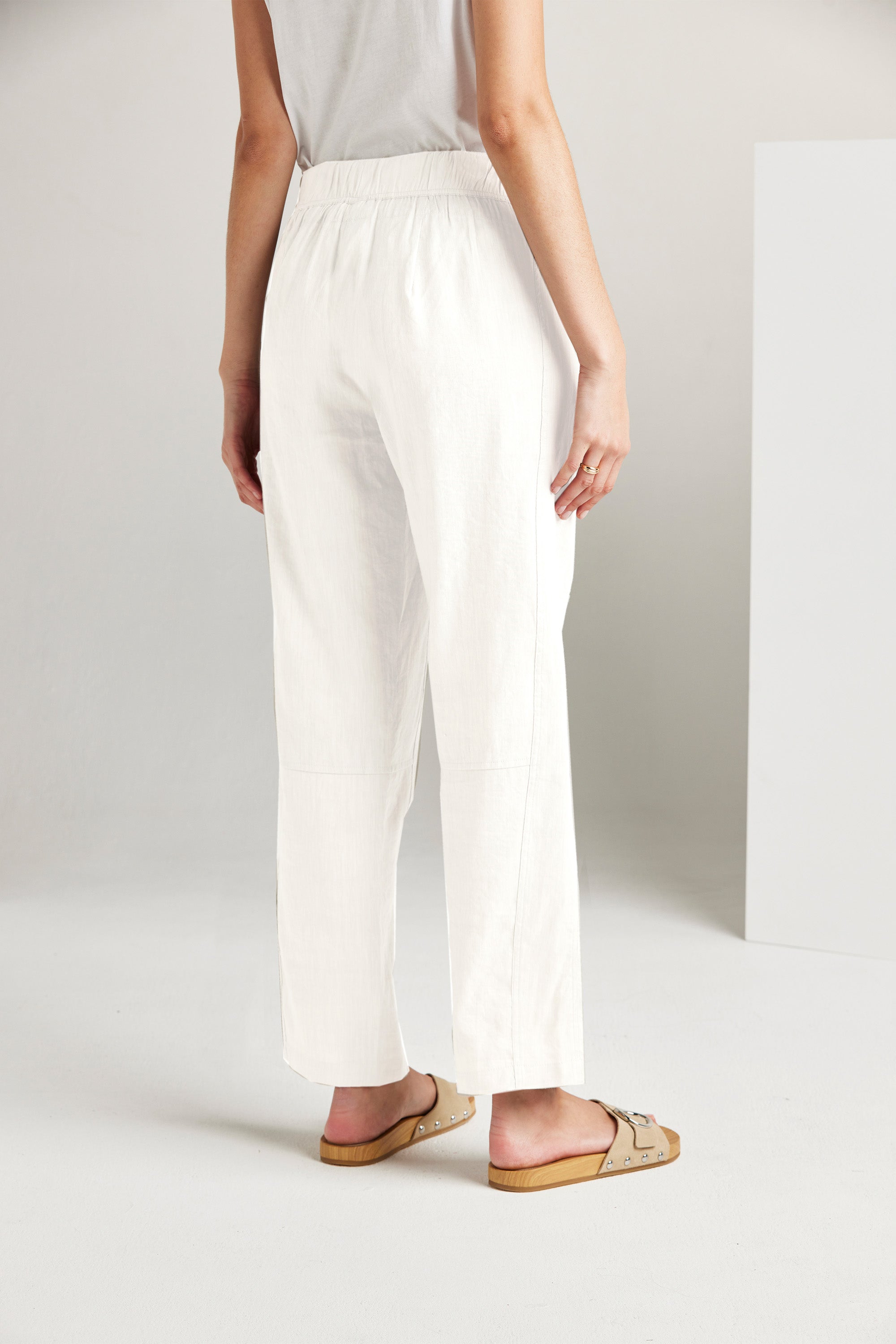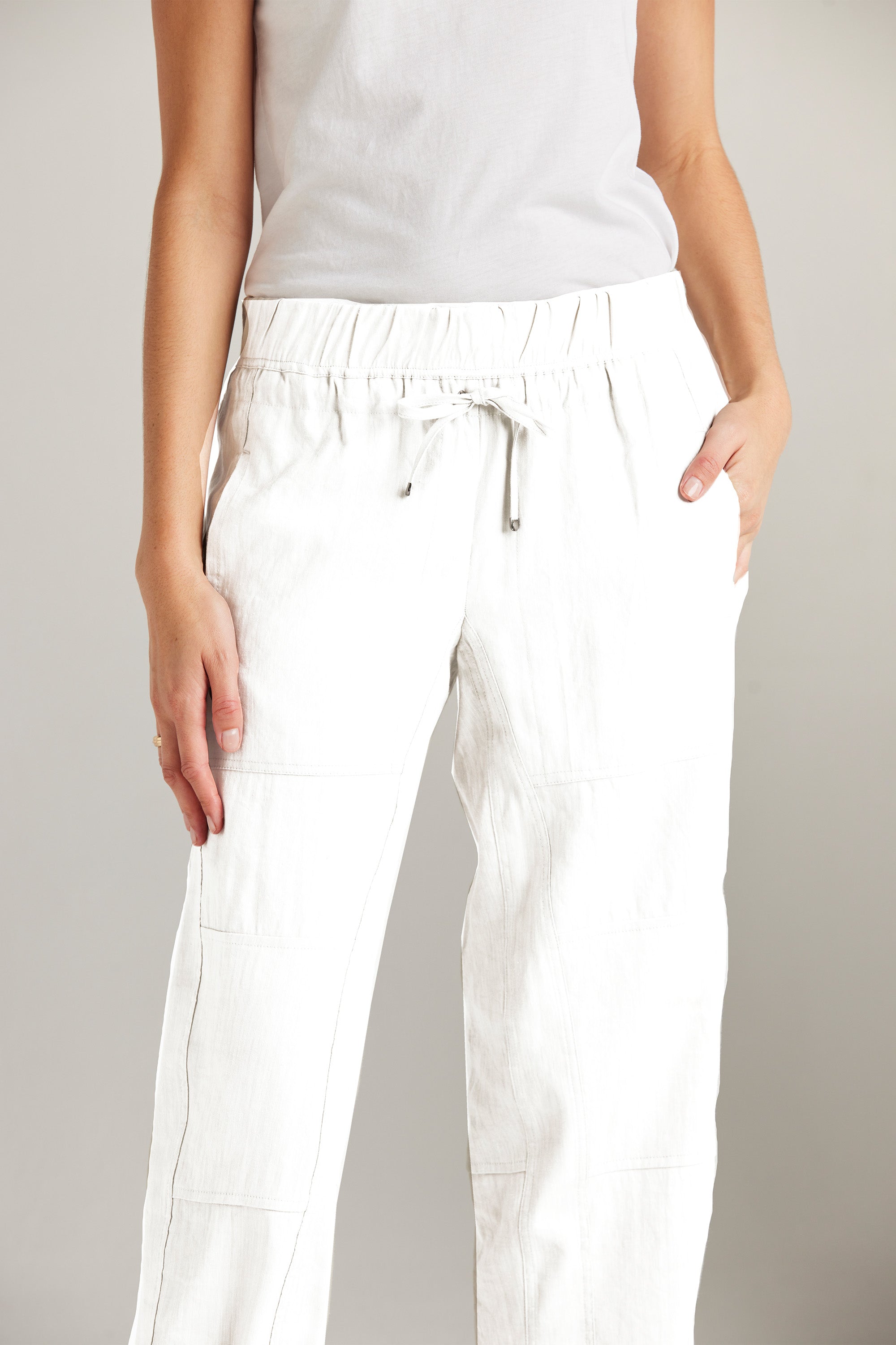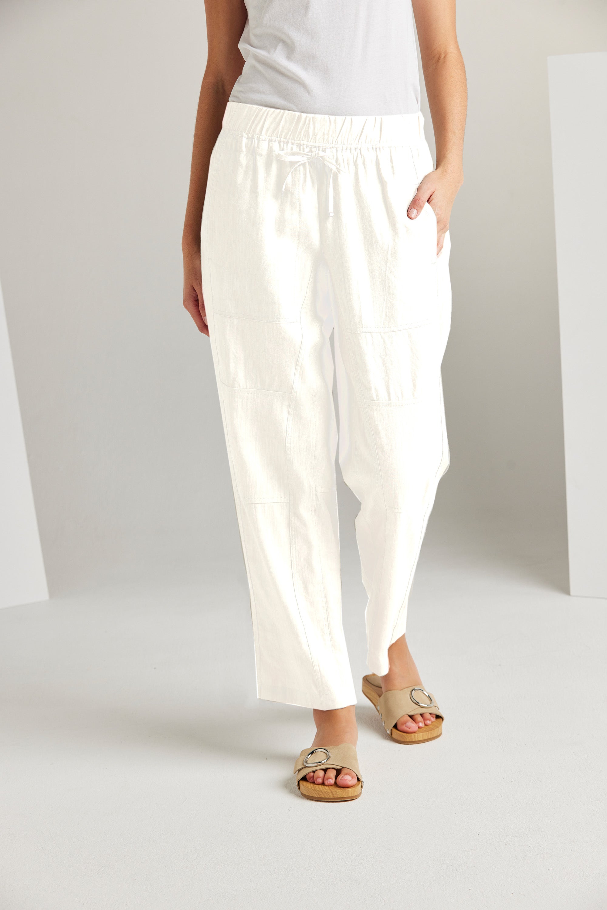 The Bridge Pant is a modern addition to our spring range. Relaxed and slightly cropped, these wide-leg pants feature an elasticated waistband and adjustable drawstring tie. The unique panelling design combined with the soft linen fabric adds to the versatility of this style. Pair it with one of our essential tees and accessories to achieve an effortlessly chic look.