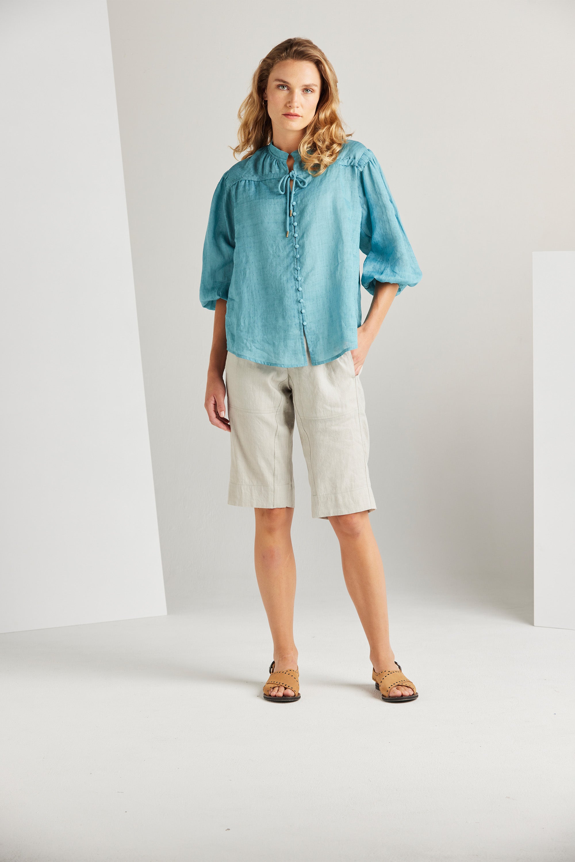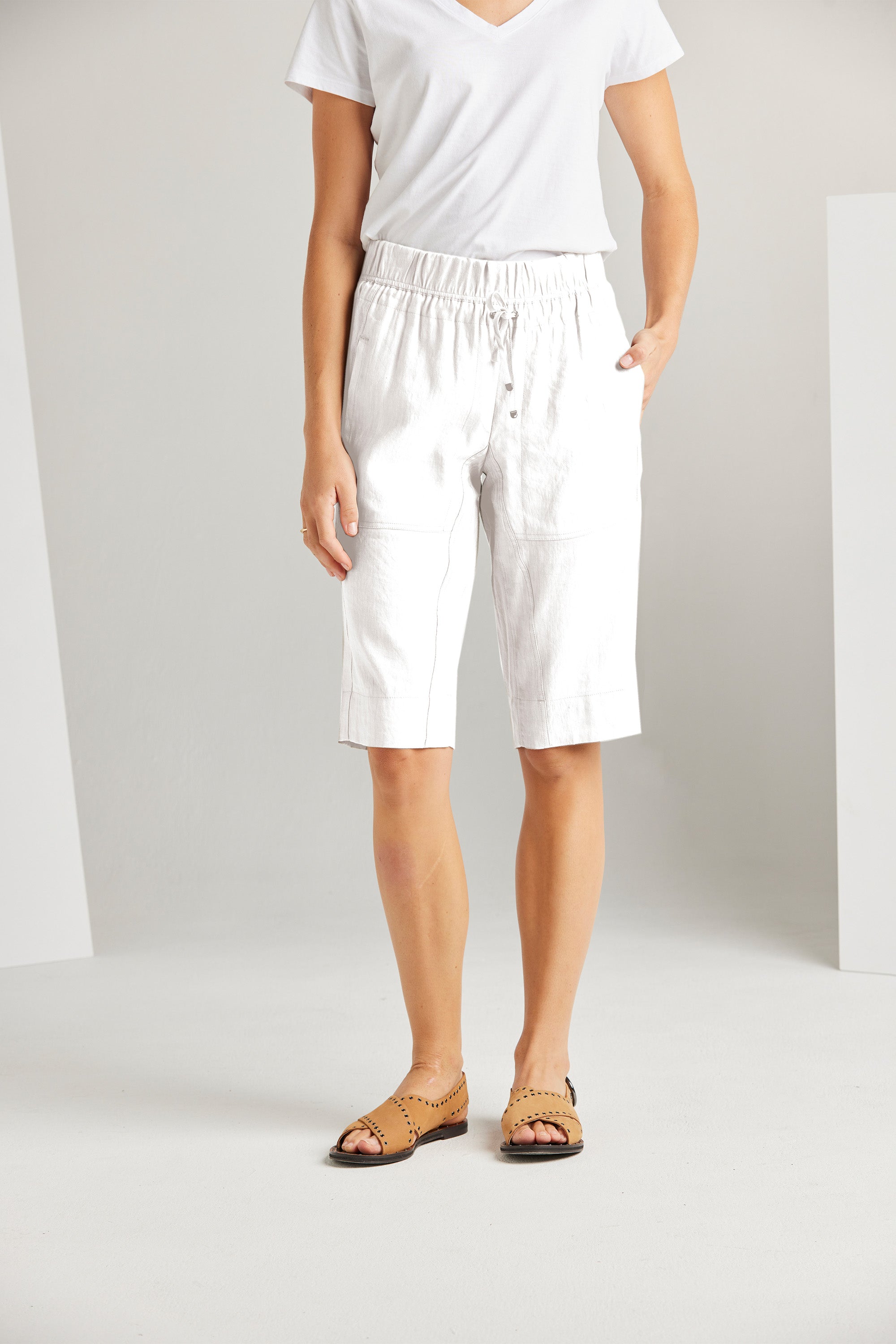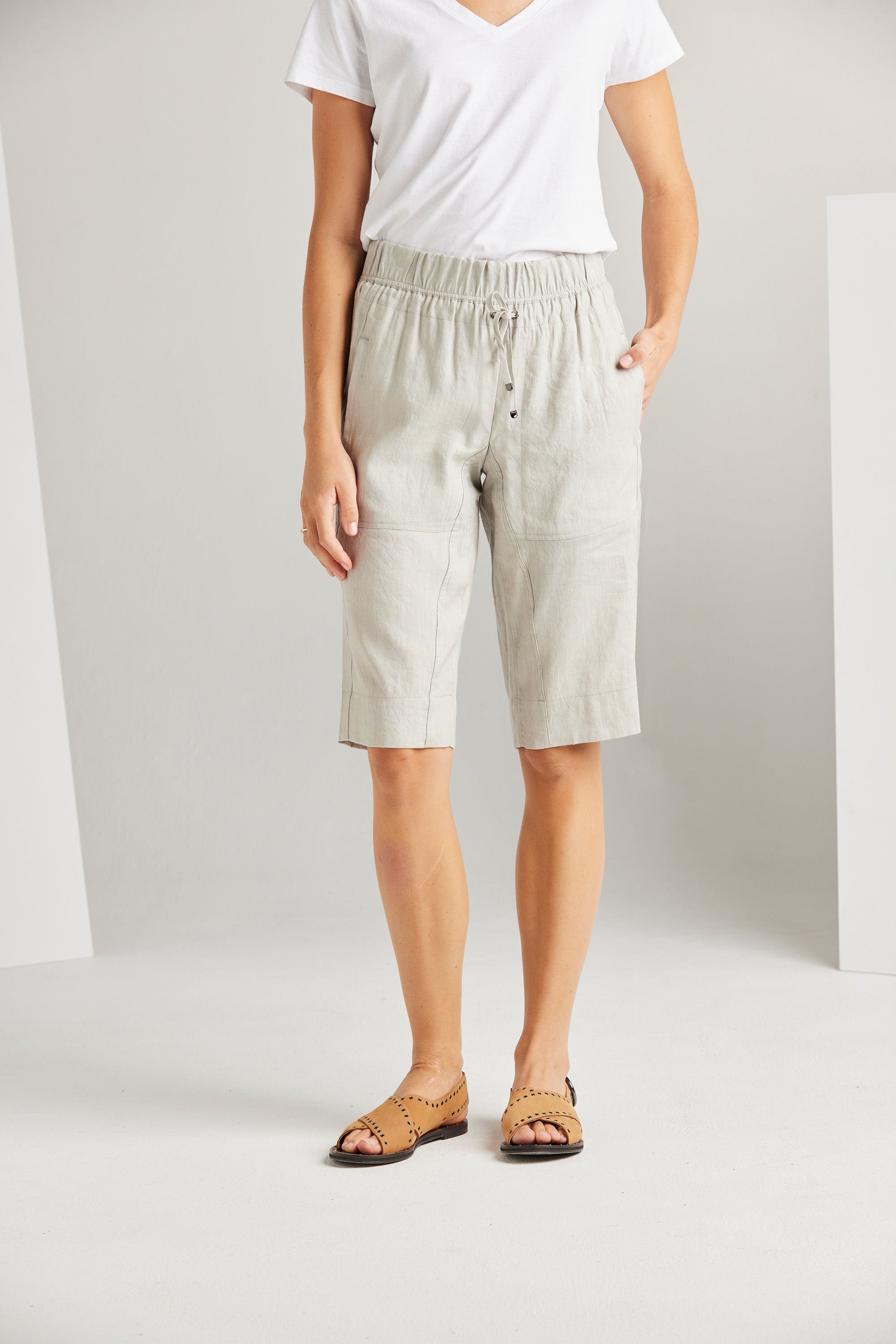 The Bridge Short is a modern addition to our spring range. These relaxed wide-leg shorts feature an elasticated waistband and adjustable drawstring tie. The unique panelling design combined with the soft linen fabric adds to the versatility of this style. Pair it with one of our essential tees and accessories to achieve an effortlessly chic look.