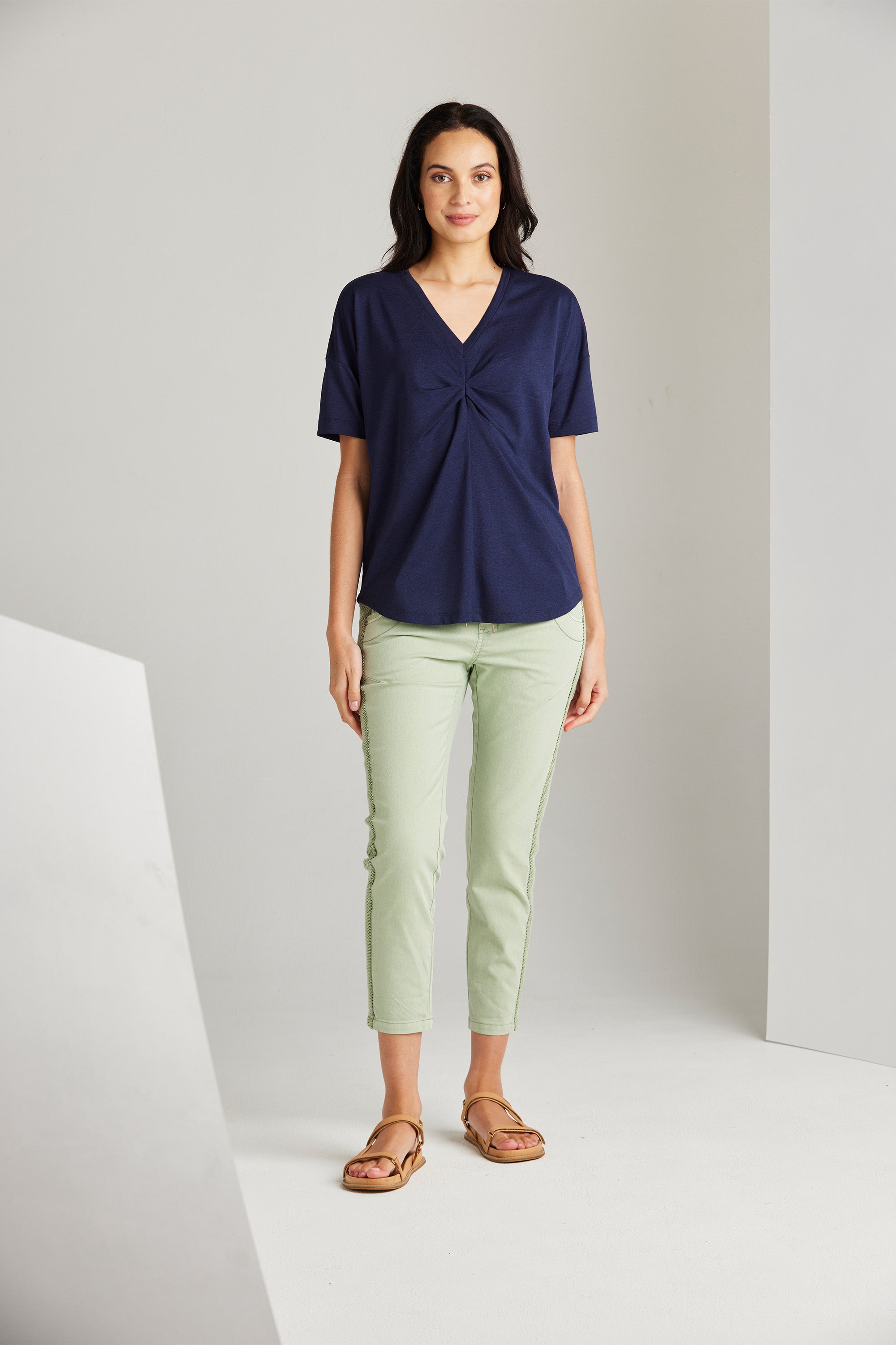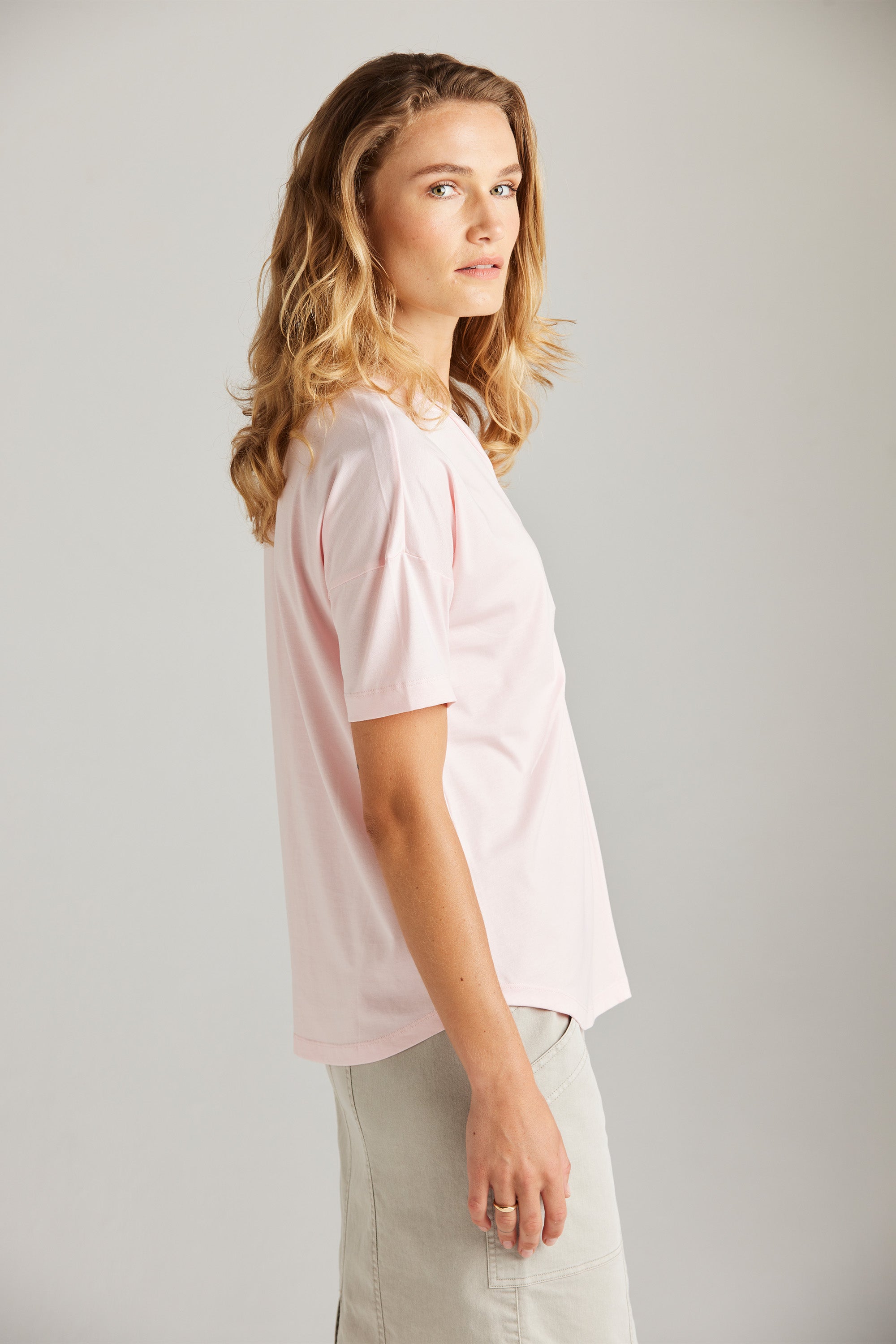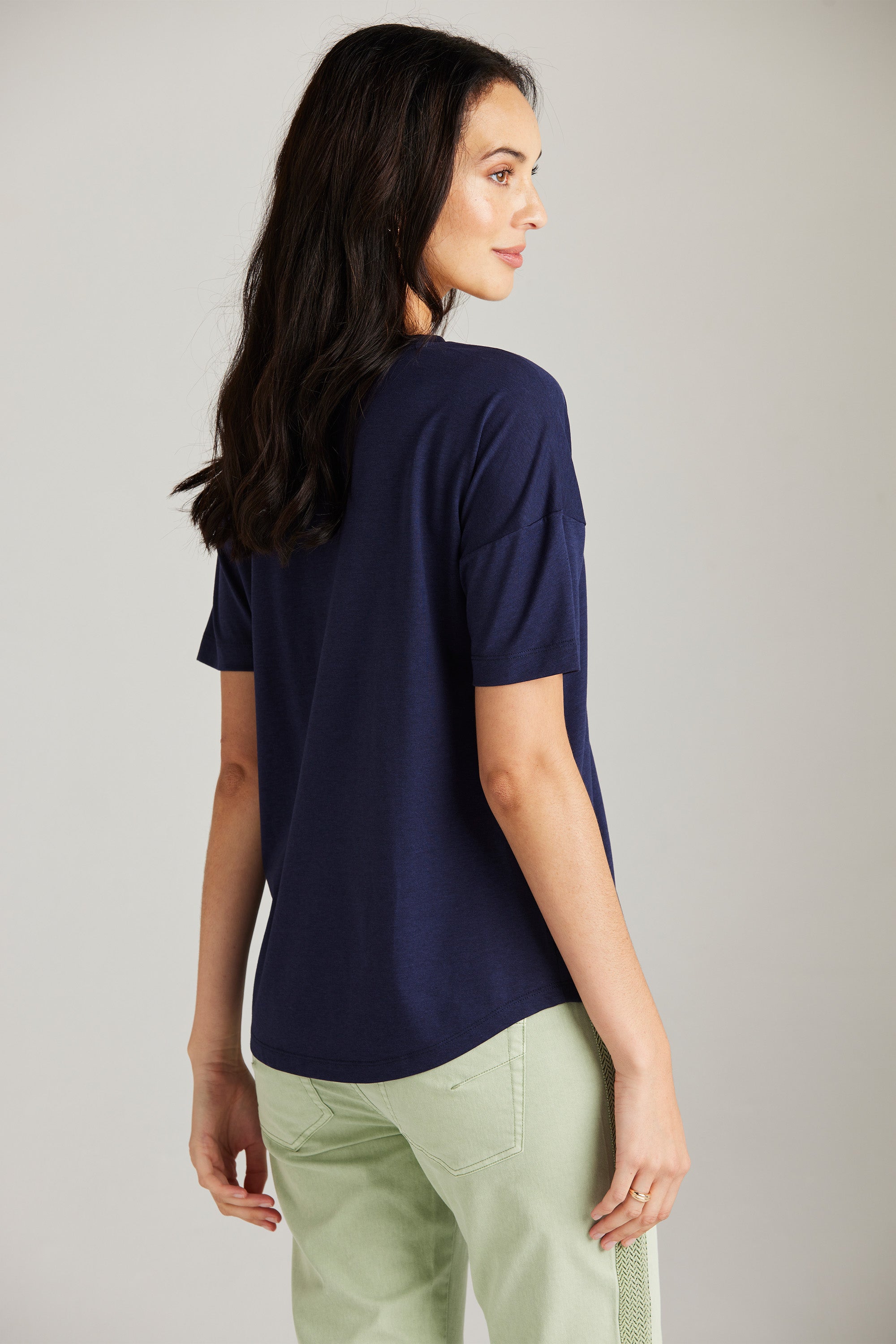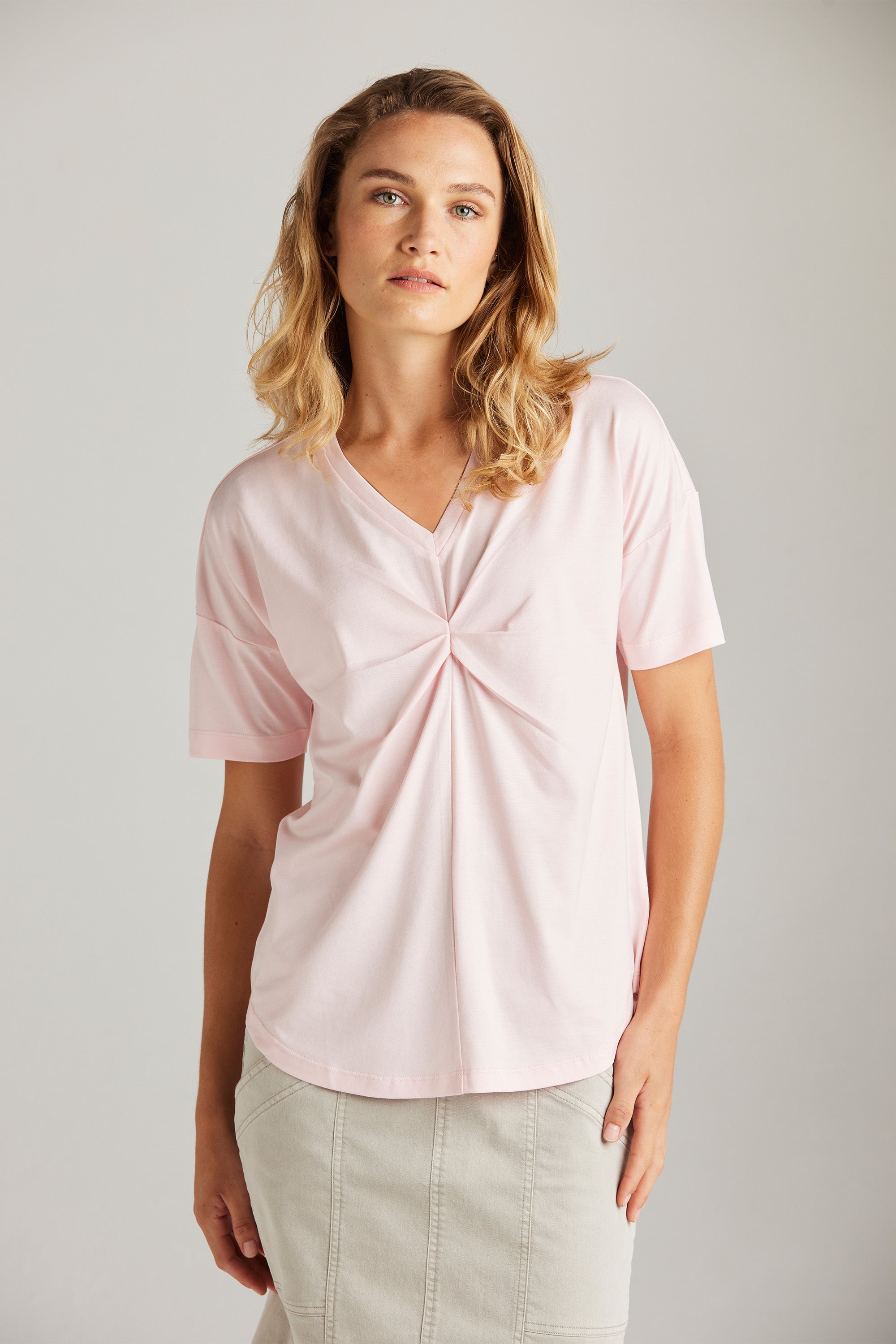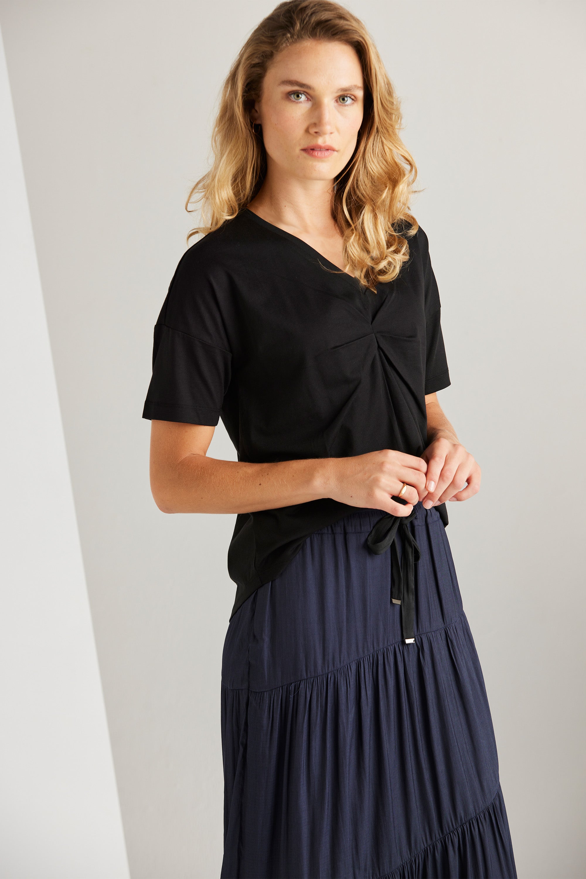 Featuring a contoured hemline and short sleeves, this relaxed-fit tee is elevated by a delicate pleat at the centre front, which adds a touch of femininity to the garment. Perfectly paired with jeans, it's the ideal choice for a casual weekend look.