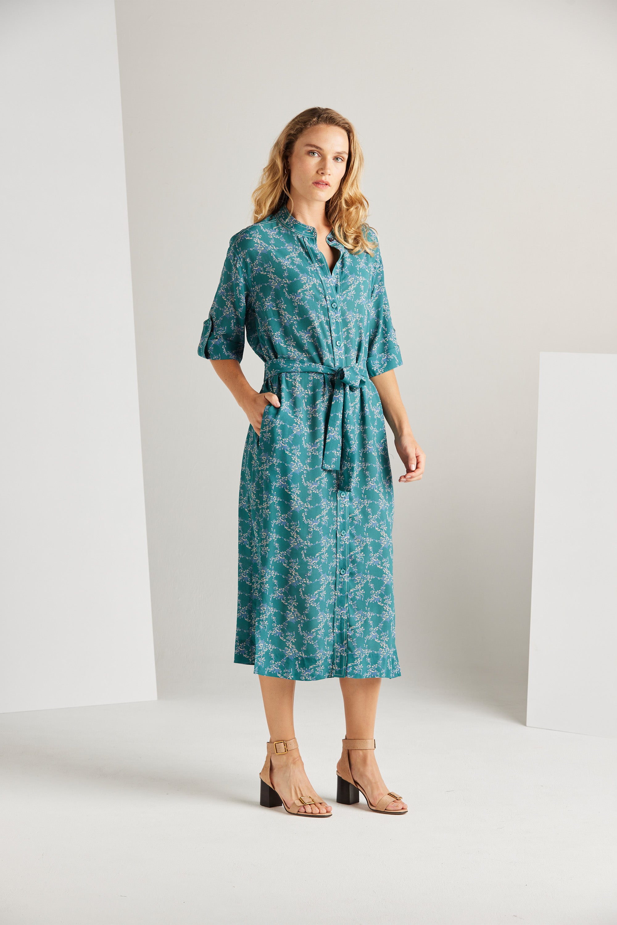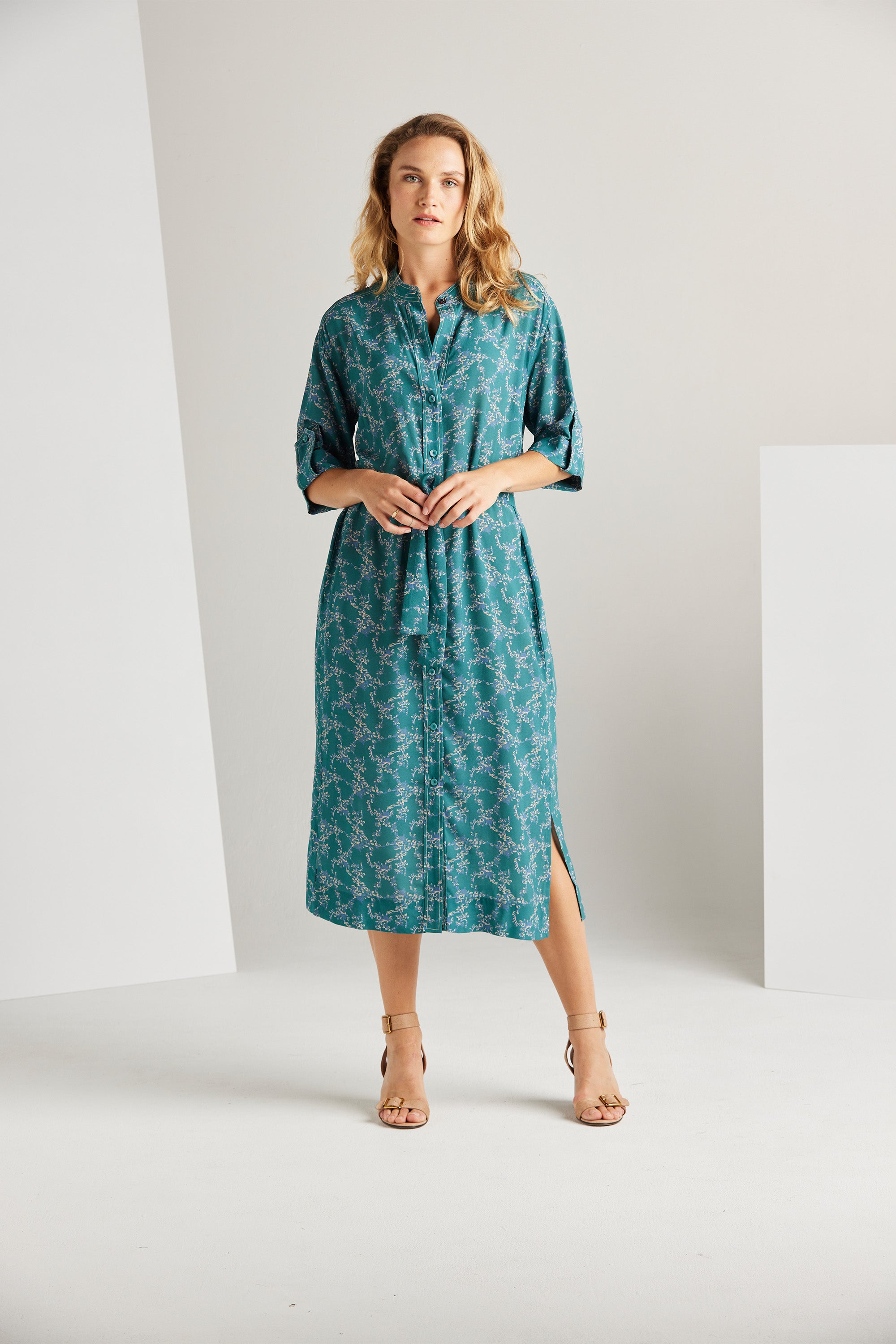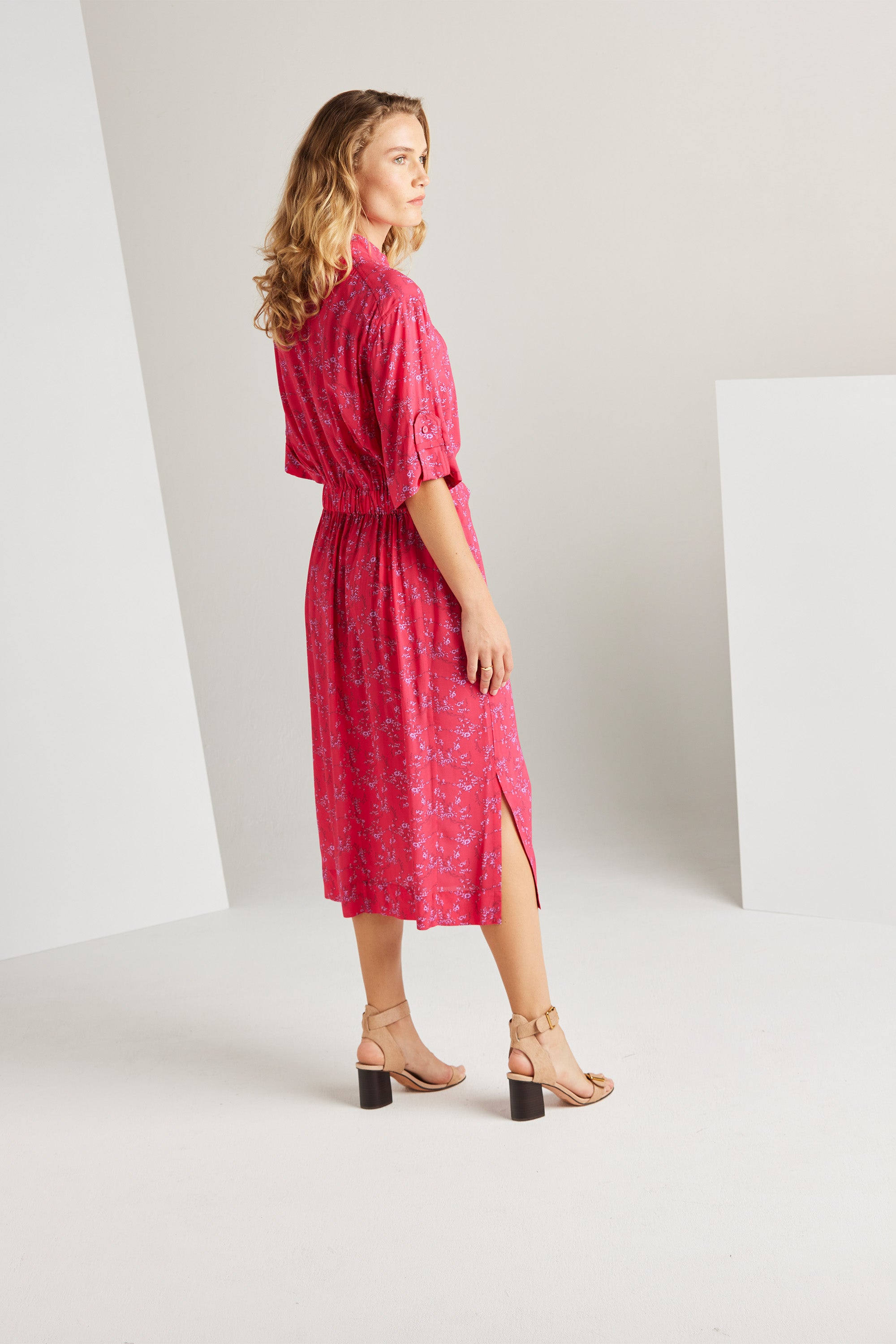 The Monique Dress combines romantic aesthetics with a modern edge. Side splits and a button-down placket with pretty self-covered buttons provide a contemporary element, while the soft viscose rayon fabric creates a beautiful drape. Style yours with heels or flats and embrace the new season.