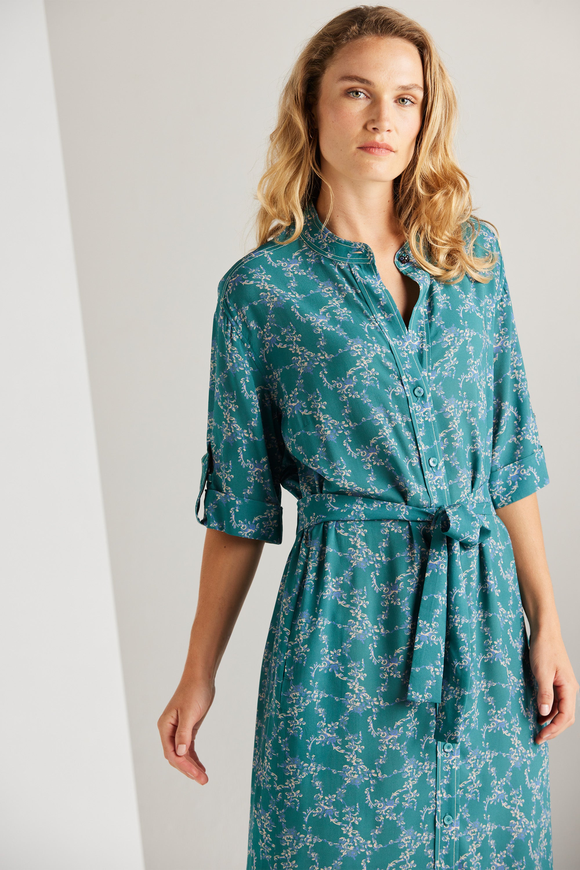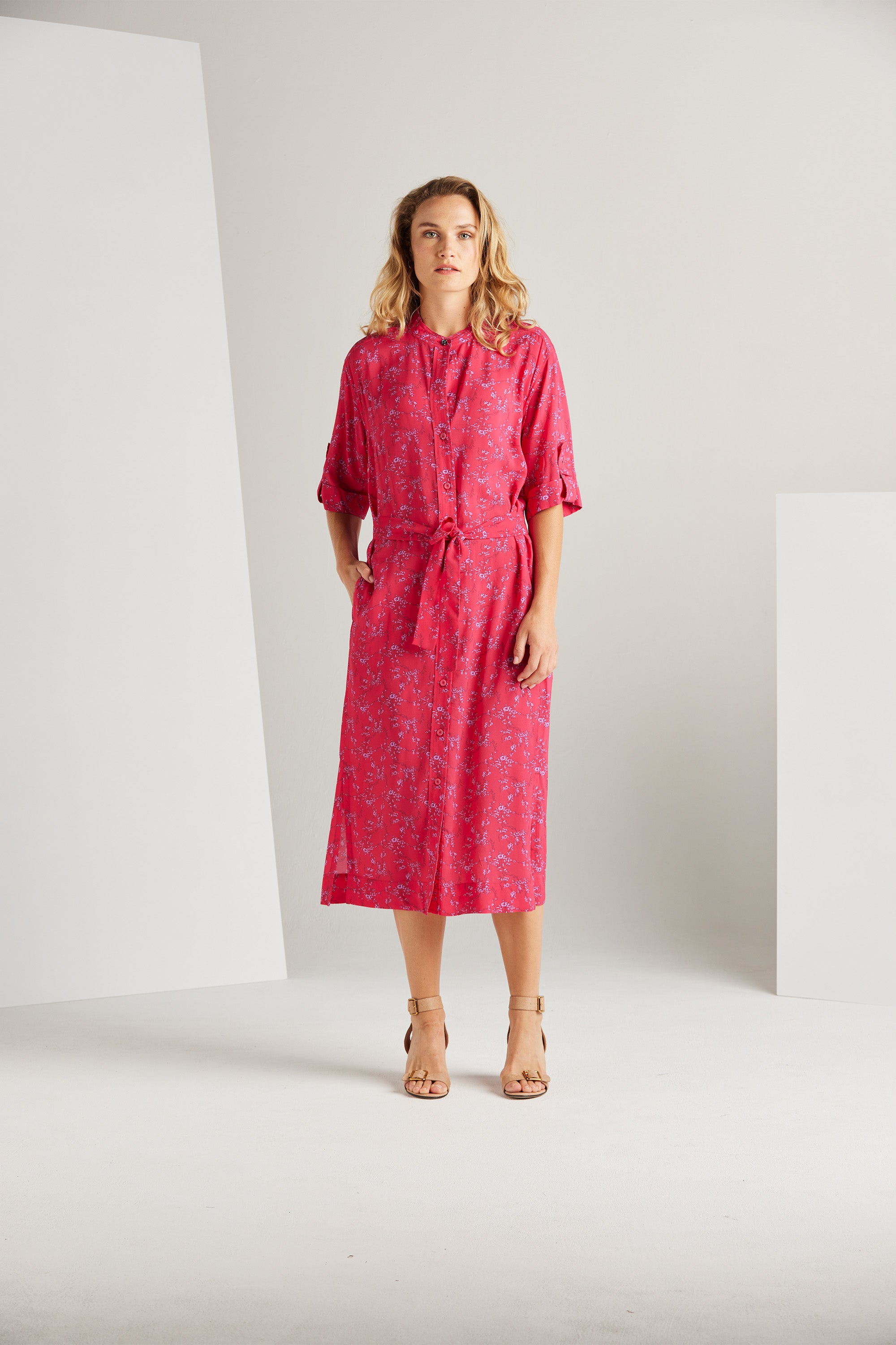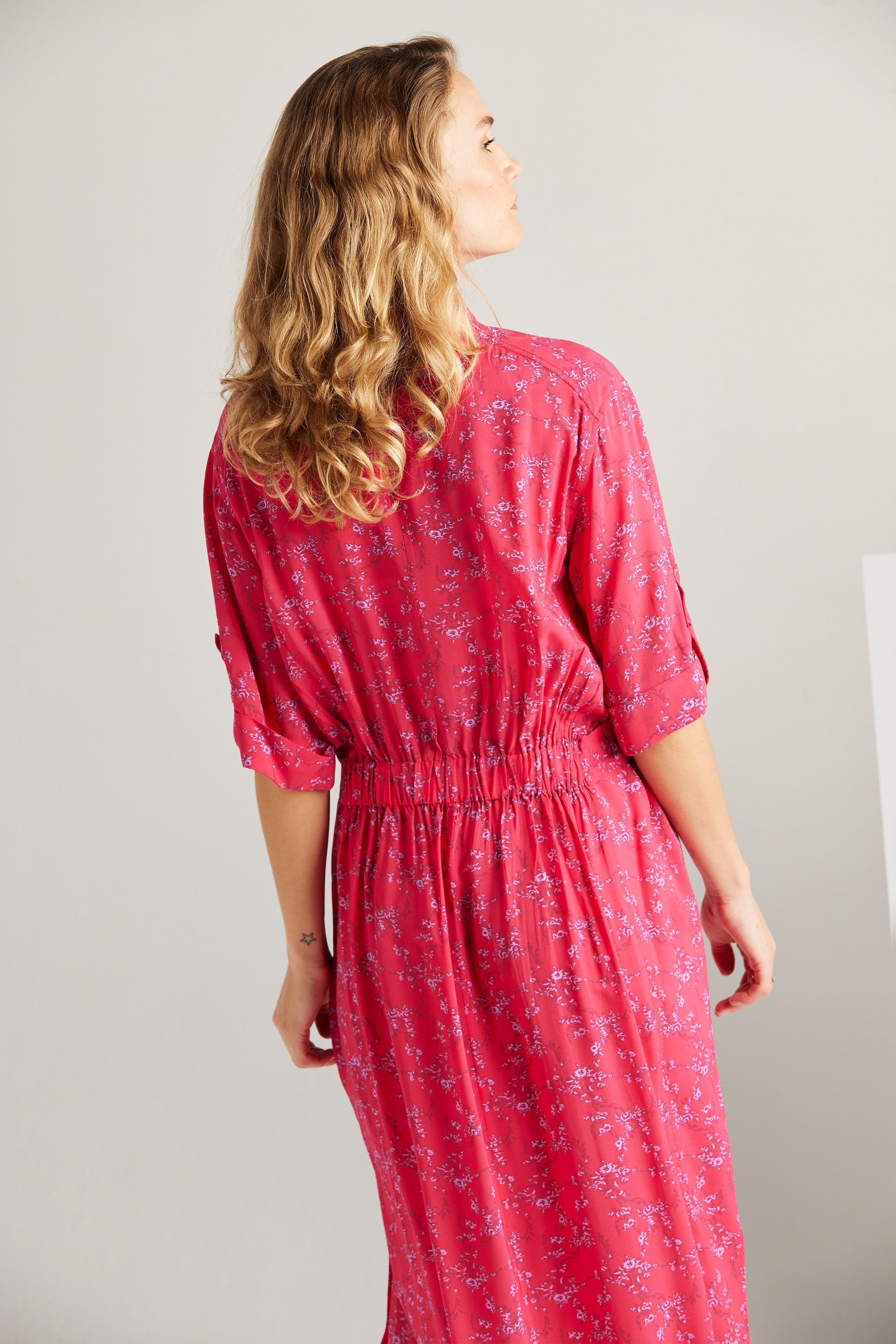 The Monique Dress combines romantic aesthetics with a modern edge. Side splits and a button-down placket with pretty self-covered buttons provide a contemporary element, while the soft viscose rayon fabric creates a beautiful drape. Style yours with heels or flats and embrace the new season.
