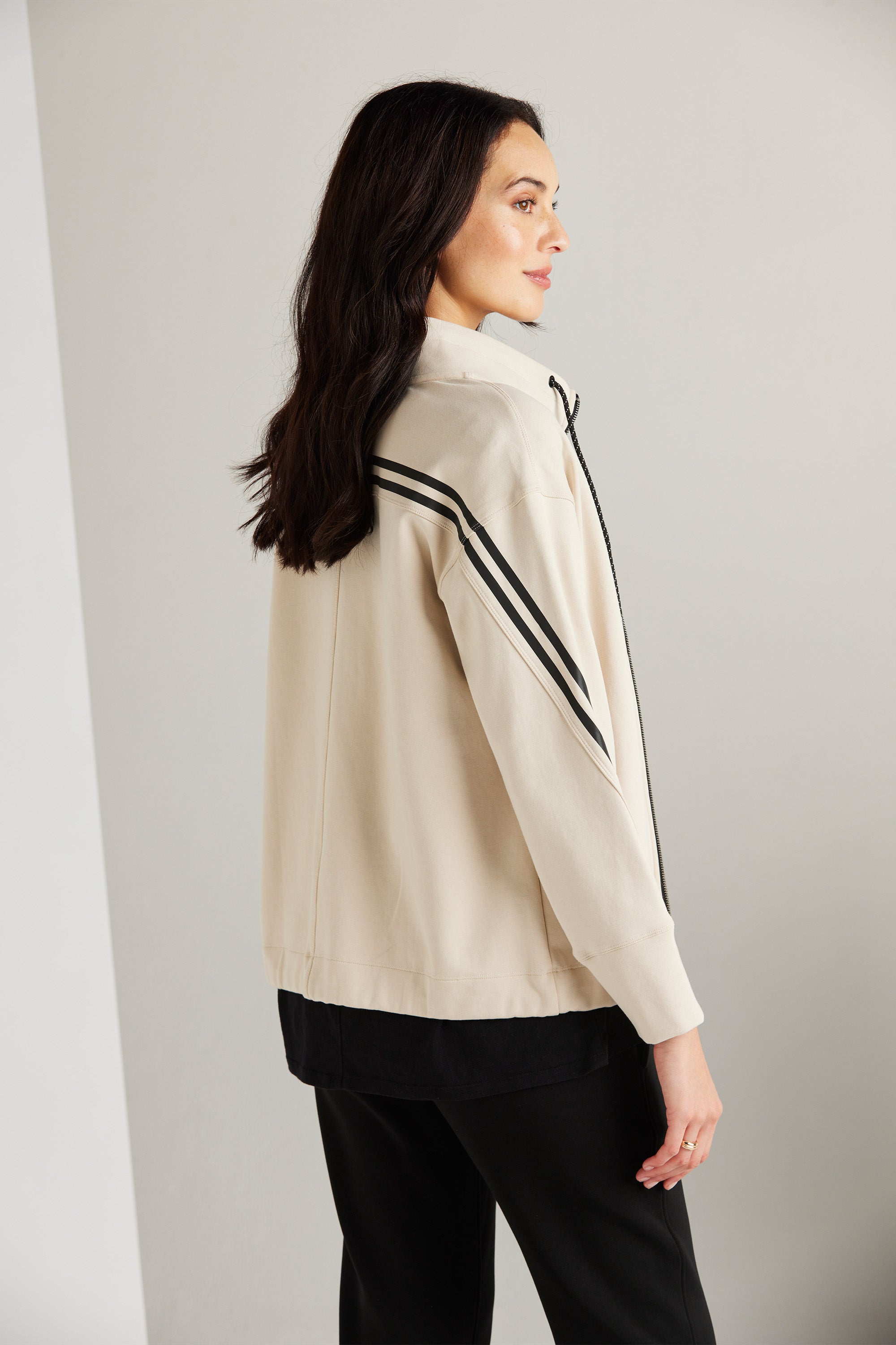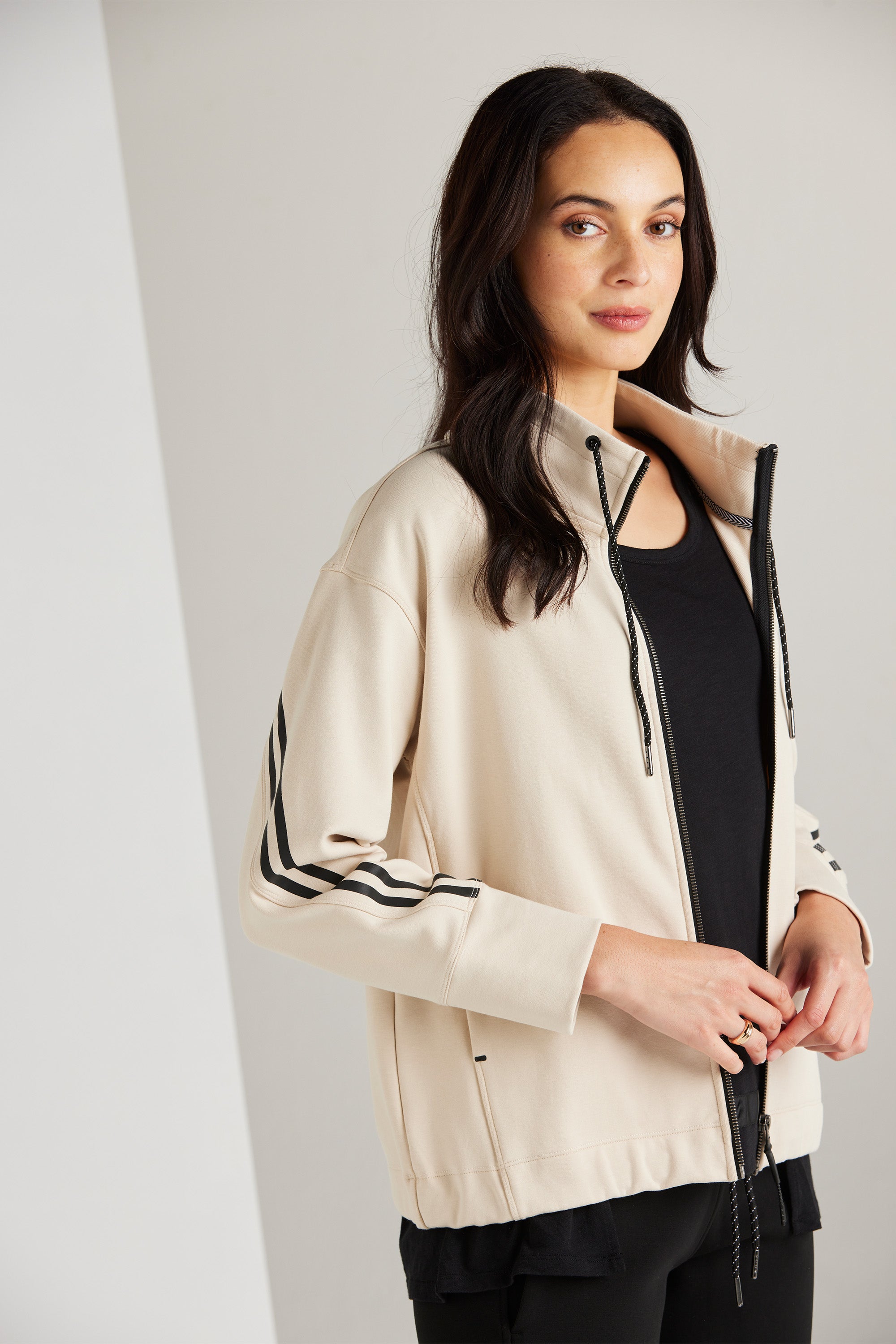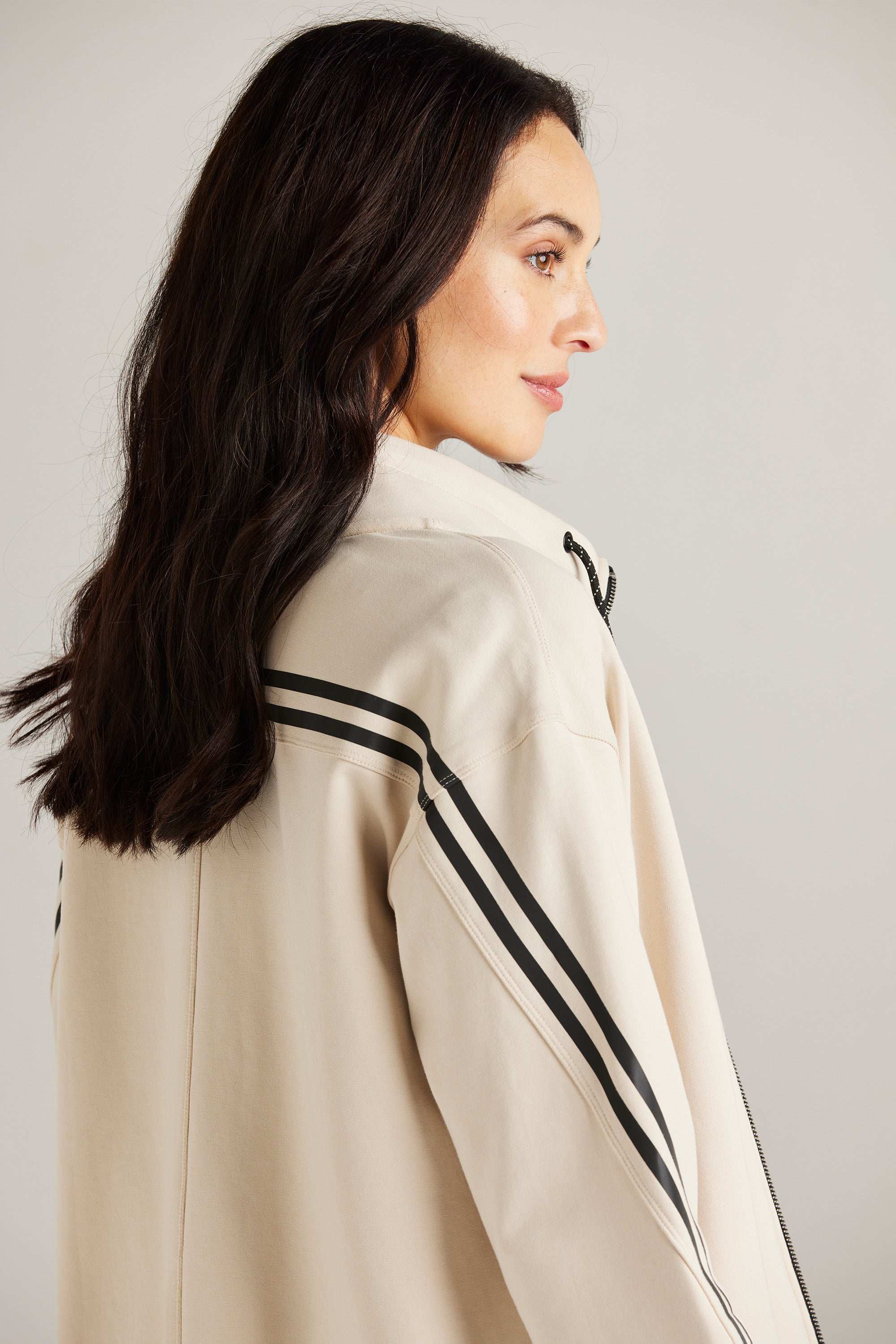 Introducing the Rally Jacket – a contemporary and boxy jacket crafted from a soft blend of cotton. It features a sleek and sporty design with eye-catching details such as the novelty contrast heat-sealed tape, tonal topstitching, and a high collar stand with drawcord. This spring, embrace the coveted sports luxe trend with the Rally Jacket, which can be perfectly paired with the Rally Top for an effortlessly chic ensemble.