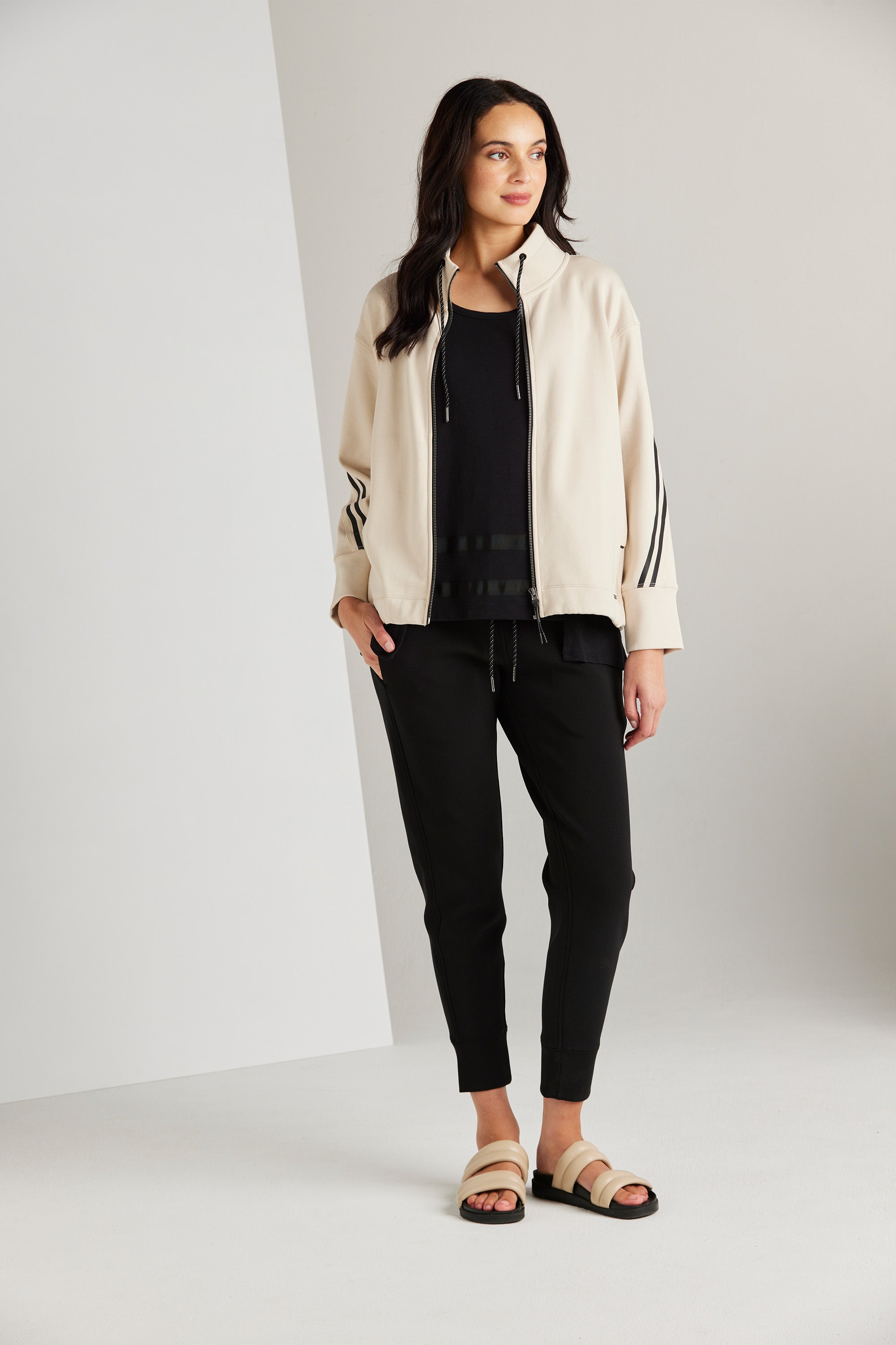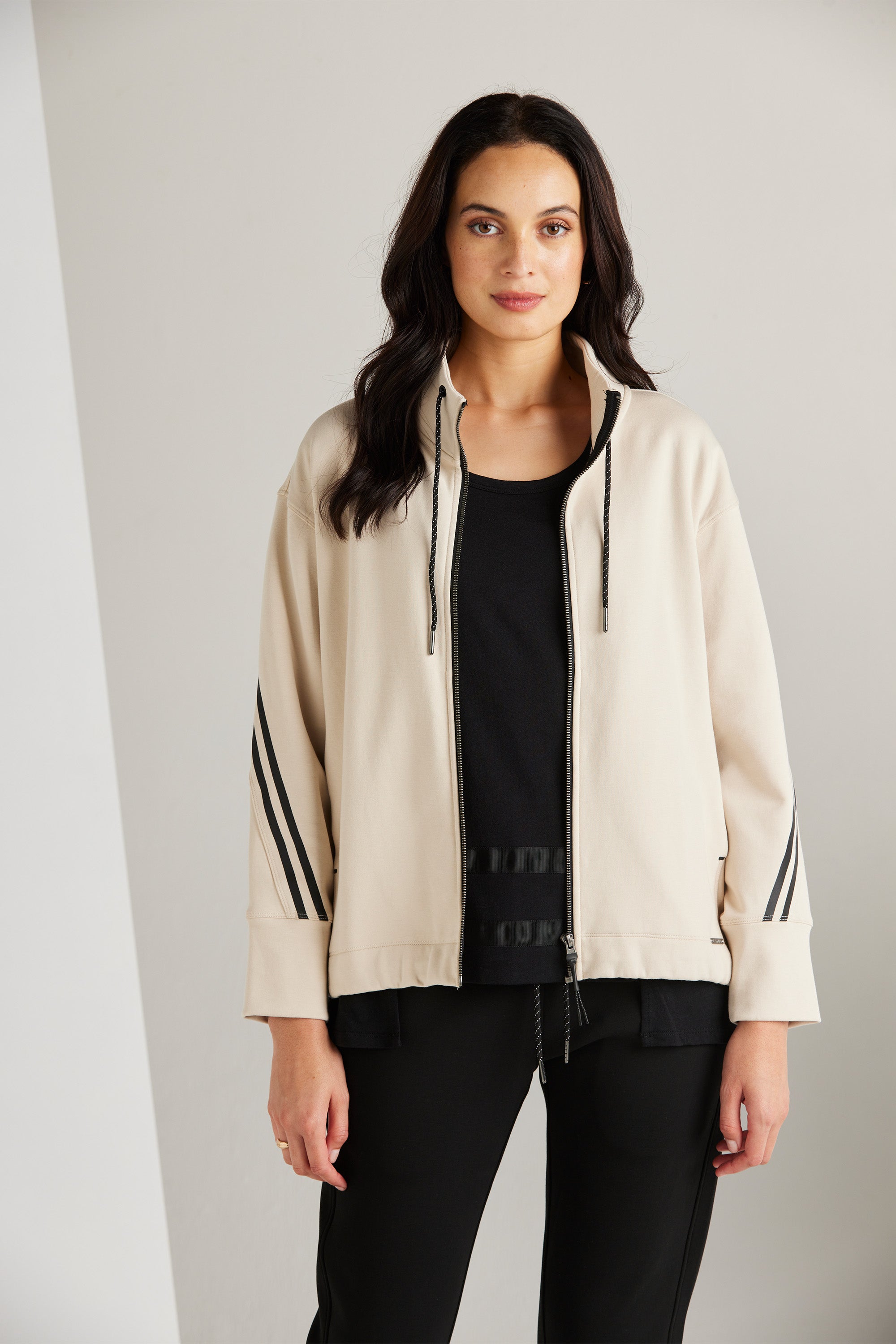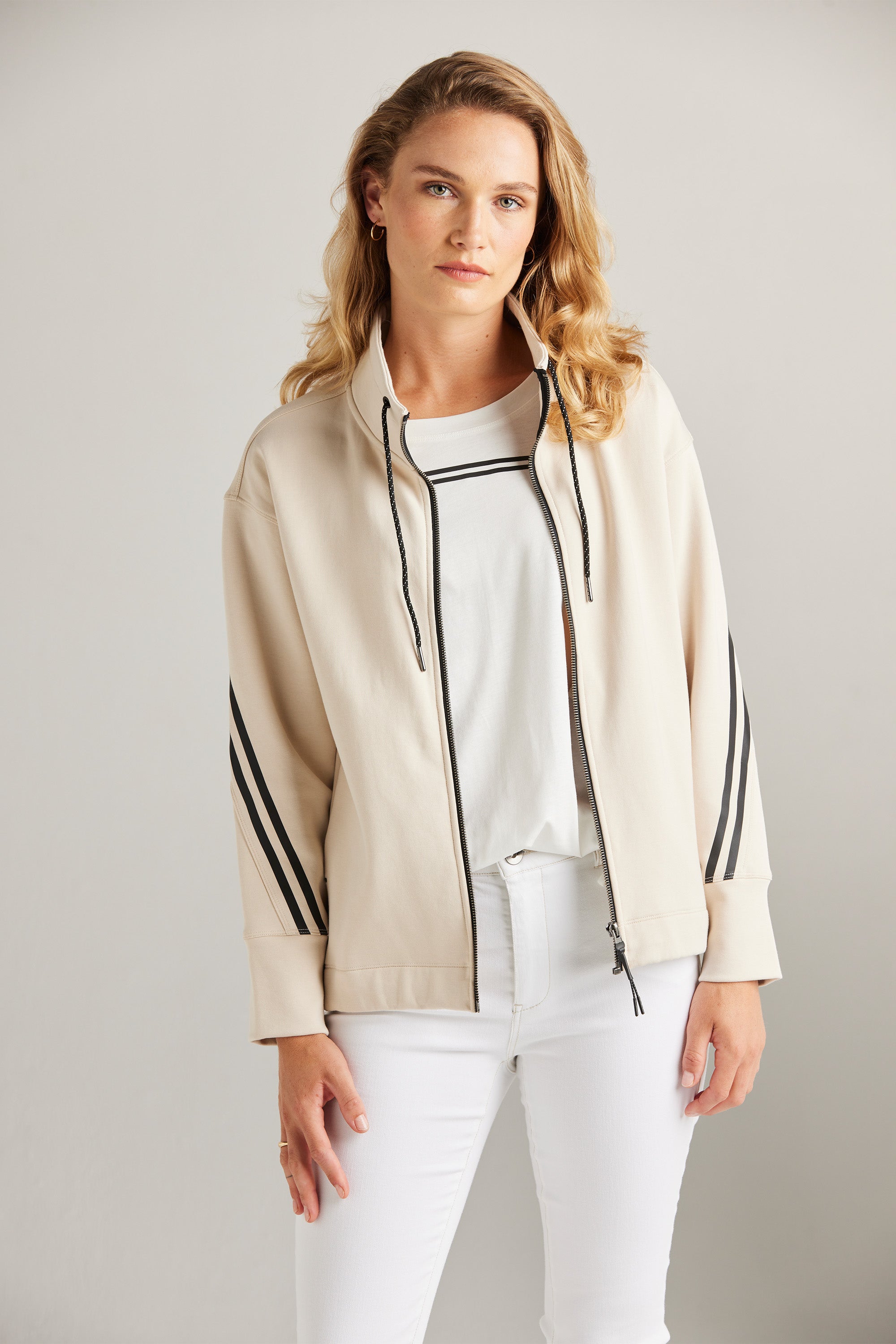 Introducing the Rally Jacket – a contemporary and boxy jacket crafted from a soft blend of cotton. It features a sleek and sporty design with eye-catching details such as the novelty contrast heat-sealed tape, tonal topstitching, and a high collar stand with drawcord. This spring, embrace the coveted sports luxe trend with the Rally Jacket, which can be perfectly paired with the Rally Top for an effortlessly chic ensemble.