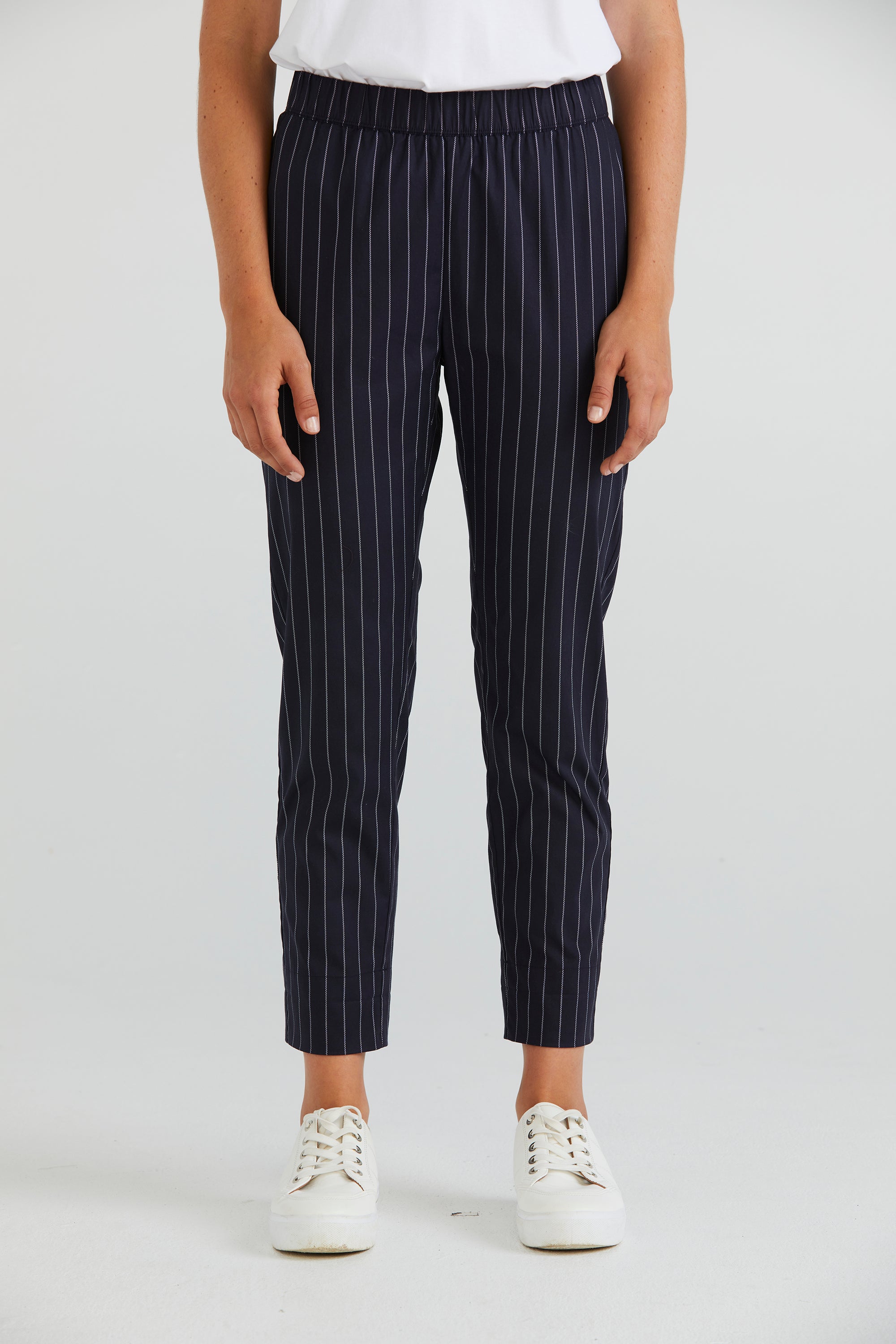Experience effortless style with the LTL Weave Pant, our beloved cotton-rich stretch pant now in a chic pinstripe print design. Featuring an elasticated waist, back yoke, and tapered leg line, it offers both comfort and sophistication. This pant is perfect for everyday wear, combining versatility and style effortlessly.