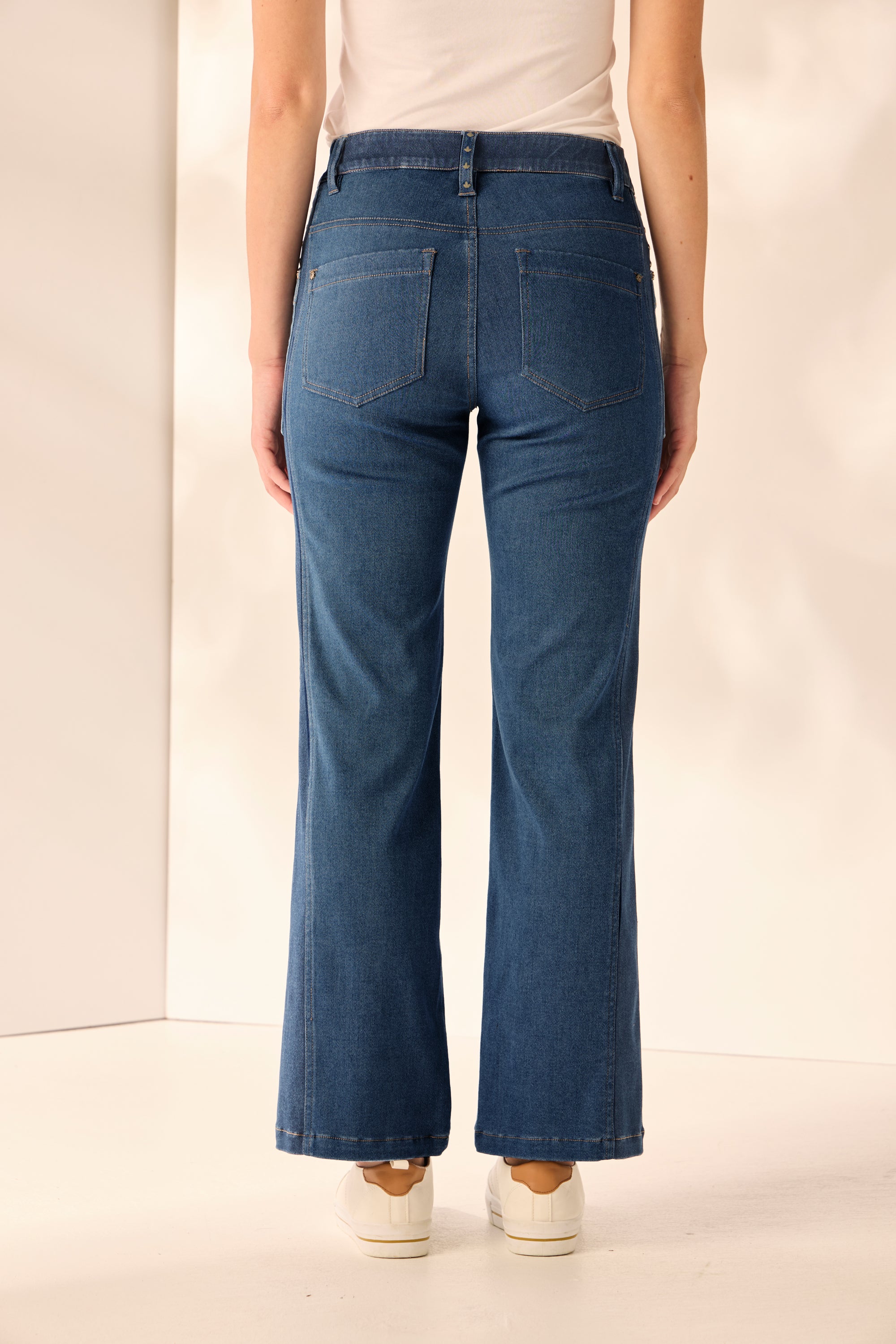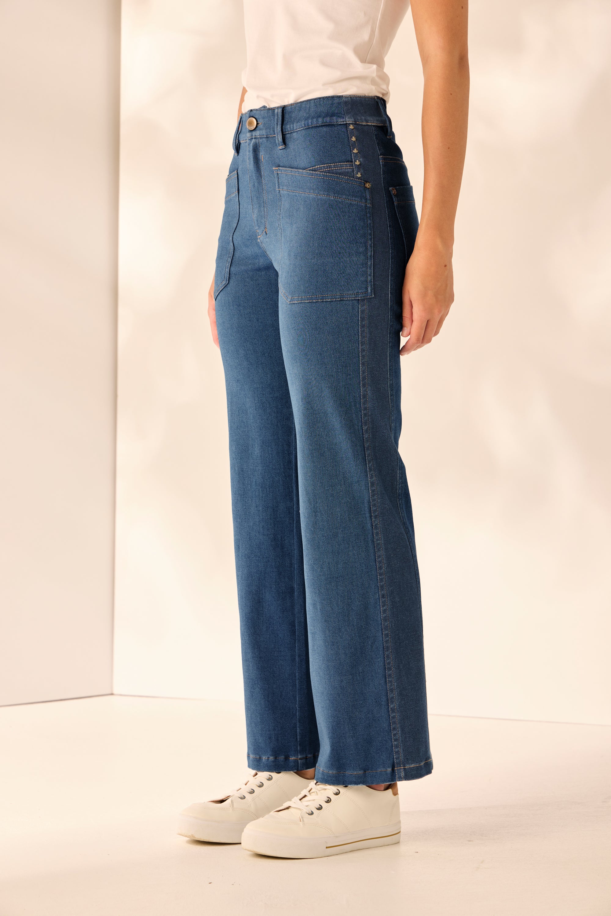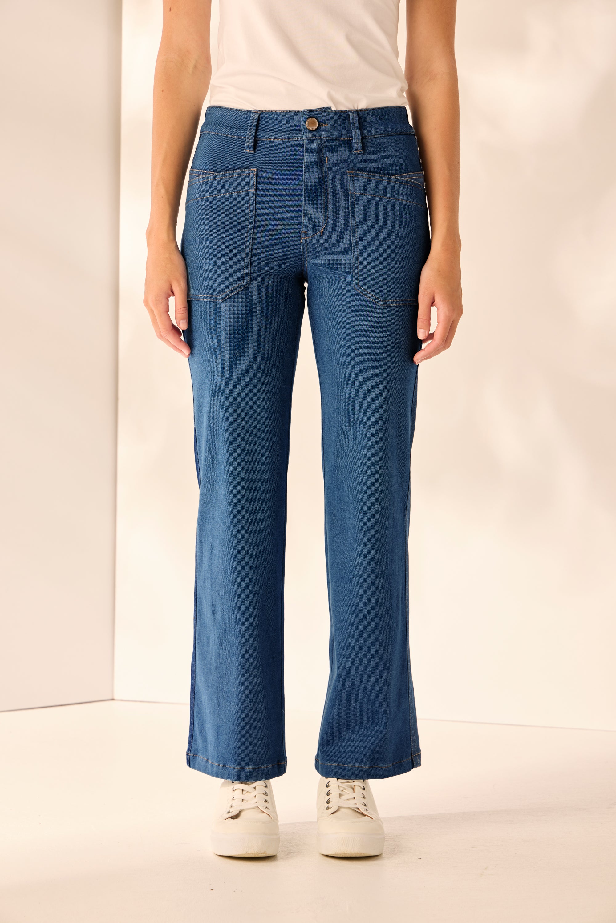 The Abby Jean offers a flattering straight-leg silhouette, crafted from soft stretch denim for the perfect blend of comfort and style. Thoughtful details like embroidery along the pocket side seams and centre back belt loop, along with distinctive patch pockets on both the front and back, bring a unique and modern touch to this everyday essential.