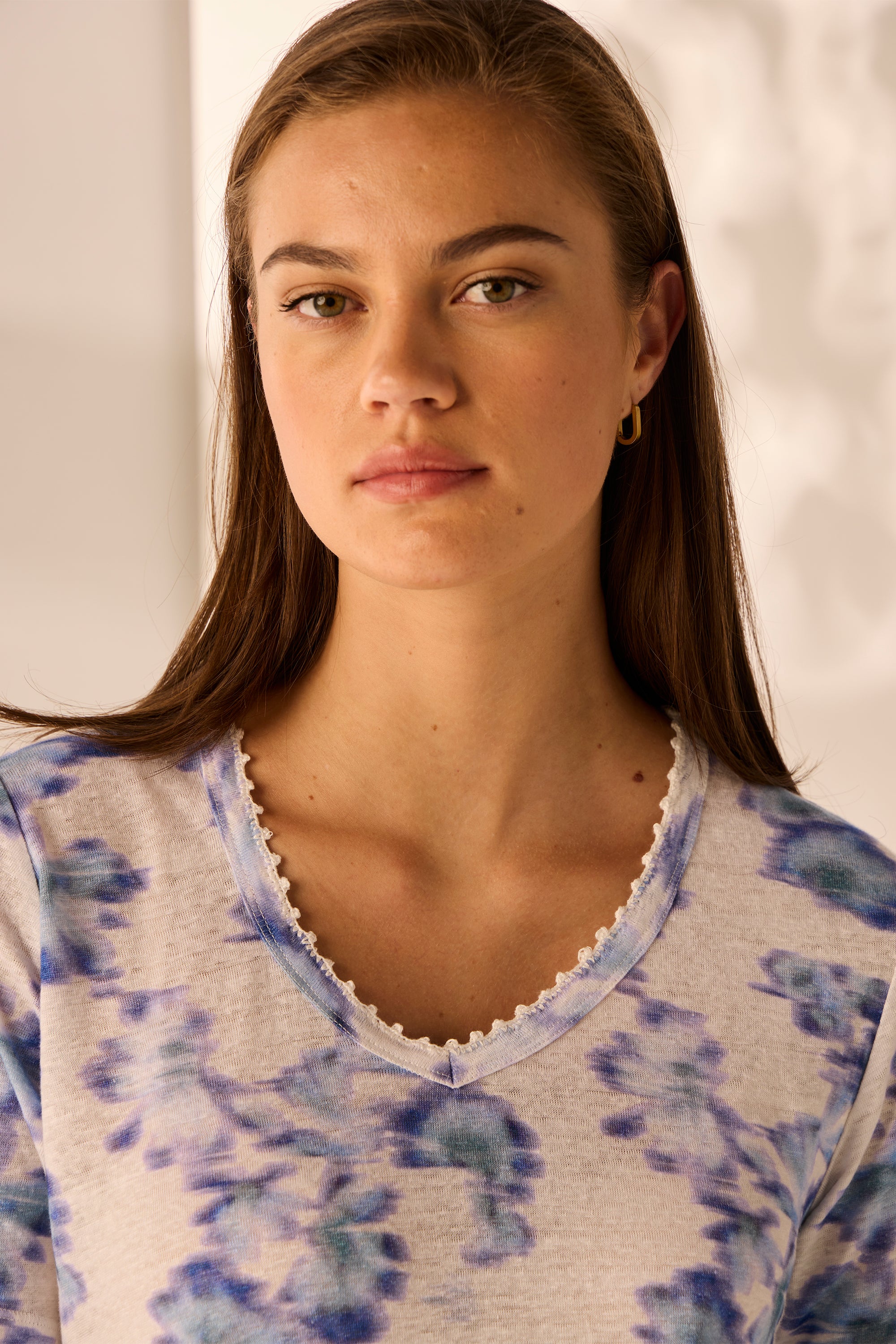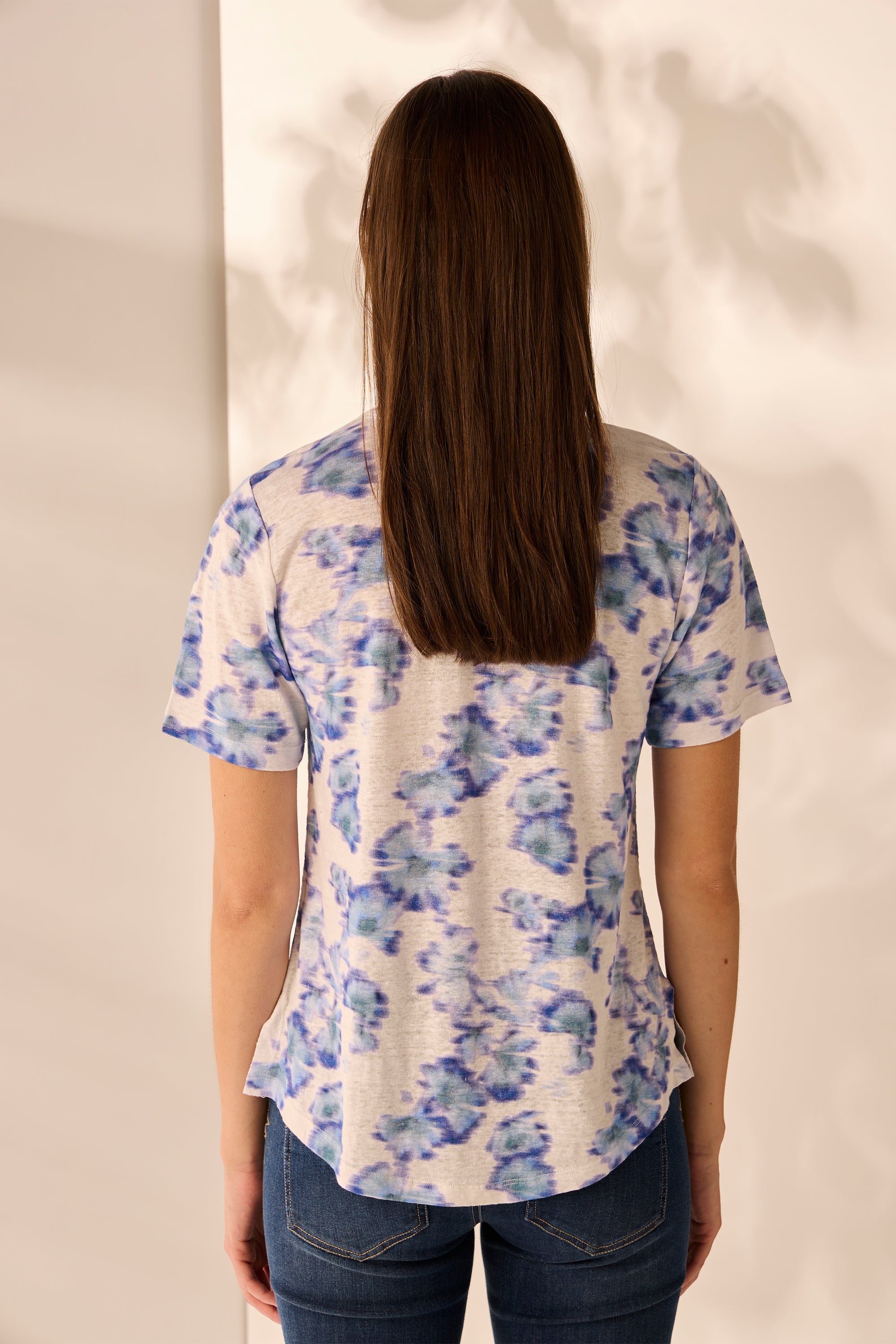 This Lotus print top is made from a luxurious blend of linen and cotton jersey, making it an ideal addition to your spring wardrobe. Its v-neckline finished with embroidery detailing and side splits give it a playful, sporty vibe, perfect for elevating your look.