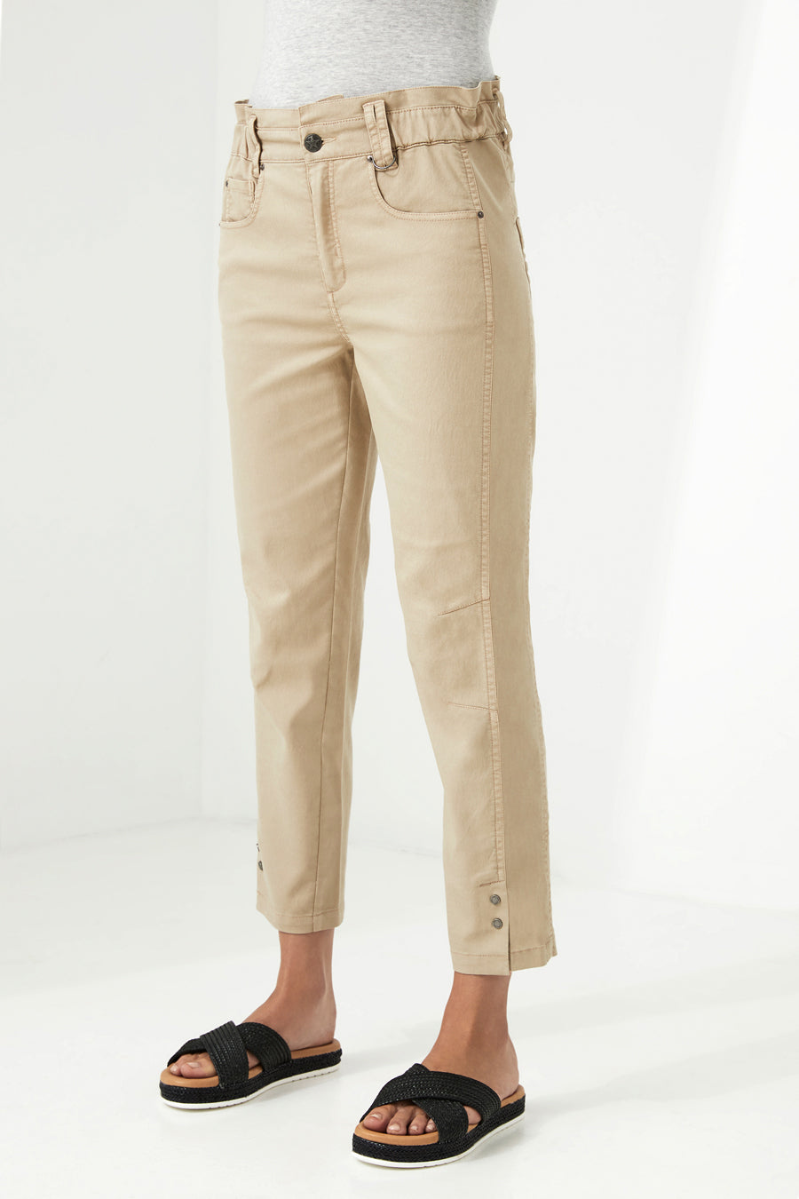Cruze into summer with comfort, easy fit 7/8 length, featuring soft stretch lightweight cotton blend, with our comfort stretch waistband and signature snaps at hem.