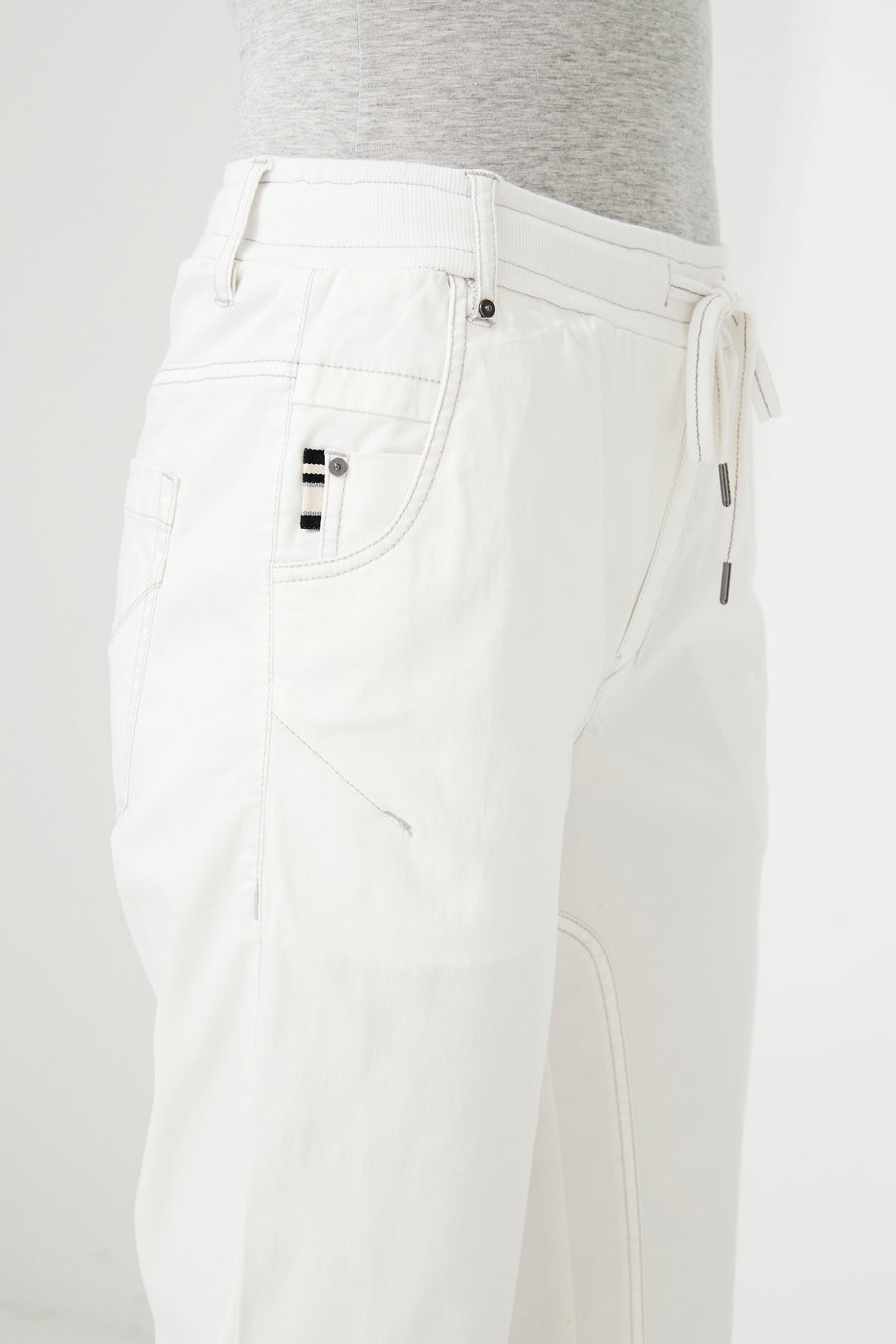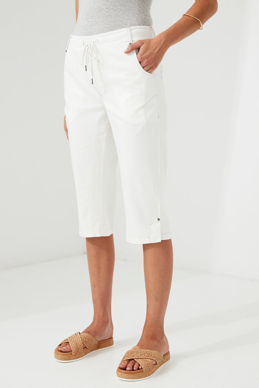 A cool casual knee length short, elastic rib waistband with drawcord, mock fly and front pockets. The soft handle and slightly distressed finish is achieved by special garment wash.