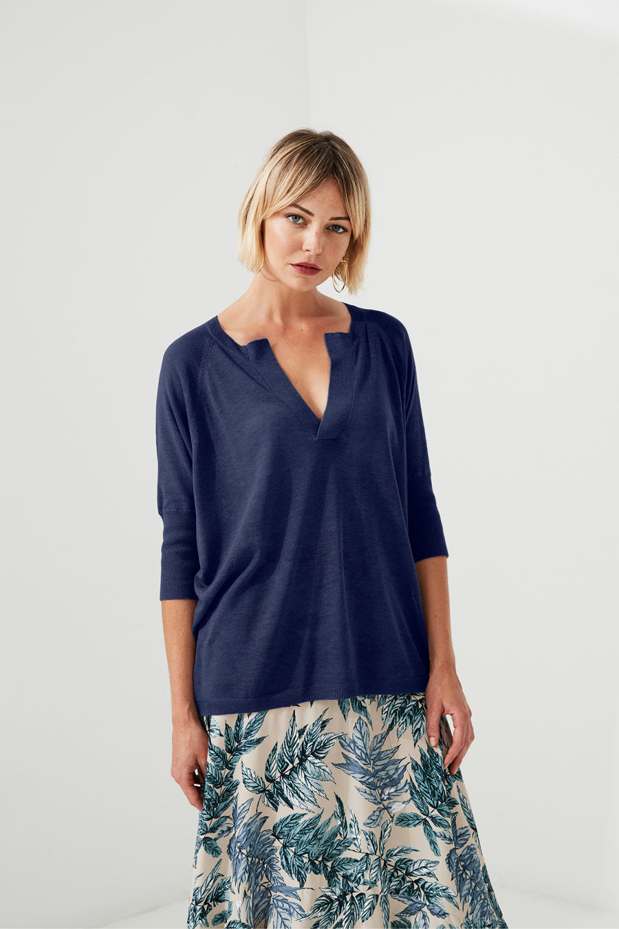 Relax and let go, in our Mia Sweater, featuring 3three colourways, 3/4 sleeves finished with rib detail cuff.