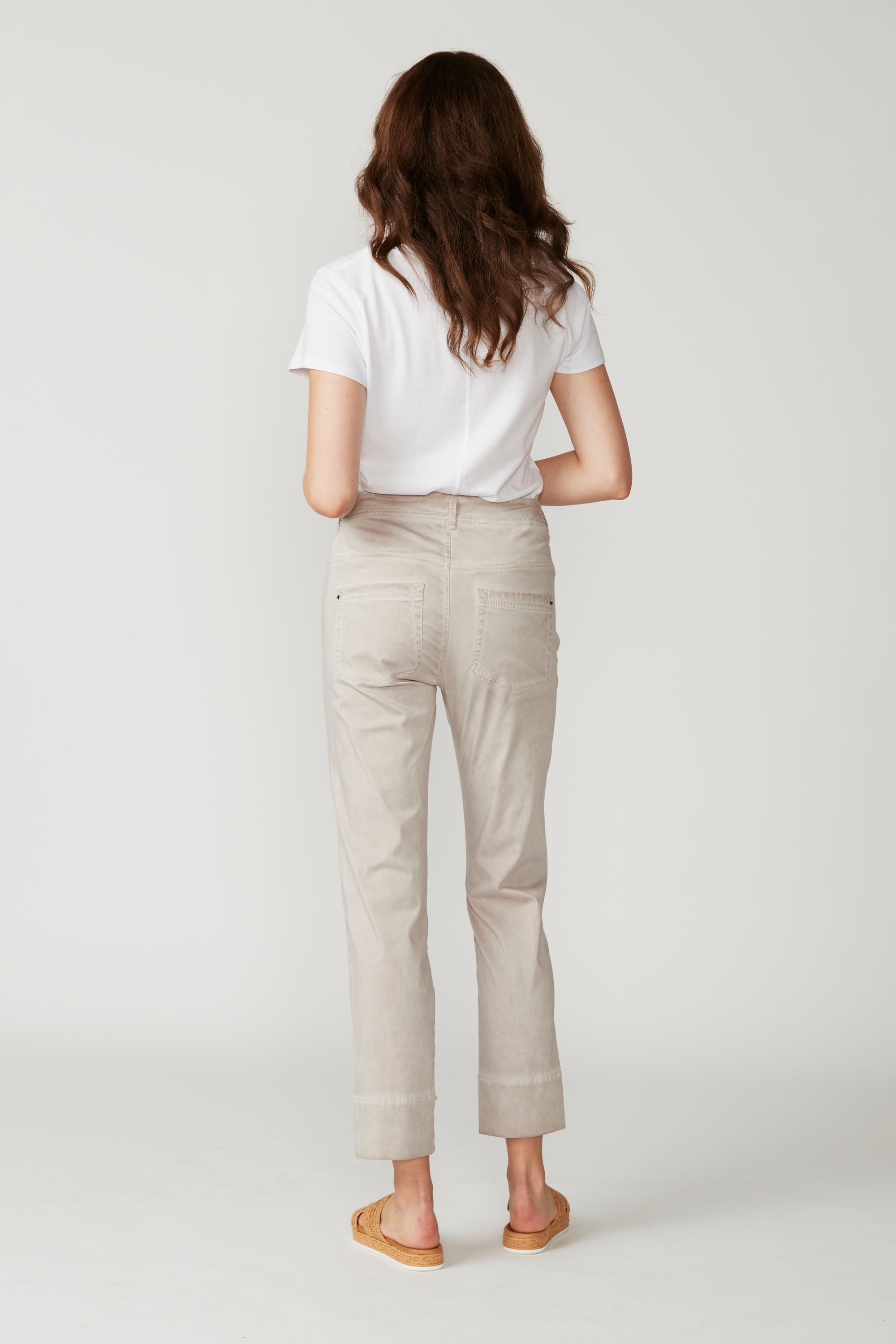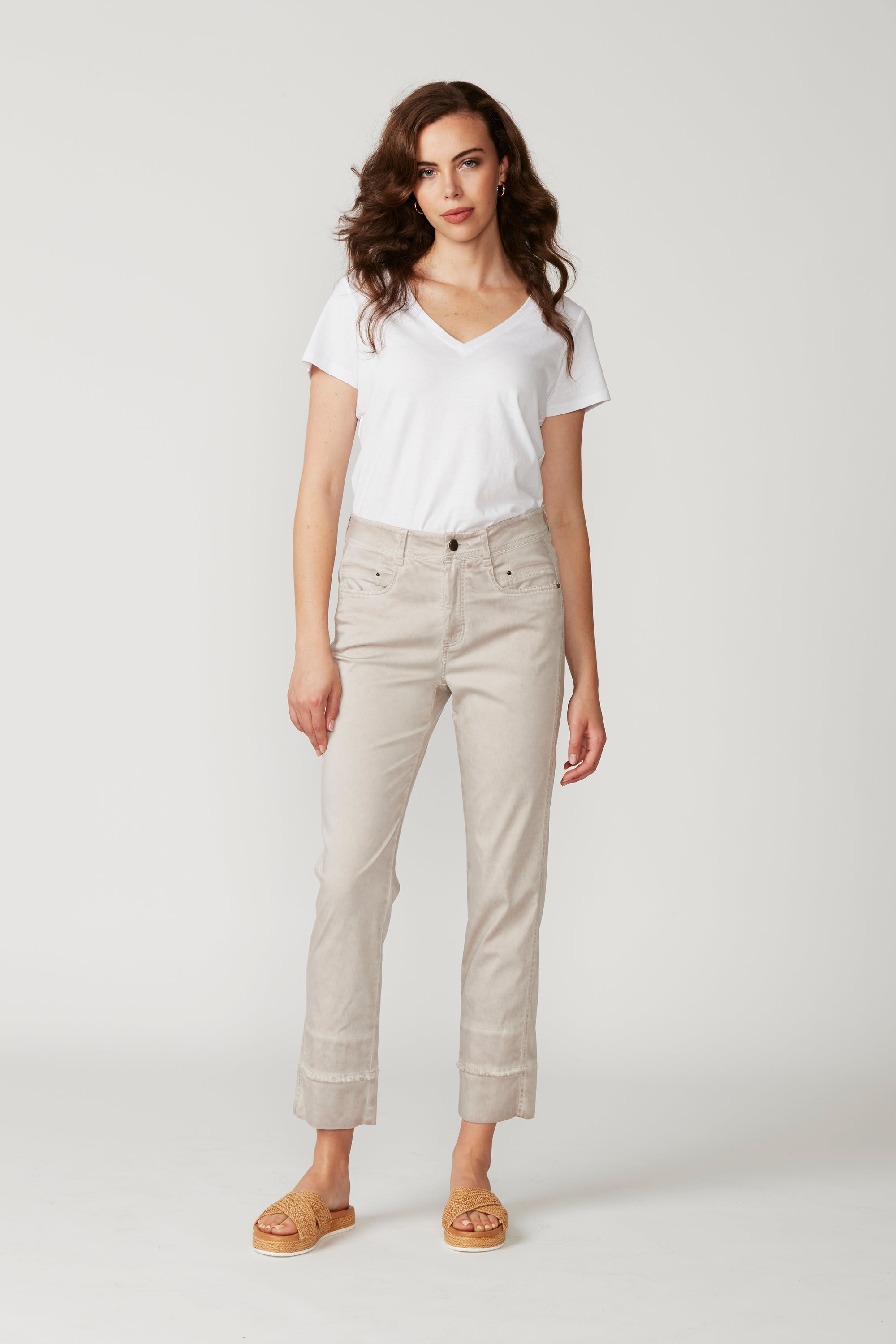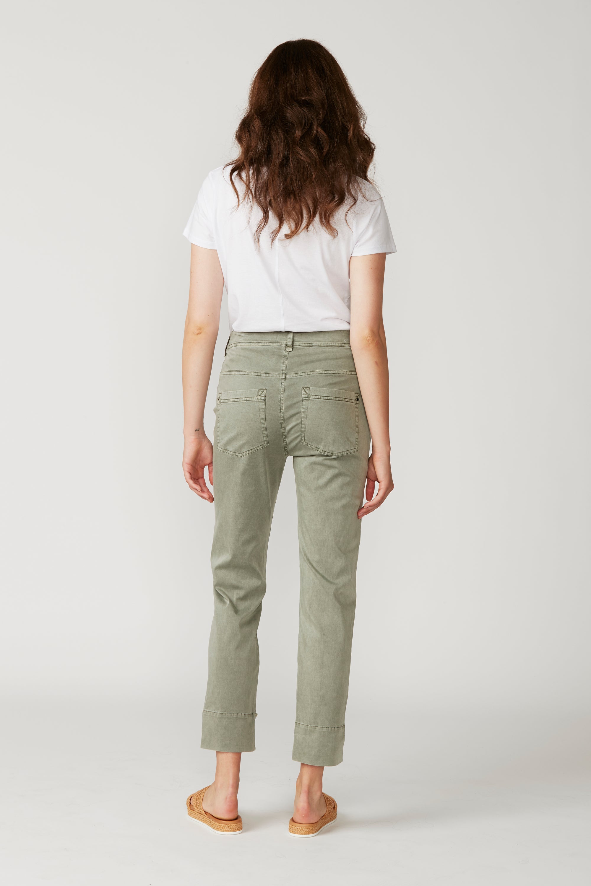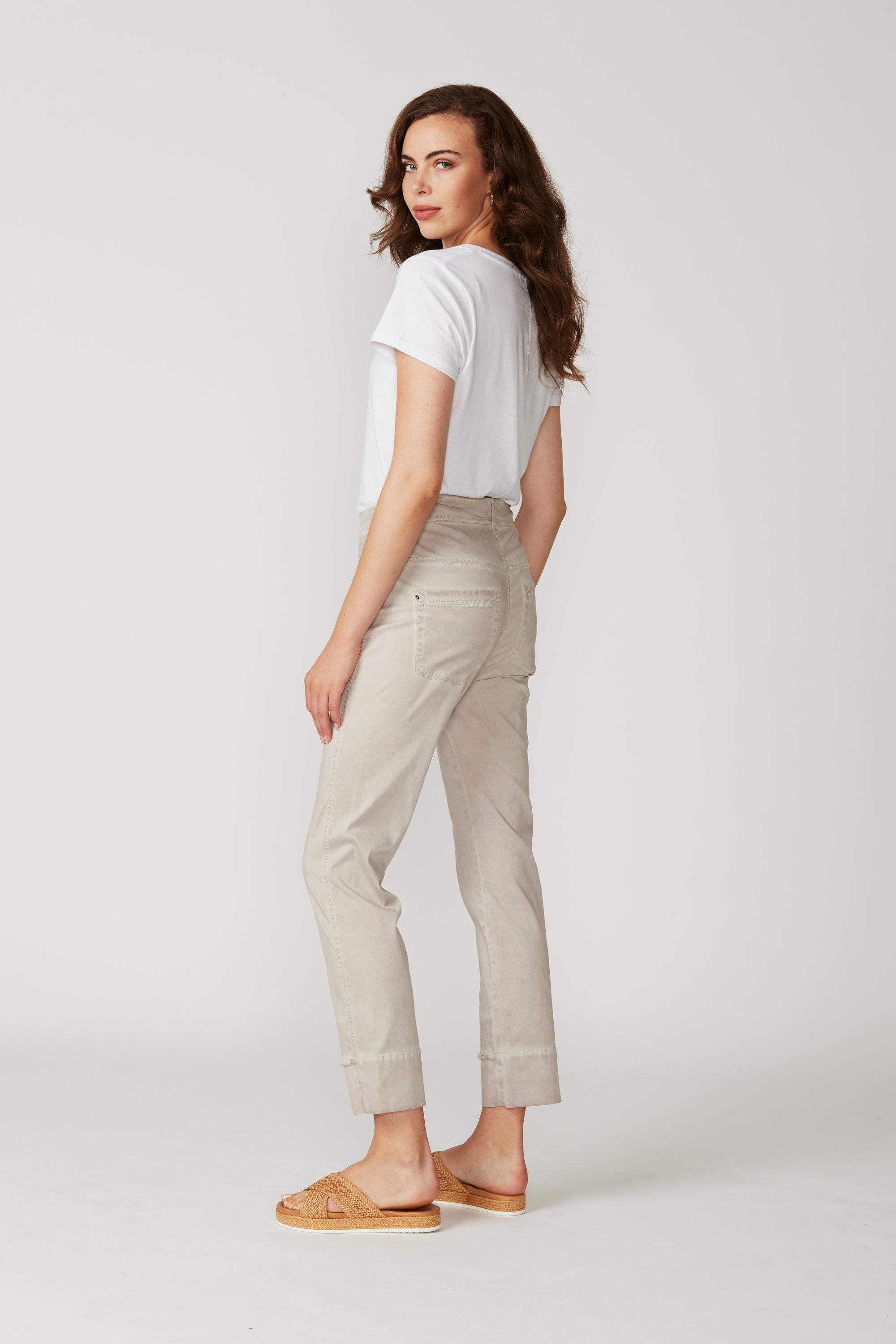 Casual jean style pant with fly front, hardware and 5 pockets. The frayed detailing at the hem panel means this pant pairs nicely with the Utility Jacket. The soft handle and slightly distressed finish is achieved by special garment wash. Can be worn with cuff rolled or unrolled.