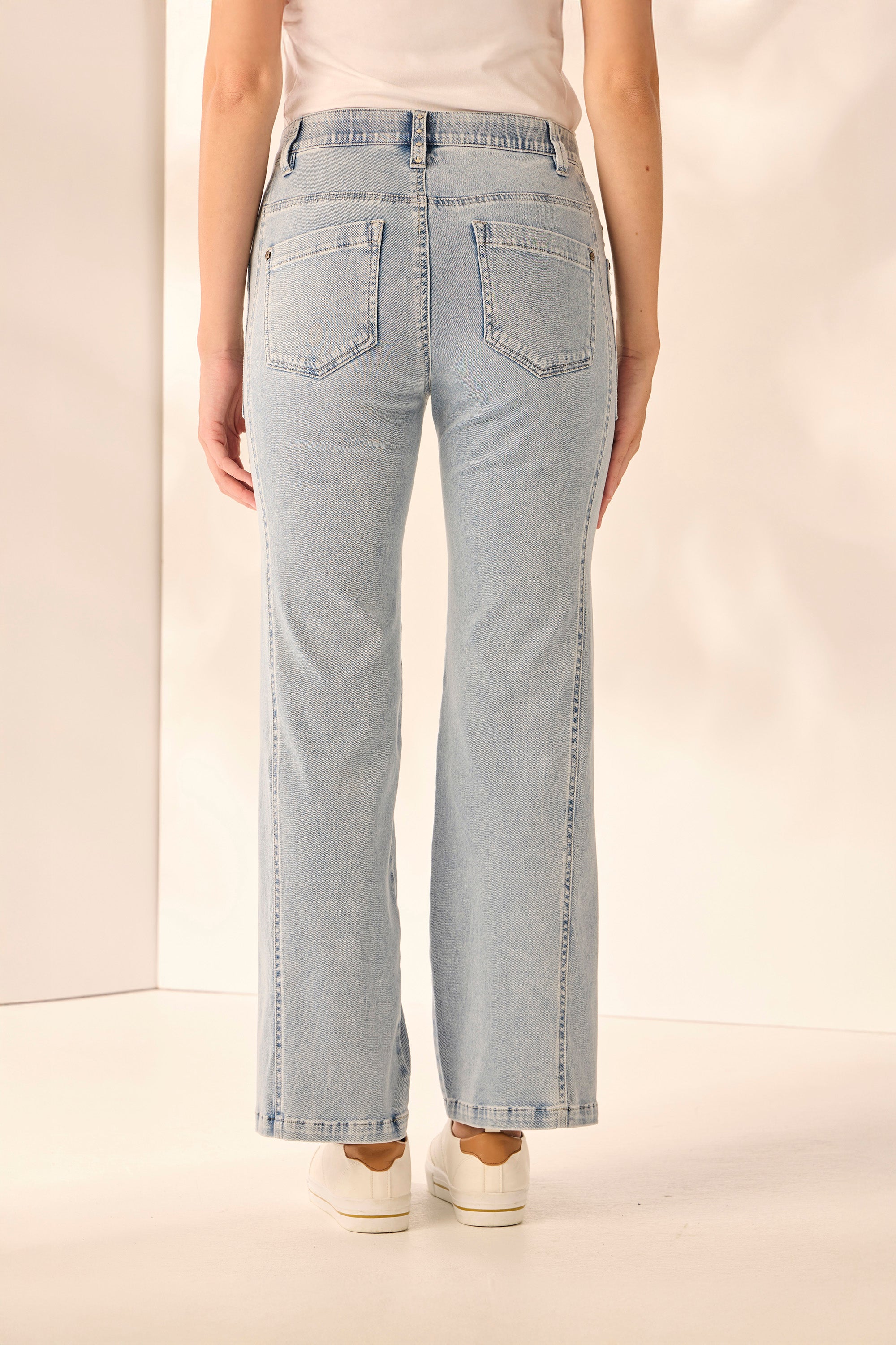 The Abby Jean offers a flattering straight-leg silhouette, crafted from soft stretch denim for the perfect blend of comfort and style. Thoughtful details like embroidery along the pocket side seams and centre back belt loop, along with distinctive patch pockets on both the front and back, bring a unique and modern touch to this everyday essential.