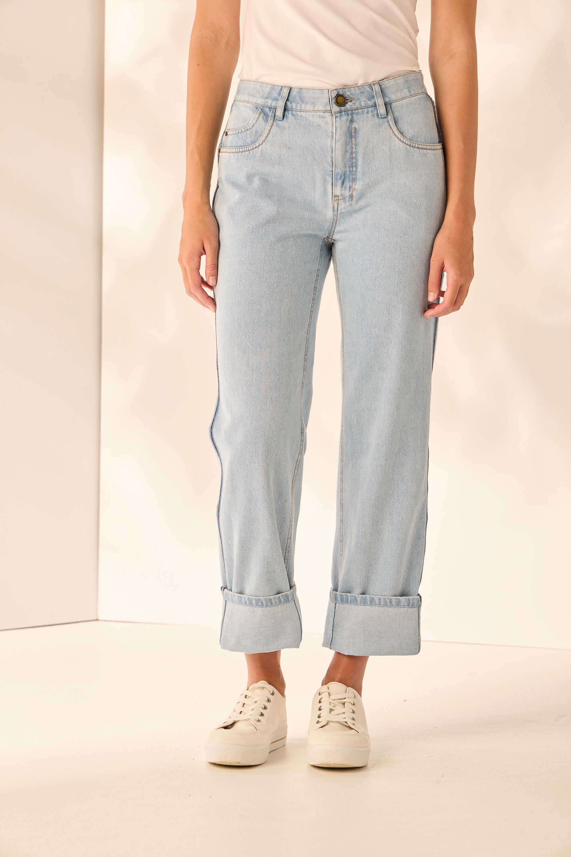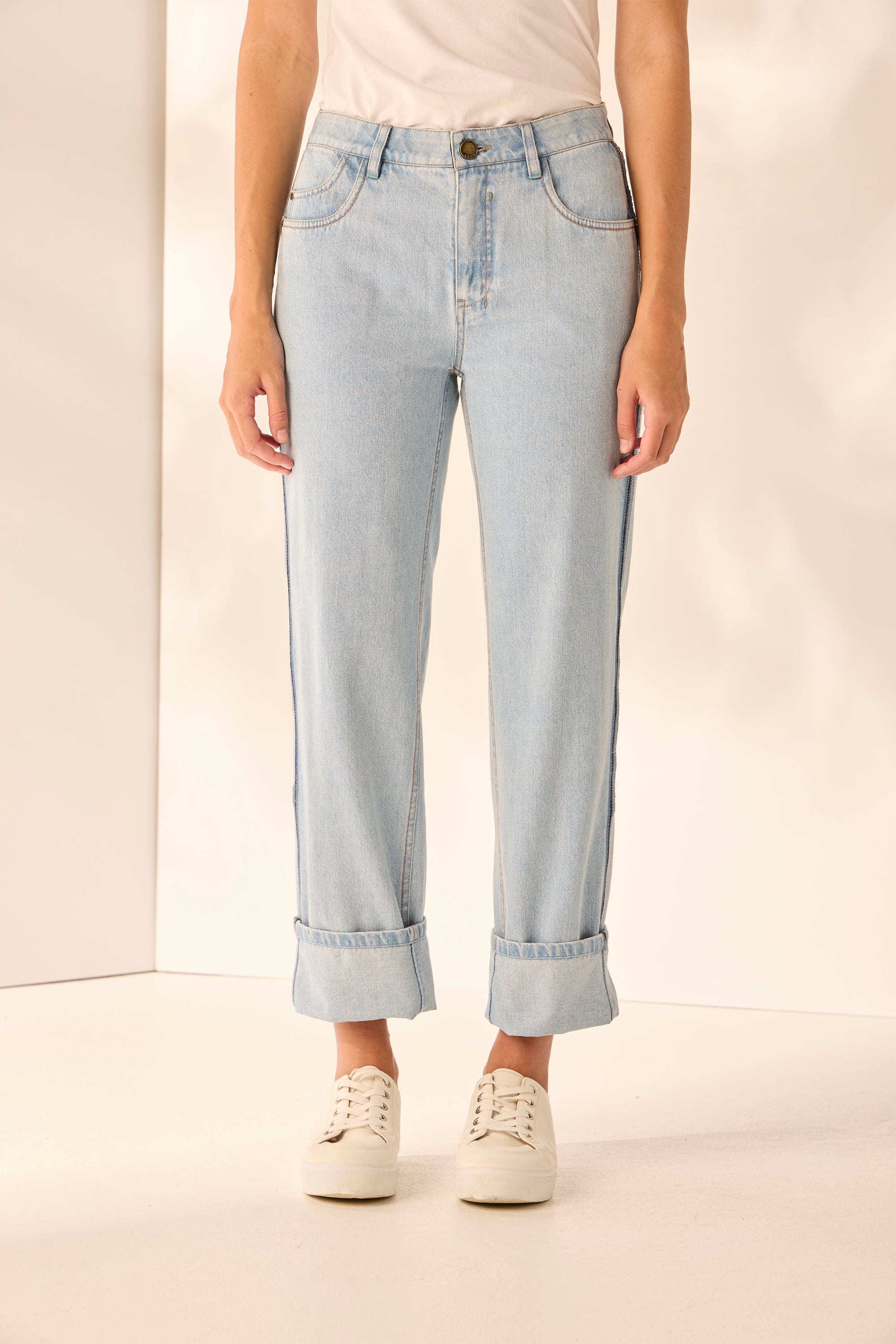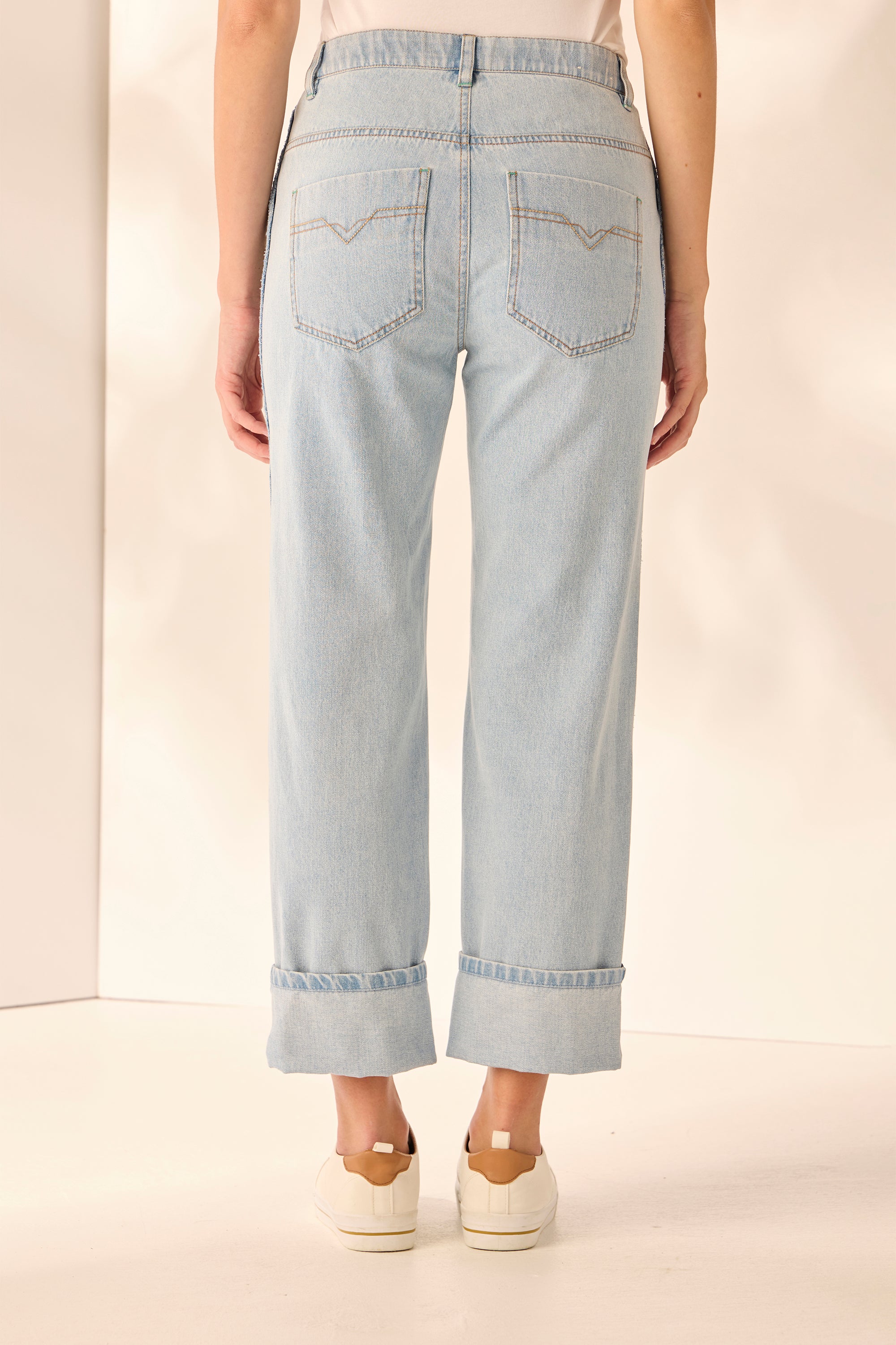 The Bleached Legal Jean is a new addition to our spring range. Crafted in super stretchy denim this straight-leg jean showcases contrast-heavy topstitch and feature raw edge down the side seam of the leg. Wear it with sneakers for a casual look or dress it up with sandals.
