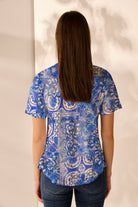 Bring a flash of creativity to your off-duty look with this easy-fit tee in the Porto print. Featuring a curved hemline, V-neckline with embroidery detailing around the edge.