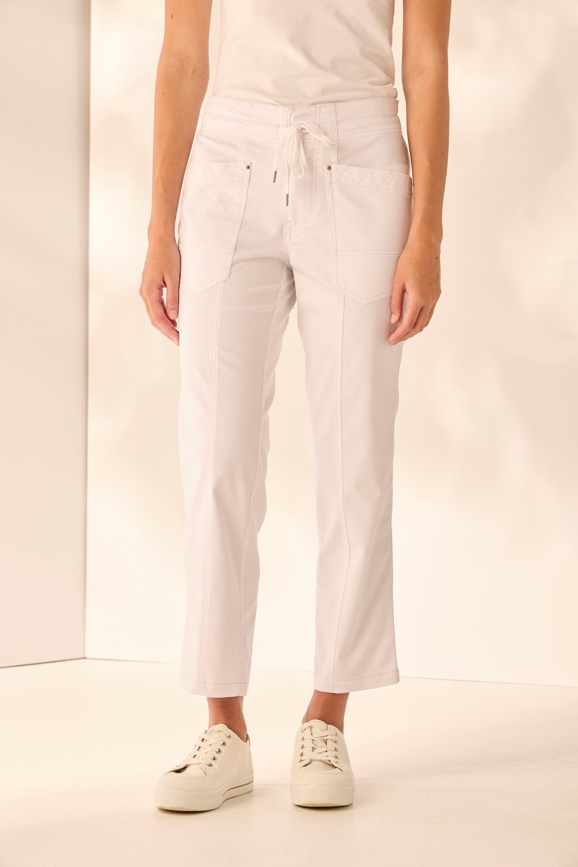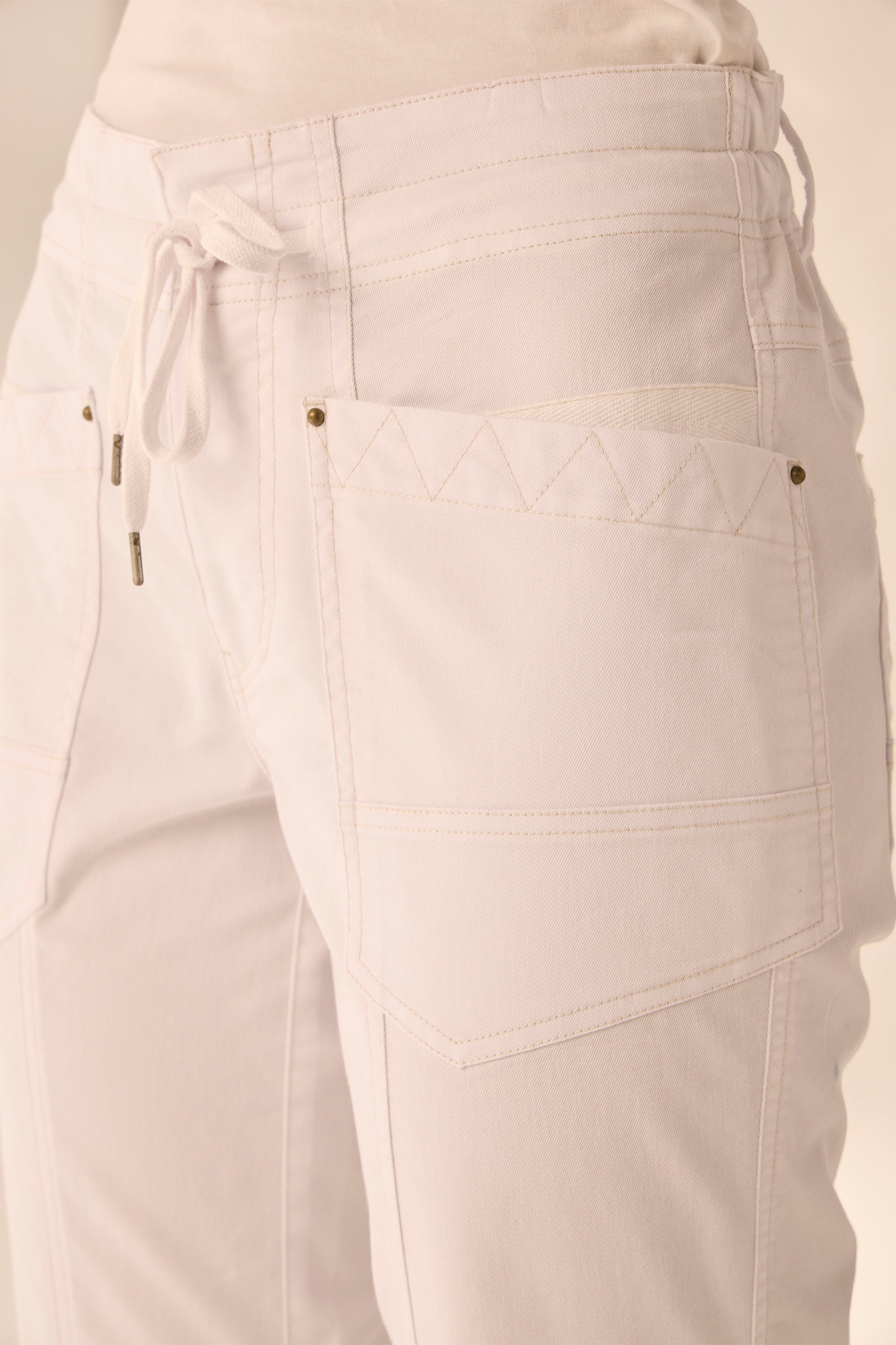 Casual jeans with an elasticated 1/2 waist, tailored fly opening and adjustable drawstring tie. Patch pocket on both front and back. Perfect for a casual weekend wear.