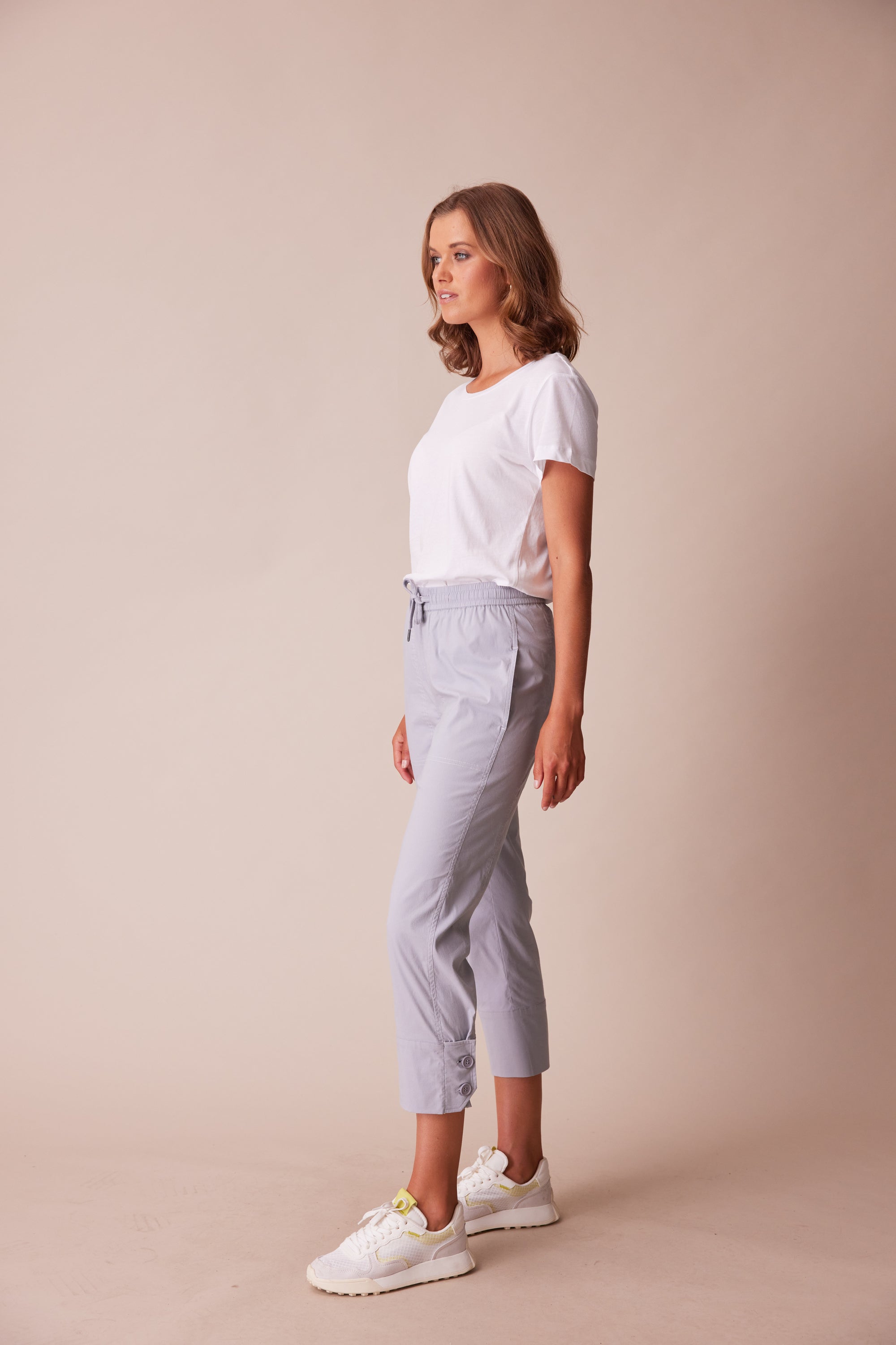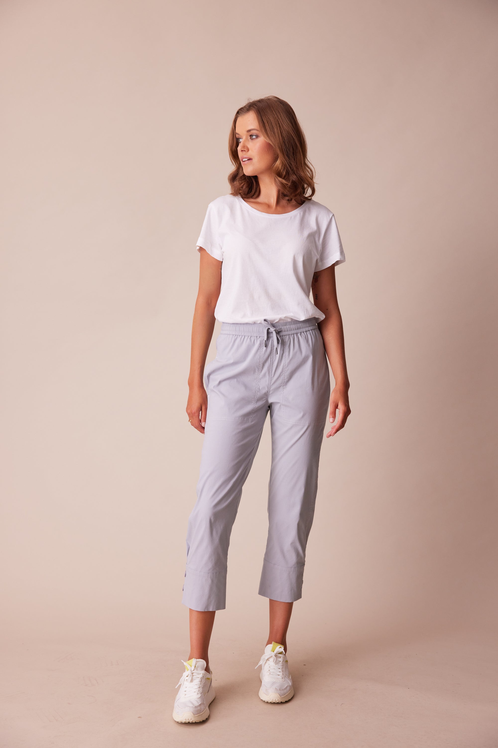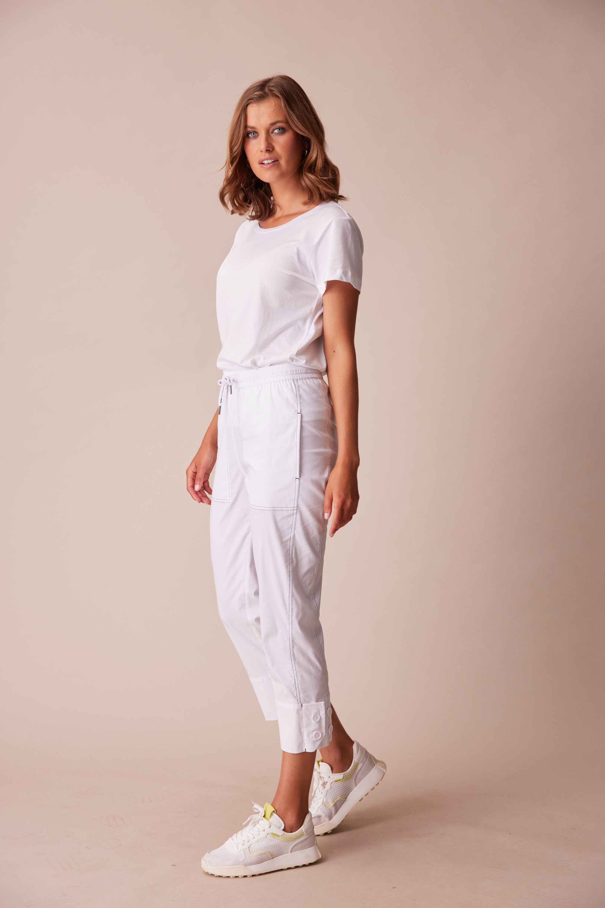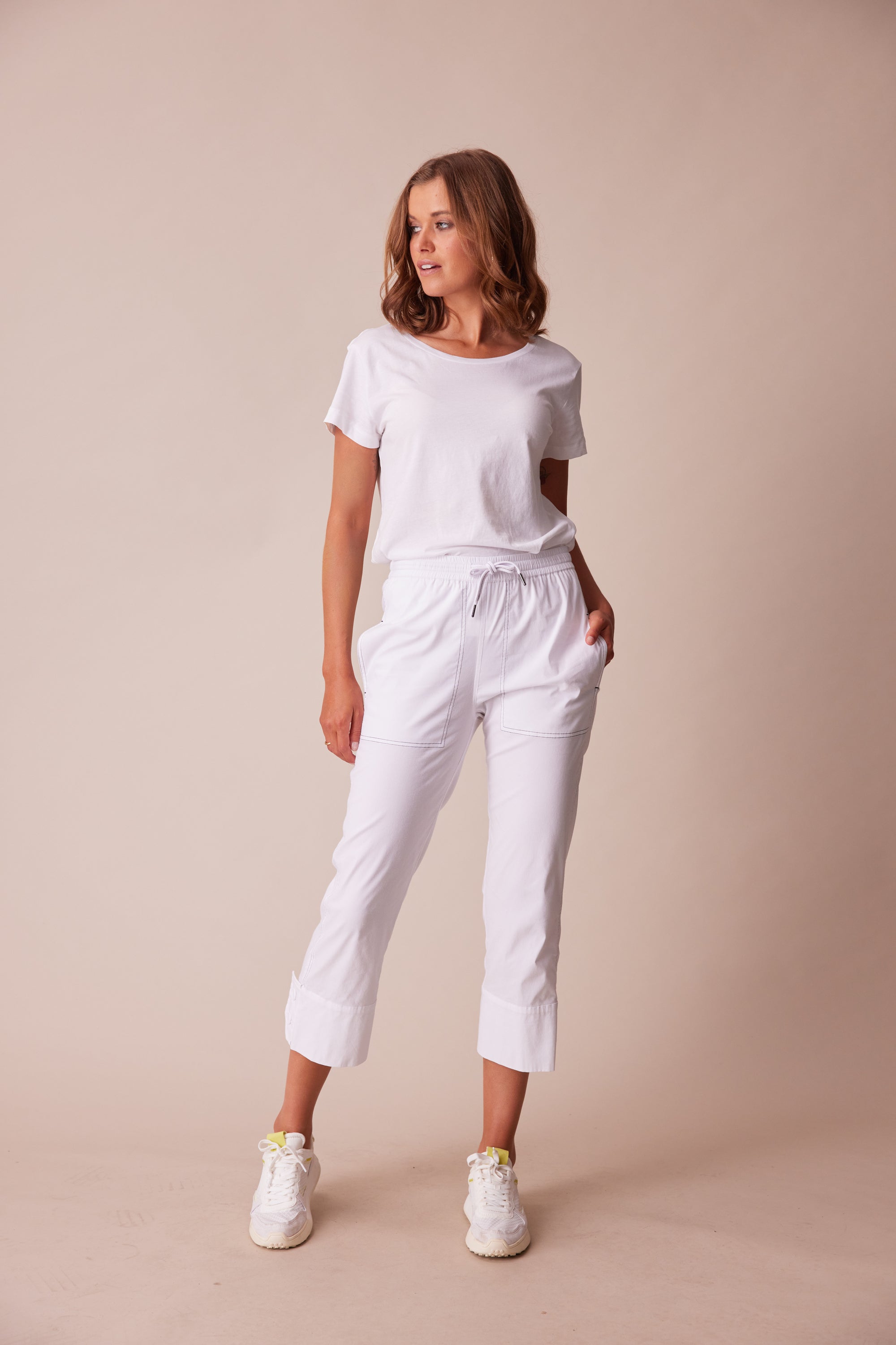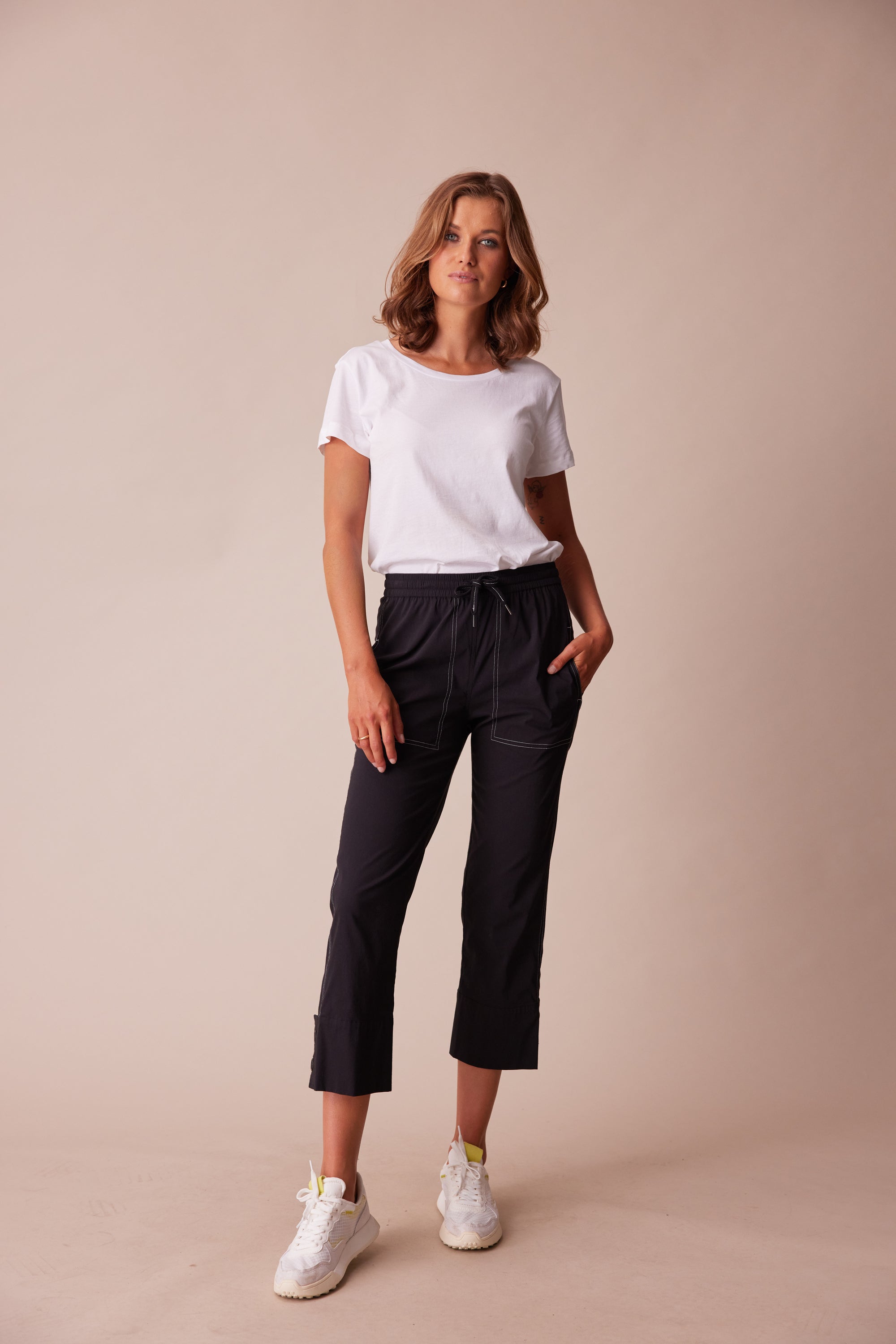The newest addition to our lightweight cotton rich LTL stretch pant range. This modern straight leg pant features elasticated waist, side pockets, contrast twin-needle topstitching and adjustable hem tab.