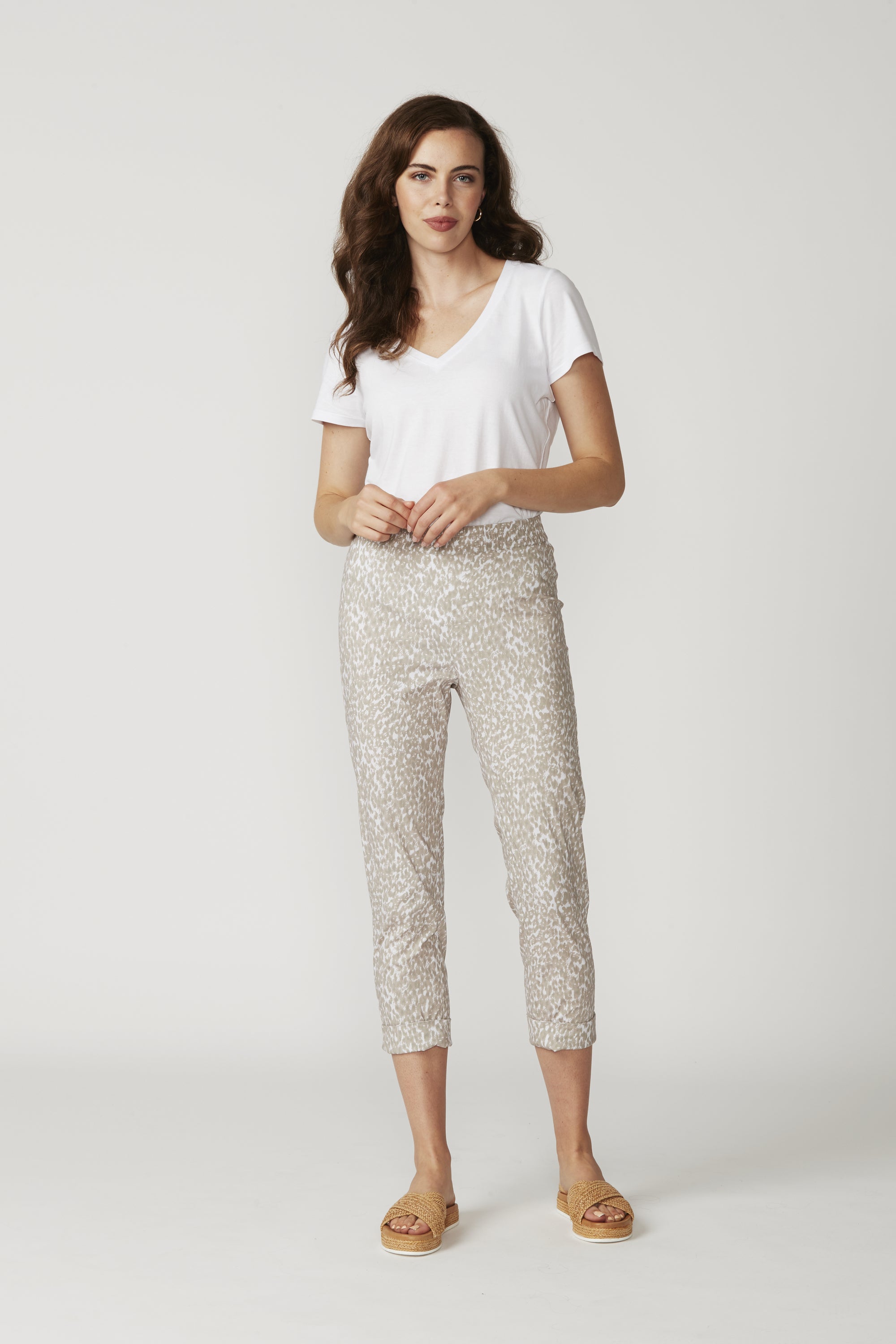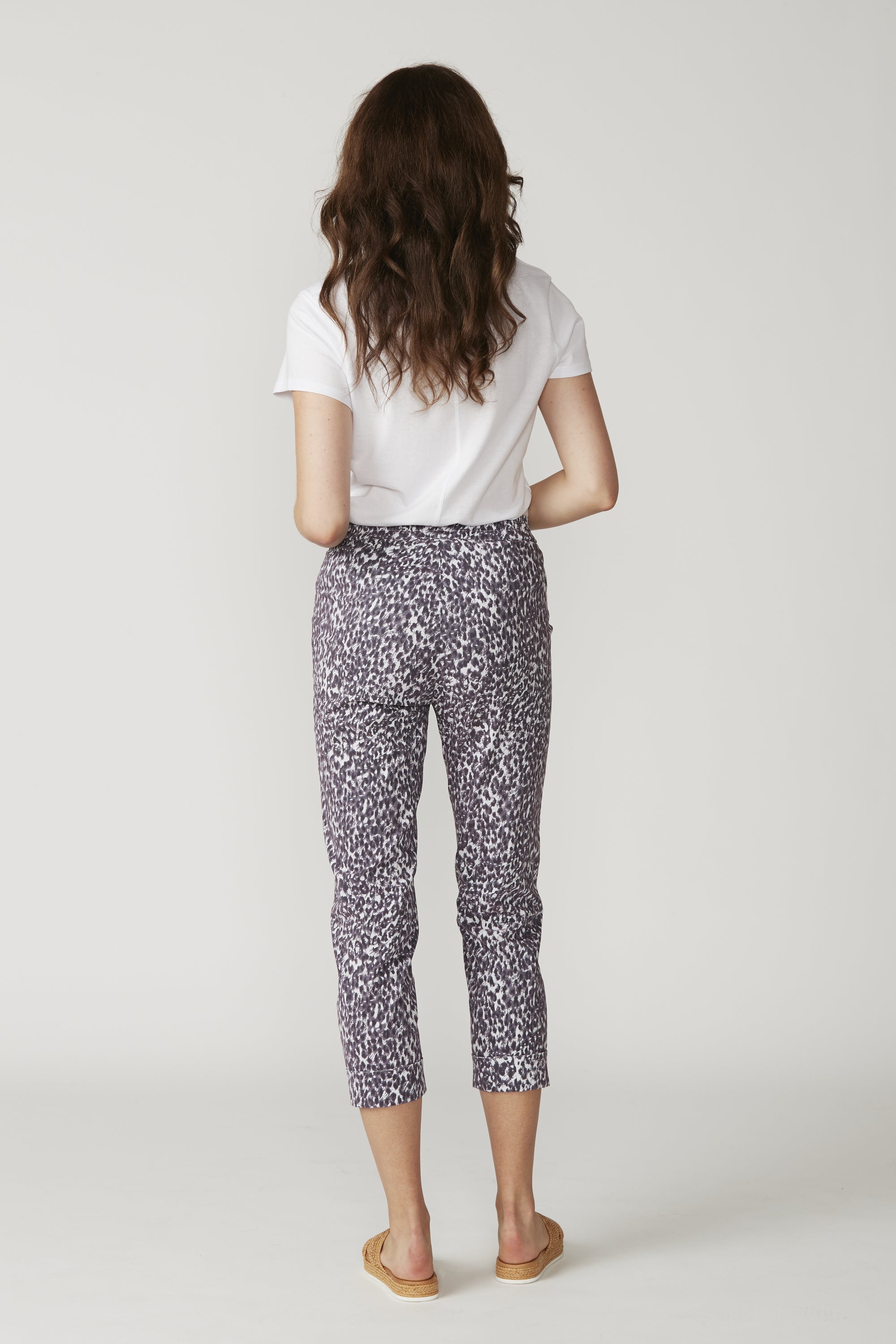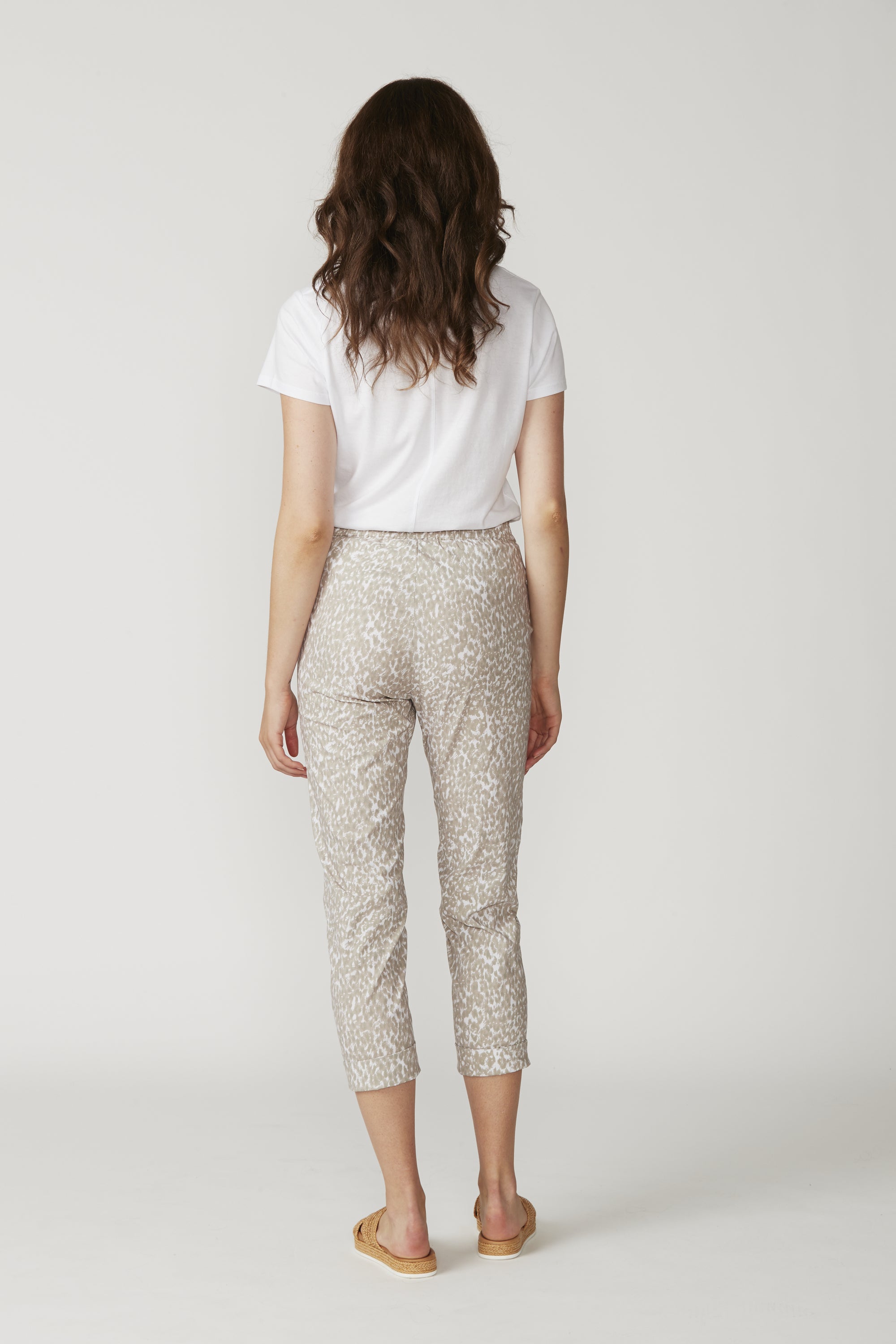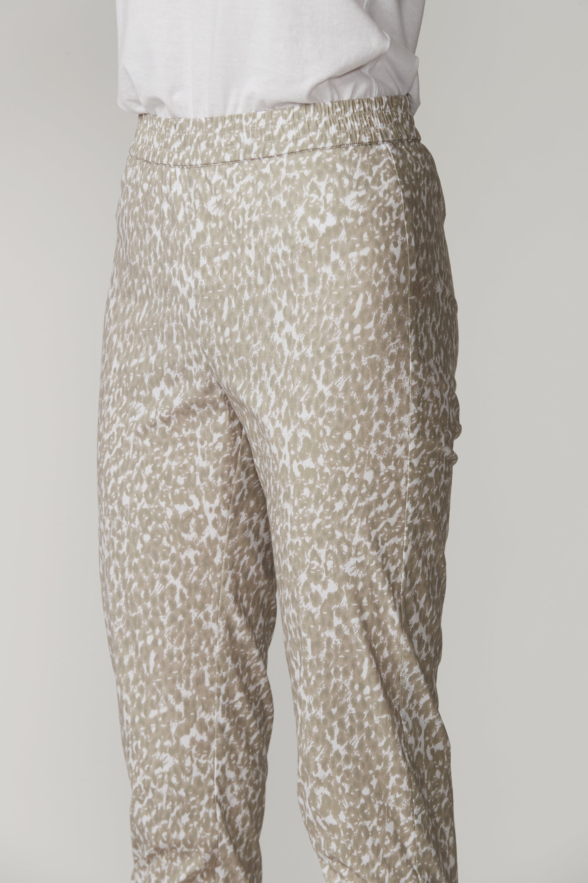 The LTL Pebble Pant — another new addition to our signature lightweight cotton rich stretch fabric, now in a Pebble print. Elasticated waist, 7/8 length with deep hem for optional turn up cuff.
