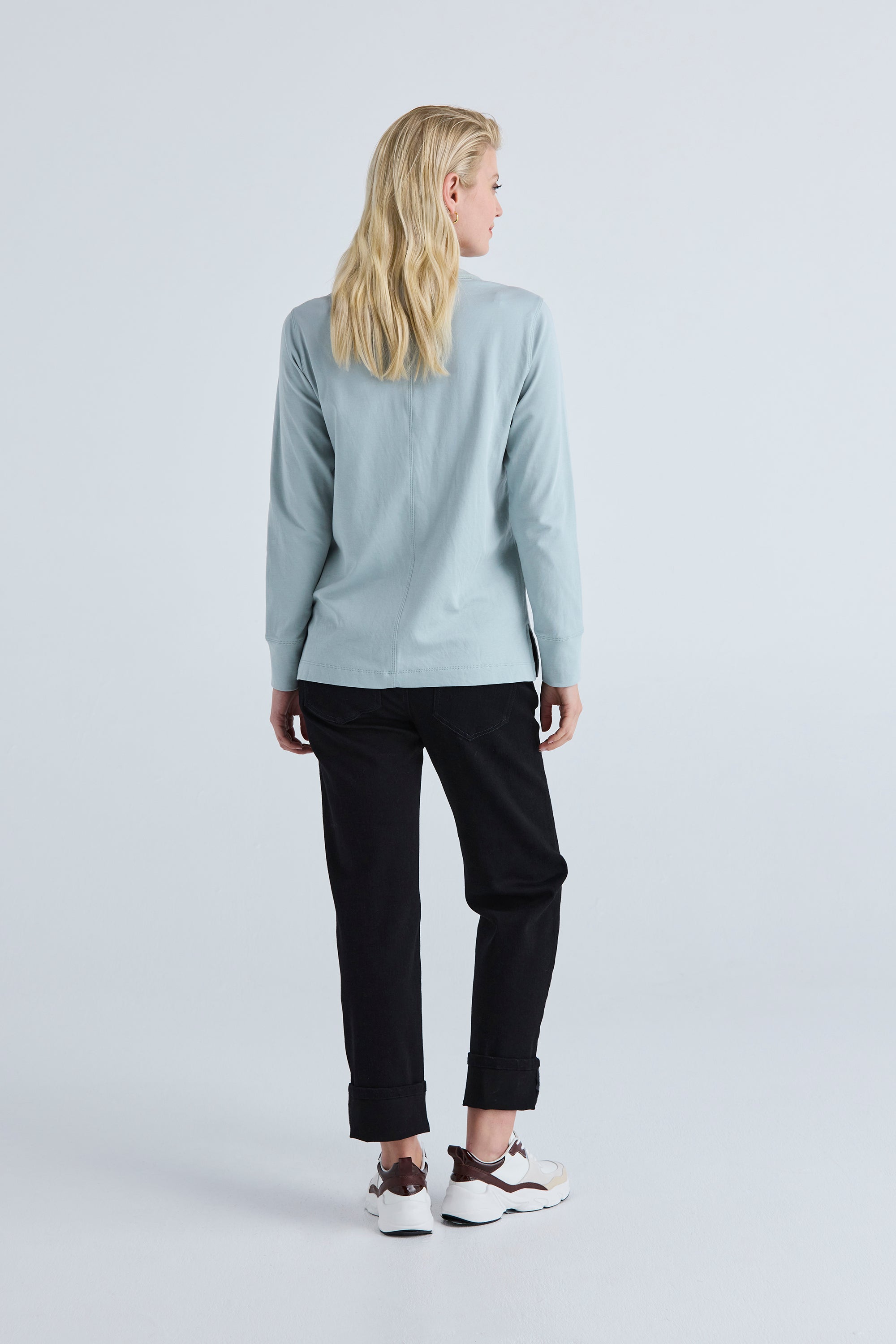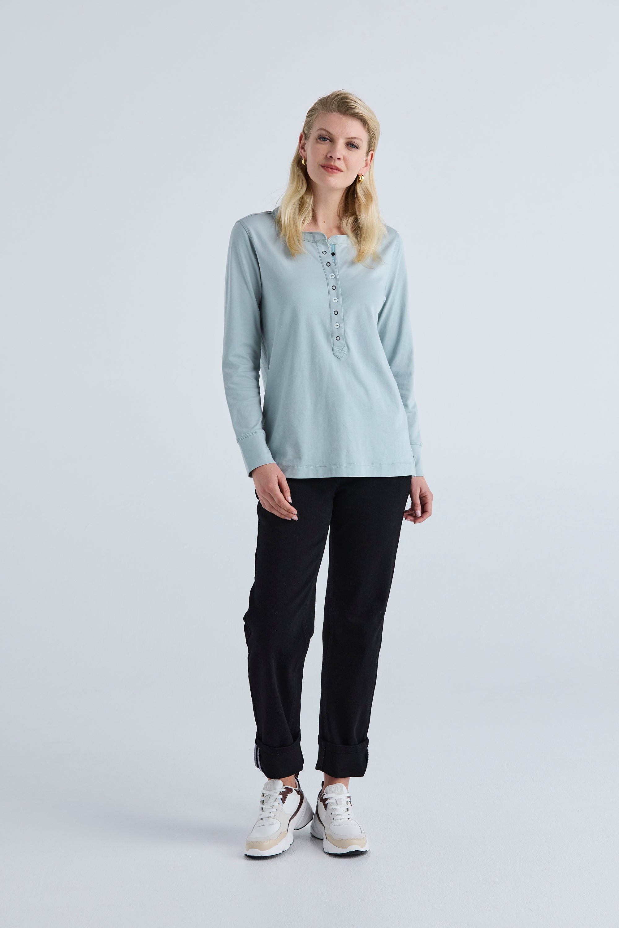 Elevate your modern comfort with our Chalk Top. Made from stretch cotton, it boasts a deep placket neckline adorned with snap domes and buttons for a contemporary twist. The dyed-to-match tape detail on the placket adds a touch of sophistication. It’s the details that make this top both stylish and comfortable.