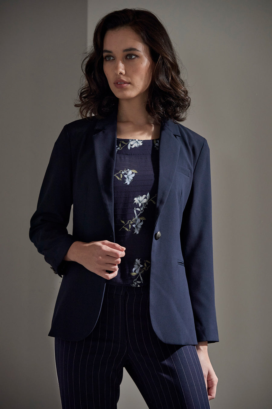 Agent classic blazer jacket; lined front body with shaped panelling.