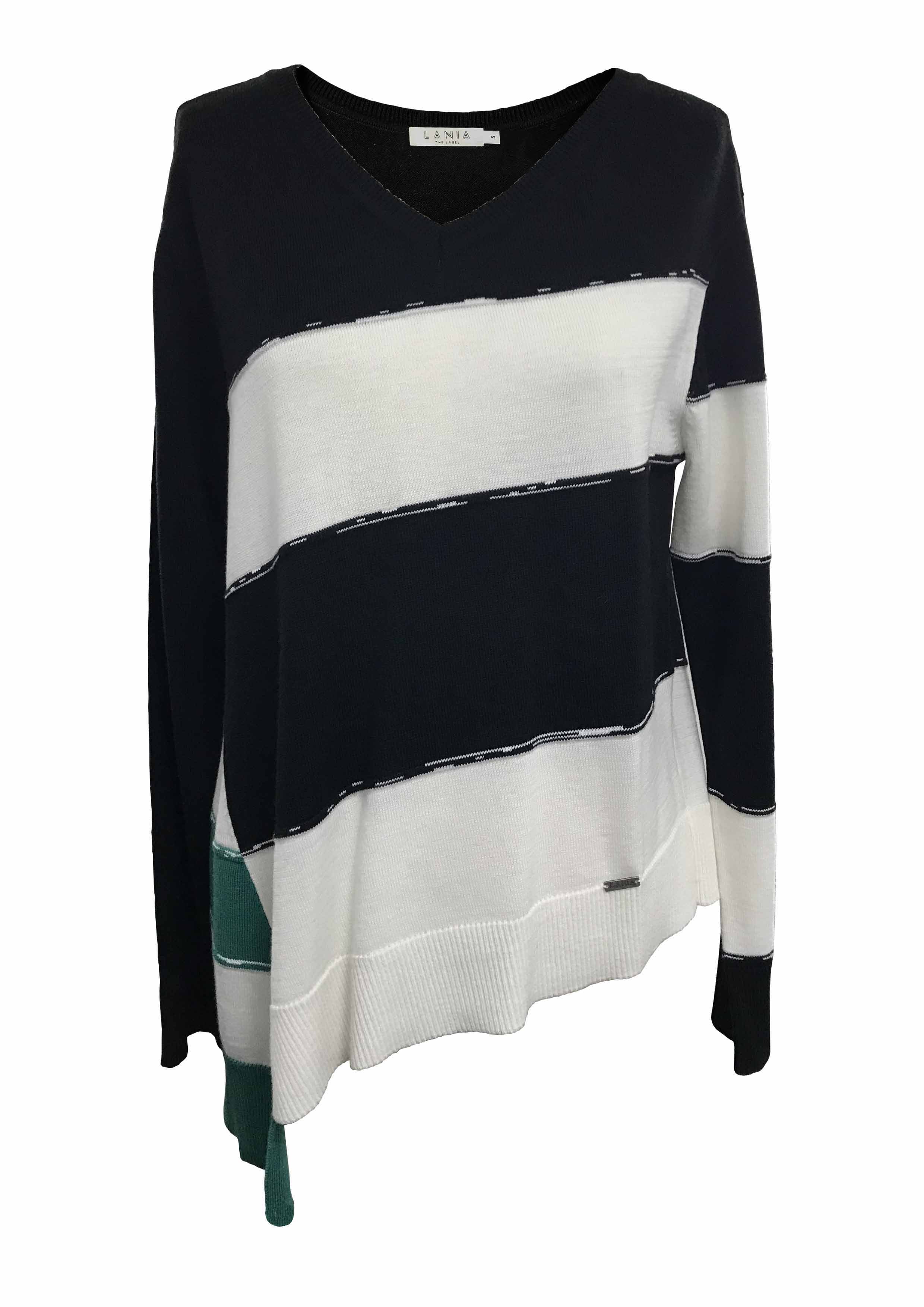 Lane Stripe Sweater features diagonal stripes with contrast stripe side panel — simple silhouette with a twist.