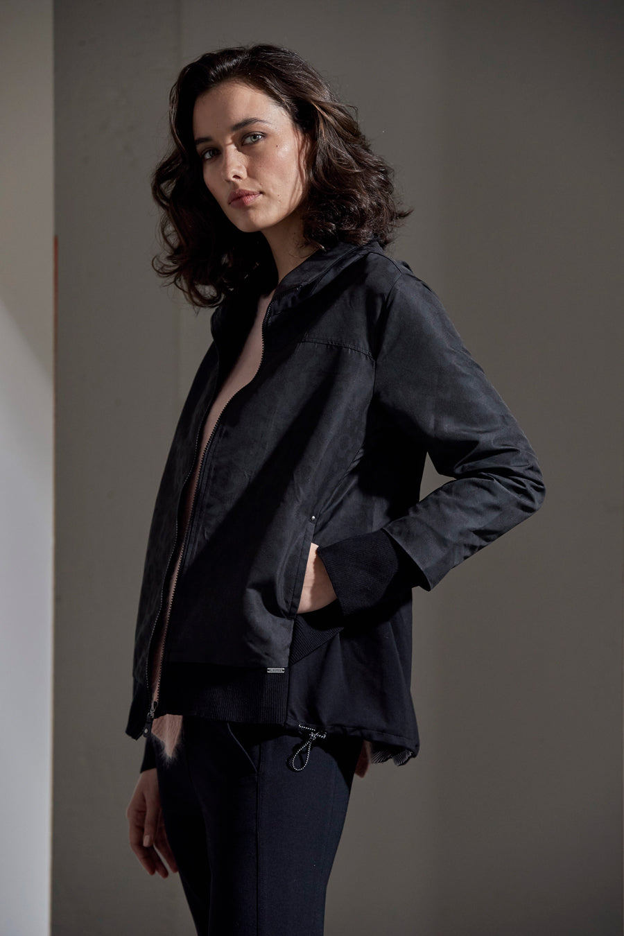 A smart casual jacket in a trendy cheetah print; zip front; stand-up collar and back hem panel in a stretchy fabric for comfort. Rib trim at side and back waist creates flattering shape.