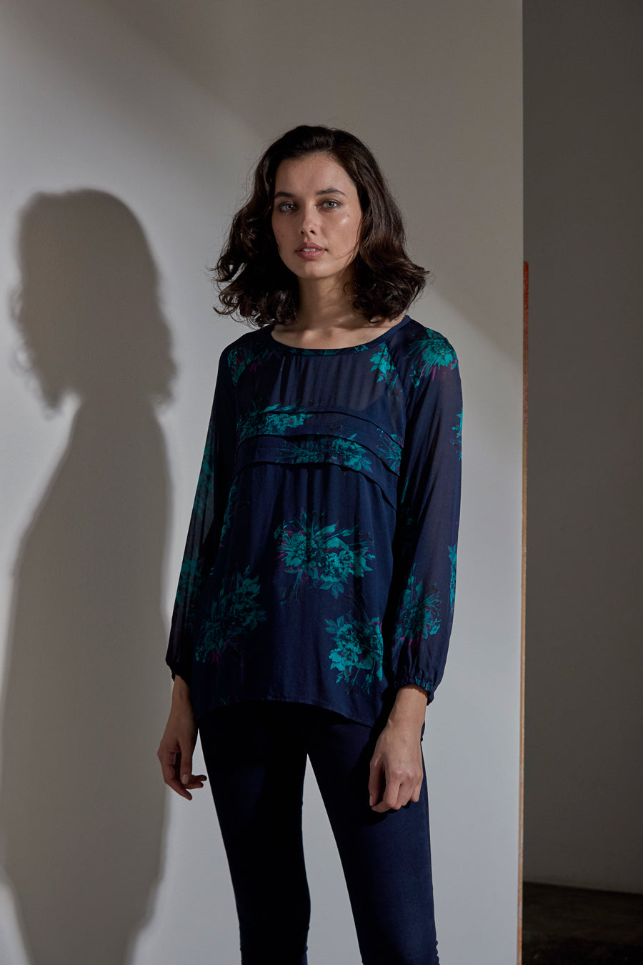 Paradise Floral Top is an easy-fit top in a vibrant paradise print; round neck; full sleeve; front tuck detail; longer back length with gathered waist seam.