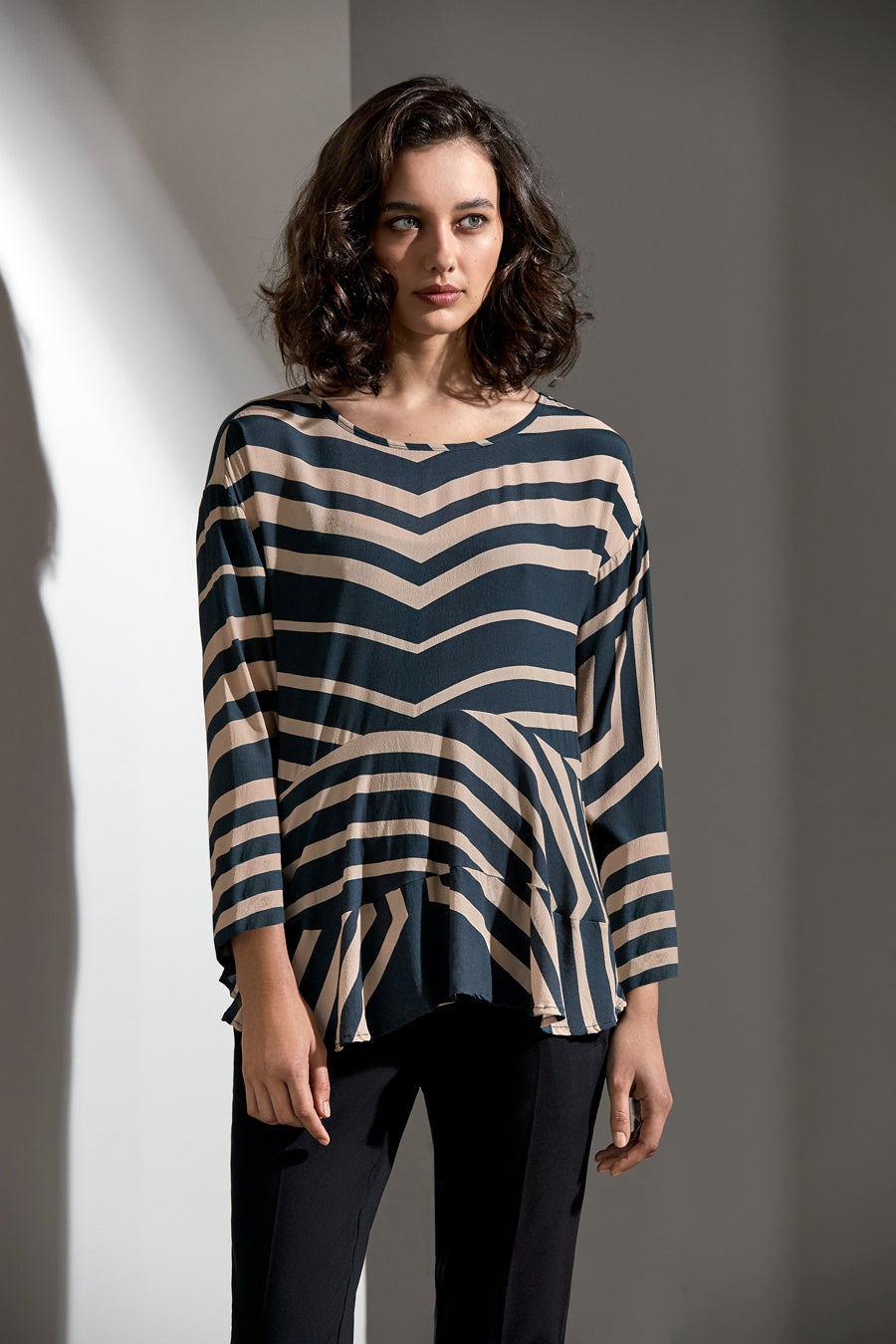 Xavier Top in Xavier print; round neck; 7/8 sleeve; panels are cleverly put together for the perfect shaping.