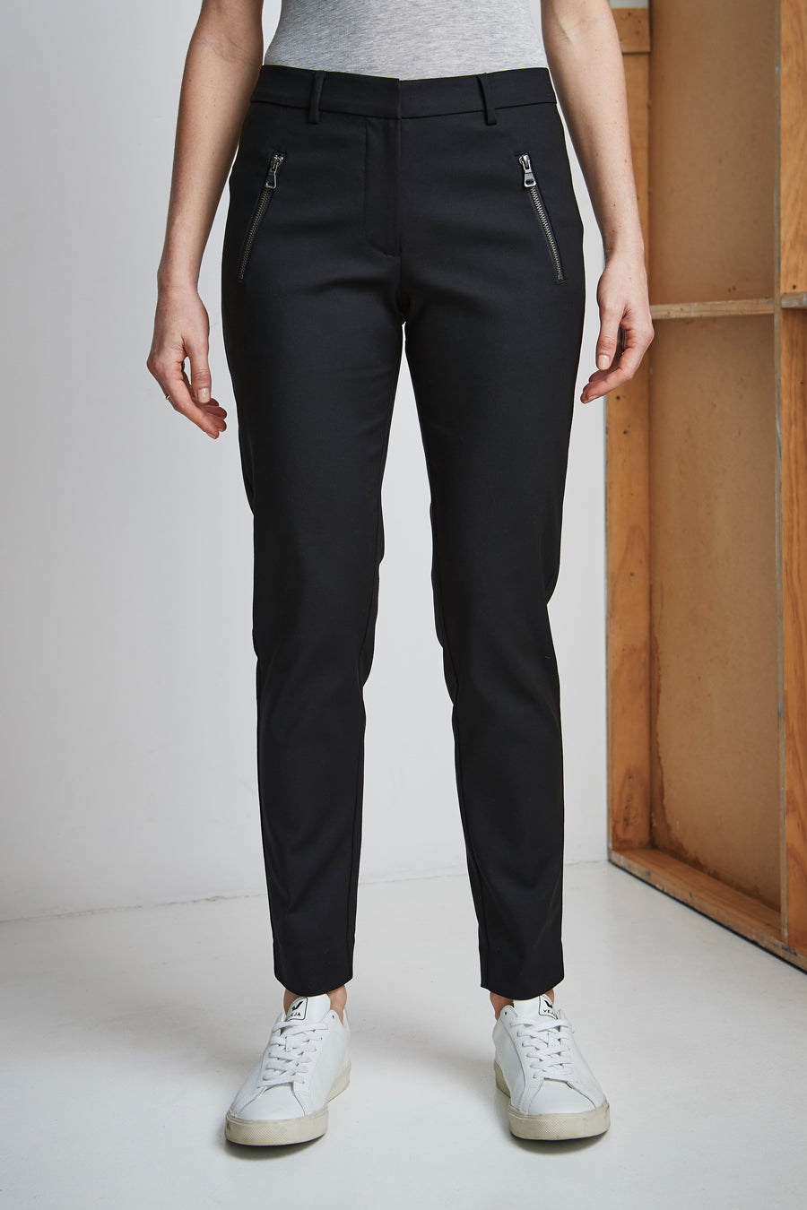 Suit it up with Jolie Pant, sitting mid to high — waisted with centre back elastic panel, slim leg & chunky exposed zipped pockets, a pant for every occasion.