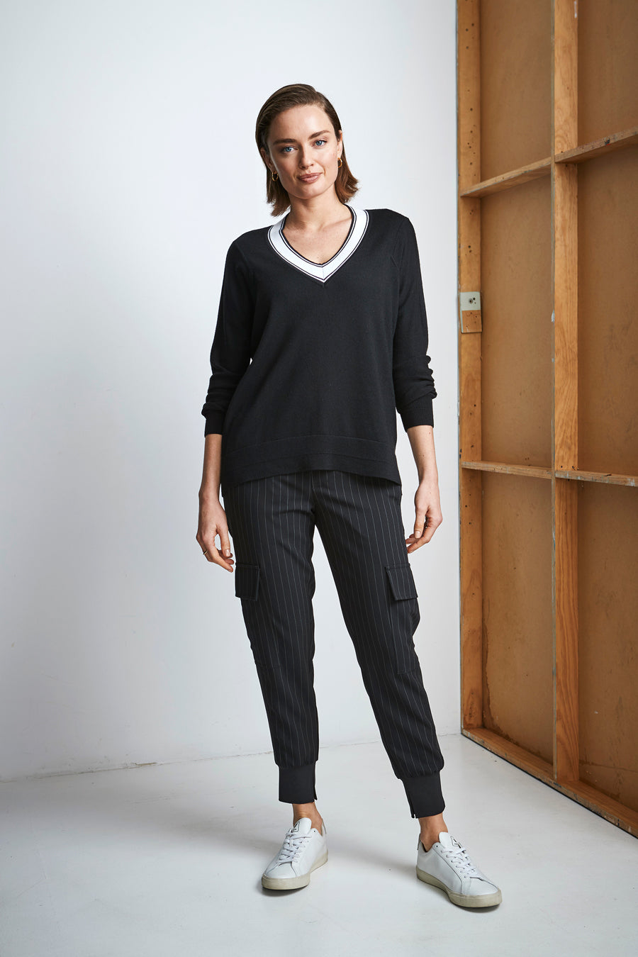 Lightweight essential 100% Pure Merino Wool sweater, bringing you this oversized, smart casual sweater; featuring exposed panelling and rib strapping detail at sleeves.