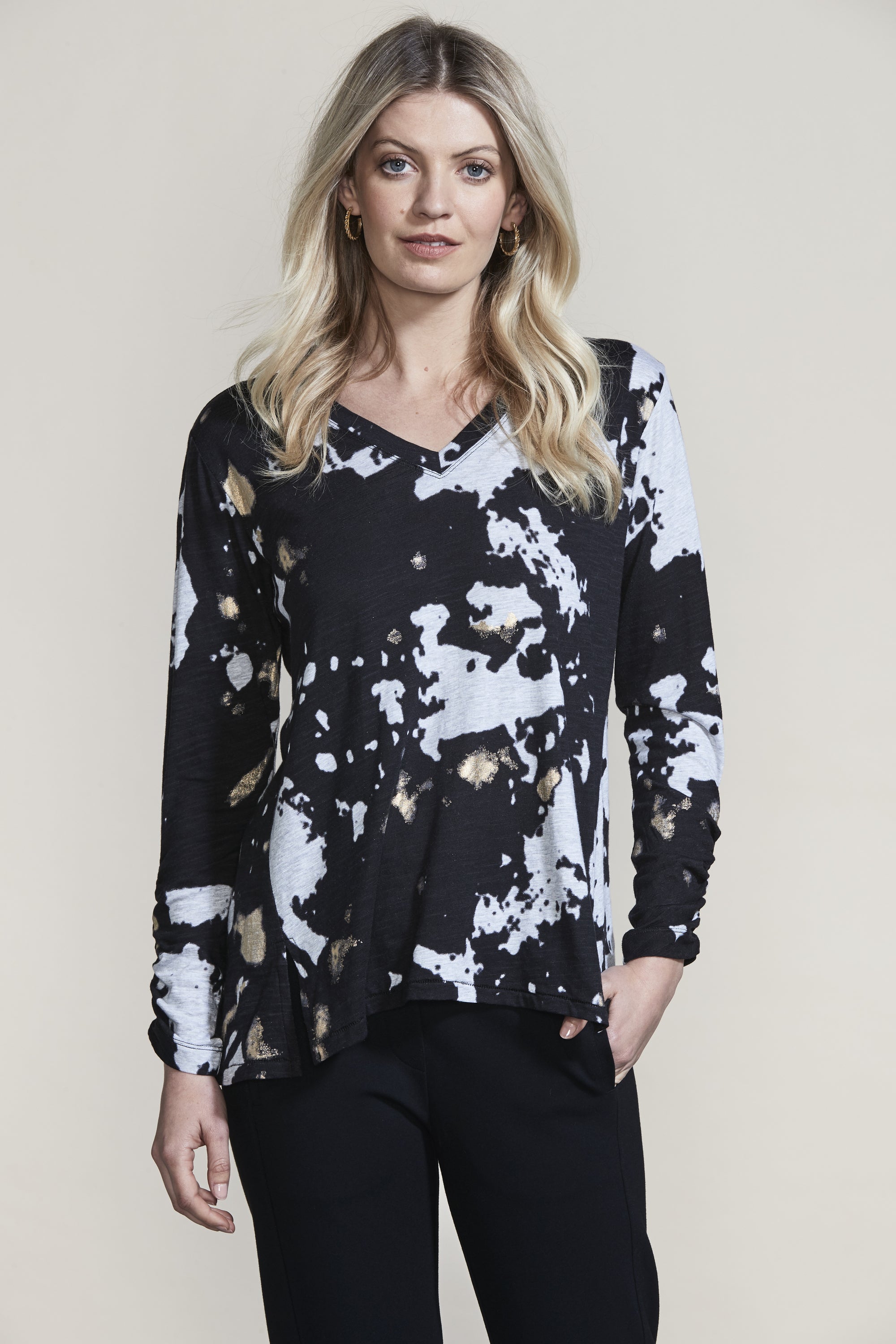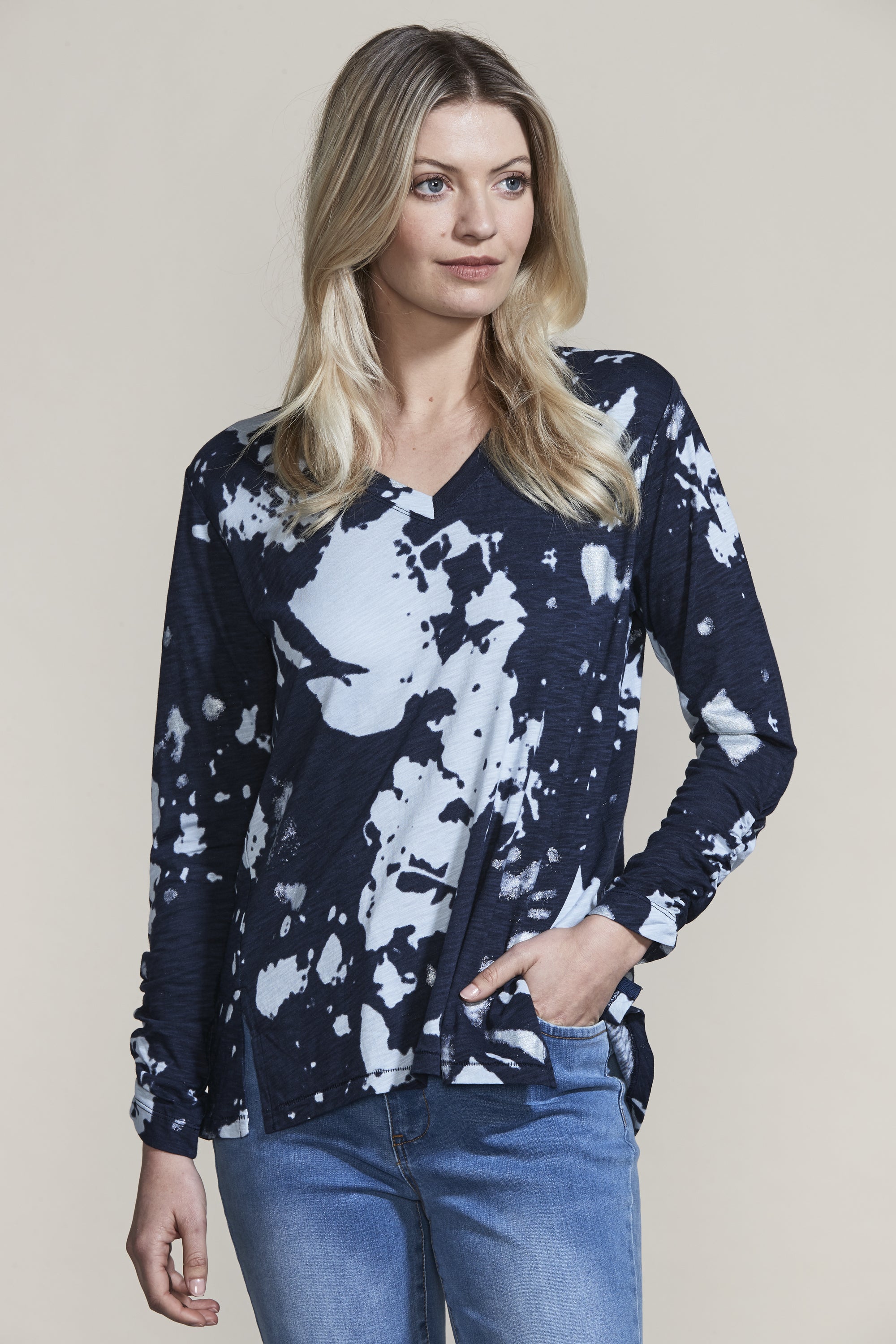 Bring a splash of creativity to your off-duty look with this abstract print relaxed fit top in a soft handle cotton modal jersey. Wear with the Vienna Jean in black for an effortless everyday look.