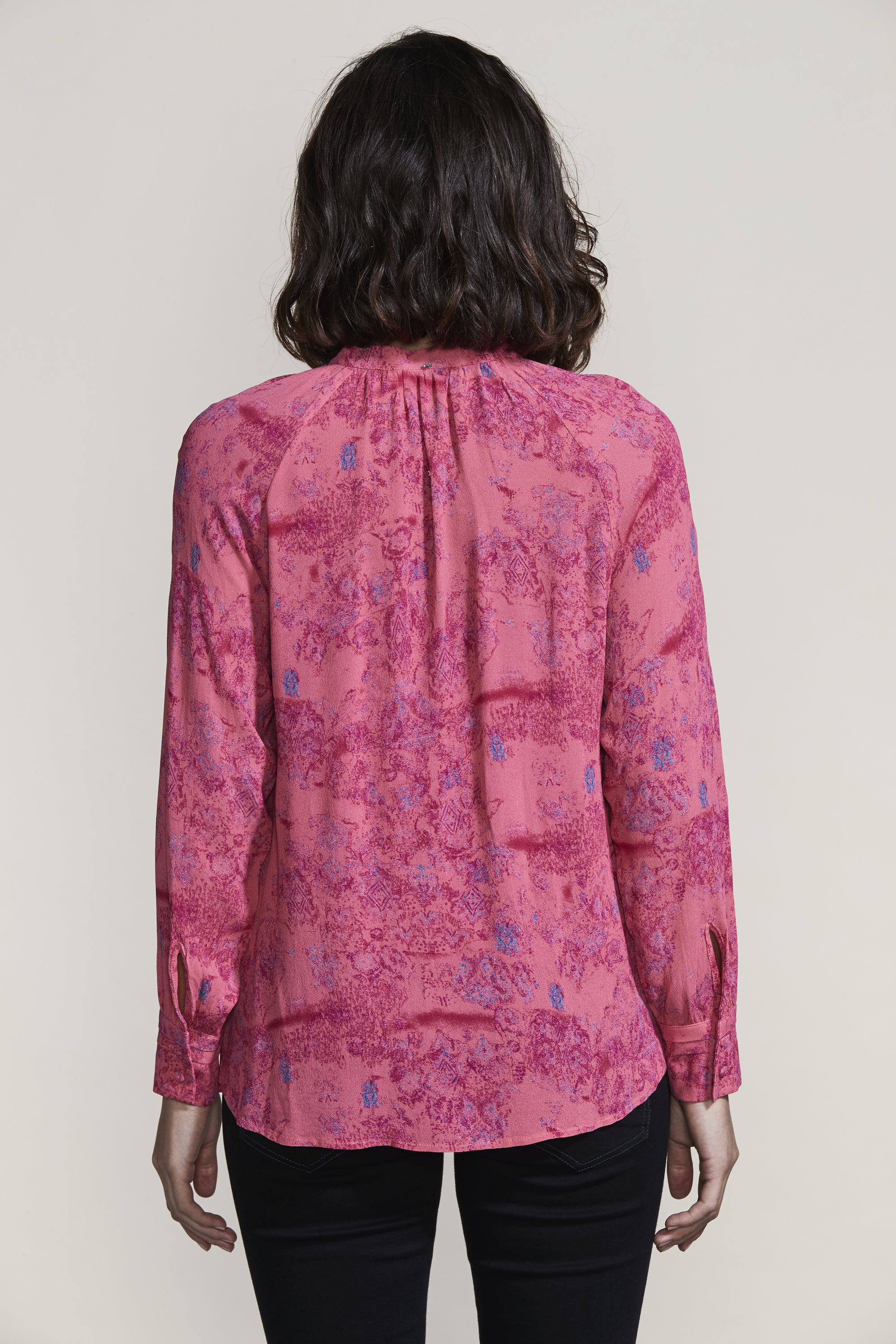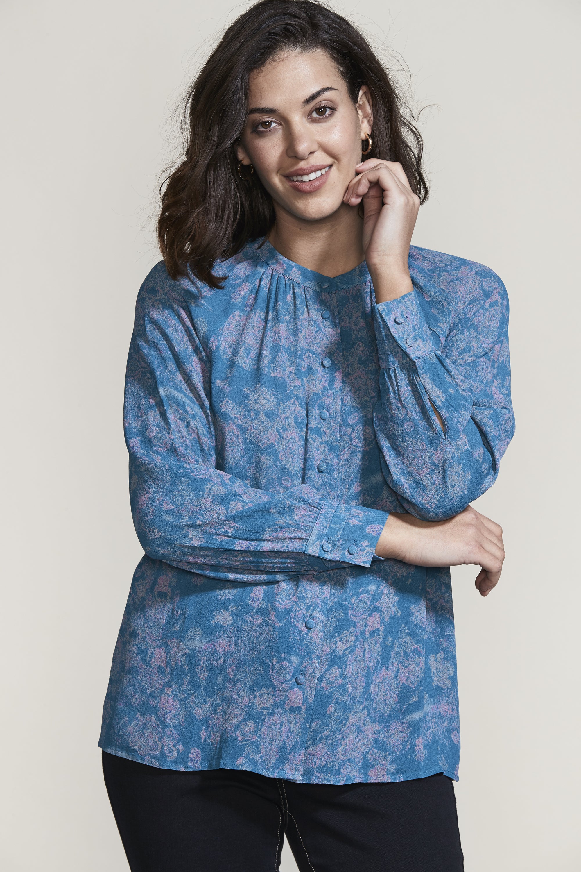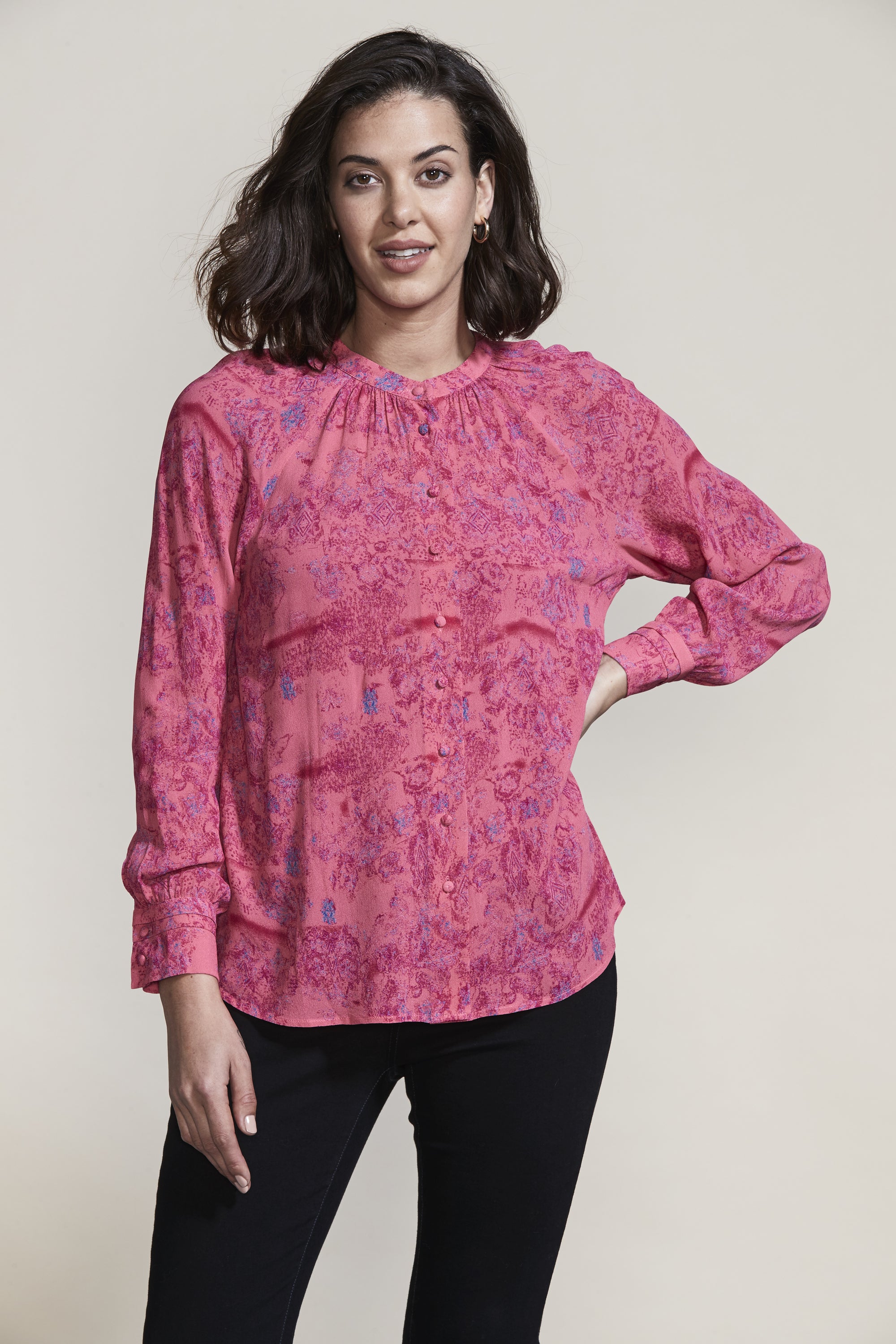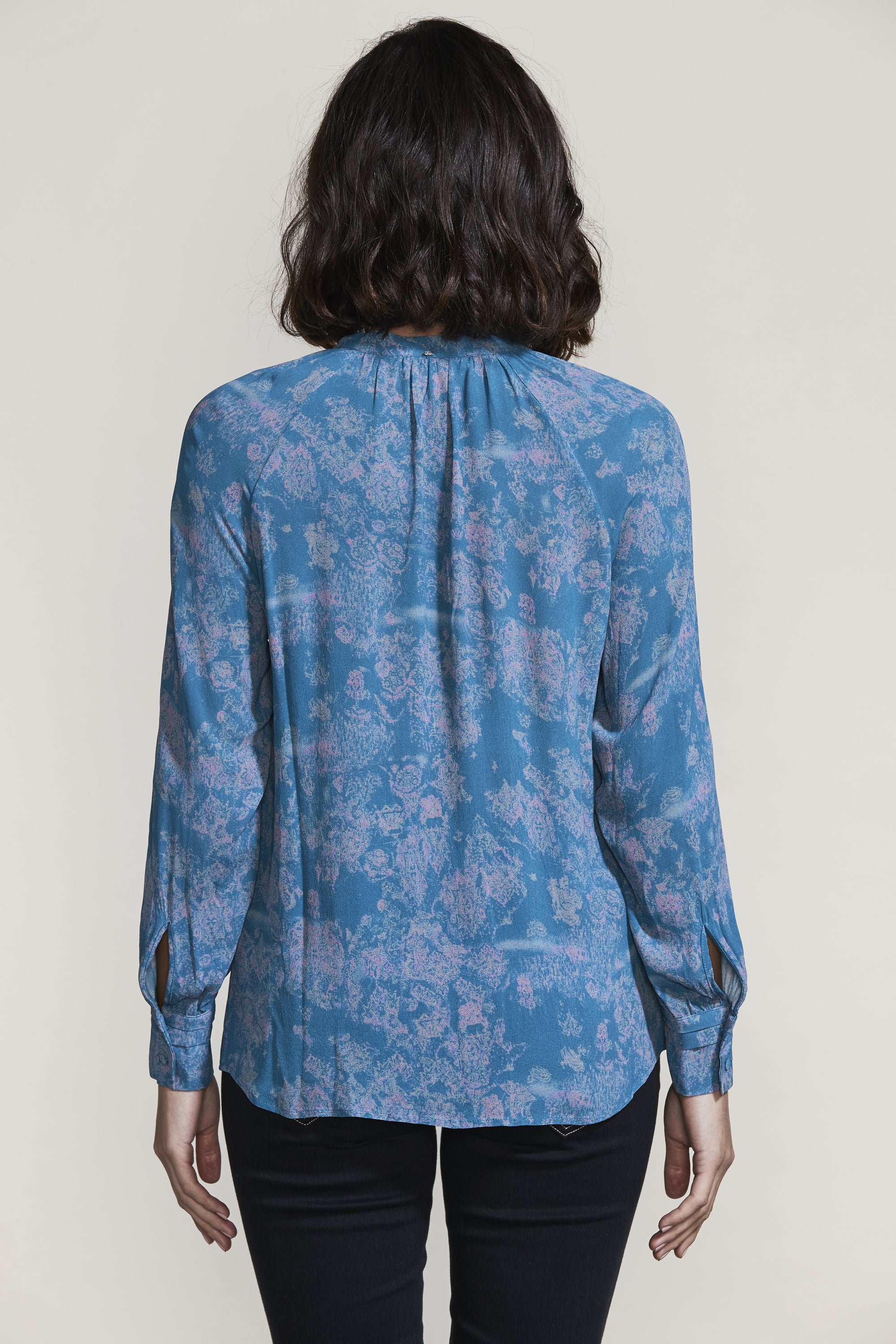 The gathering and tucks of the Easton Shirt compliment the ornate Easton Print beautifully. The French front placket and covered shank buttons create an elegant feel to this relaxed fit blouse.