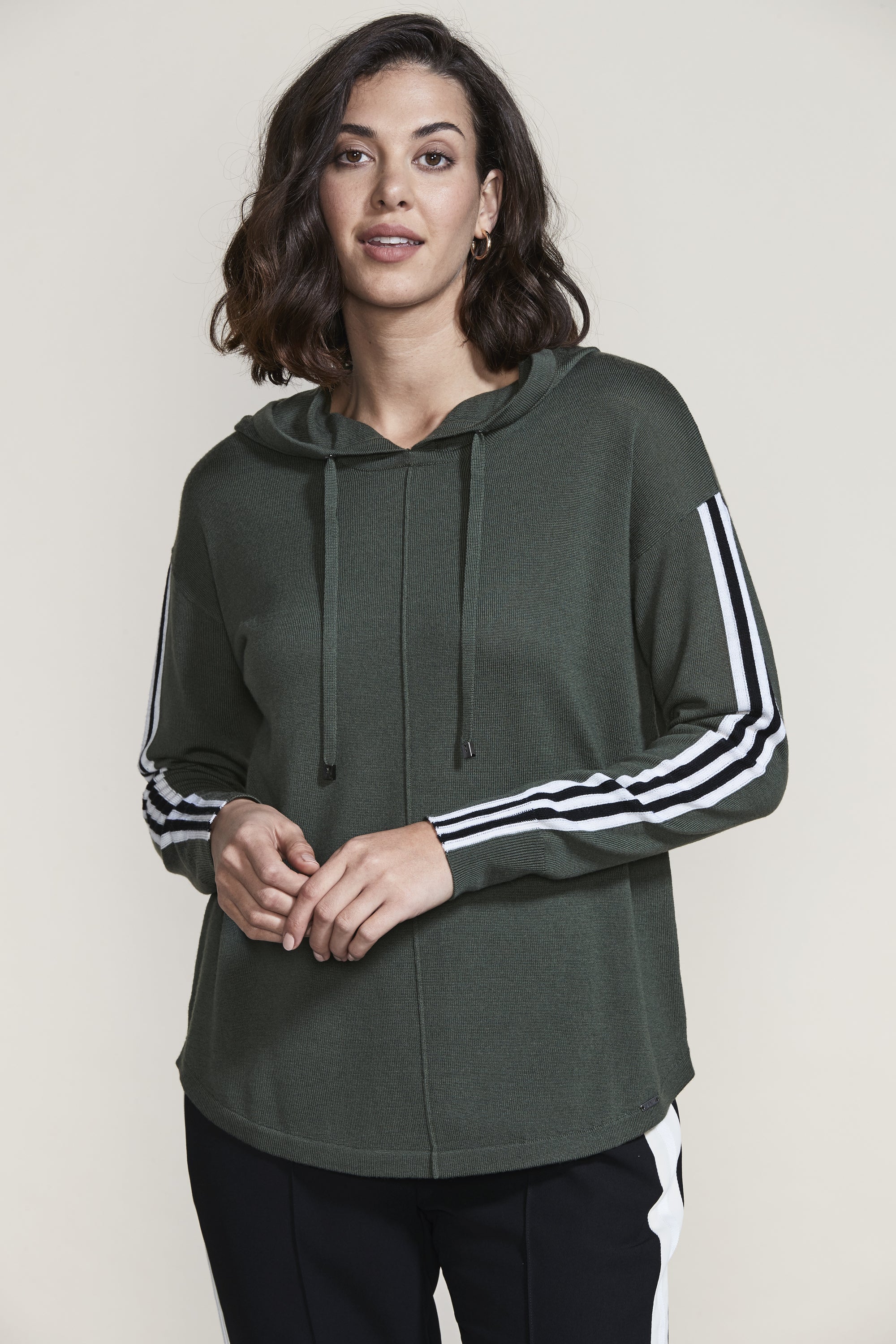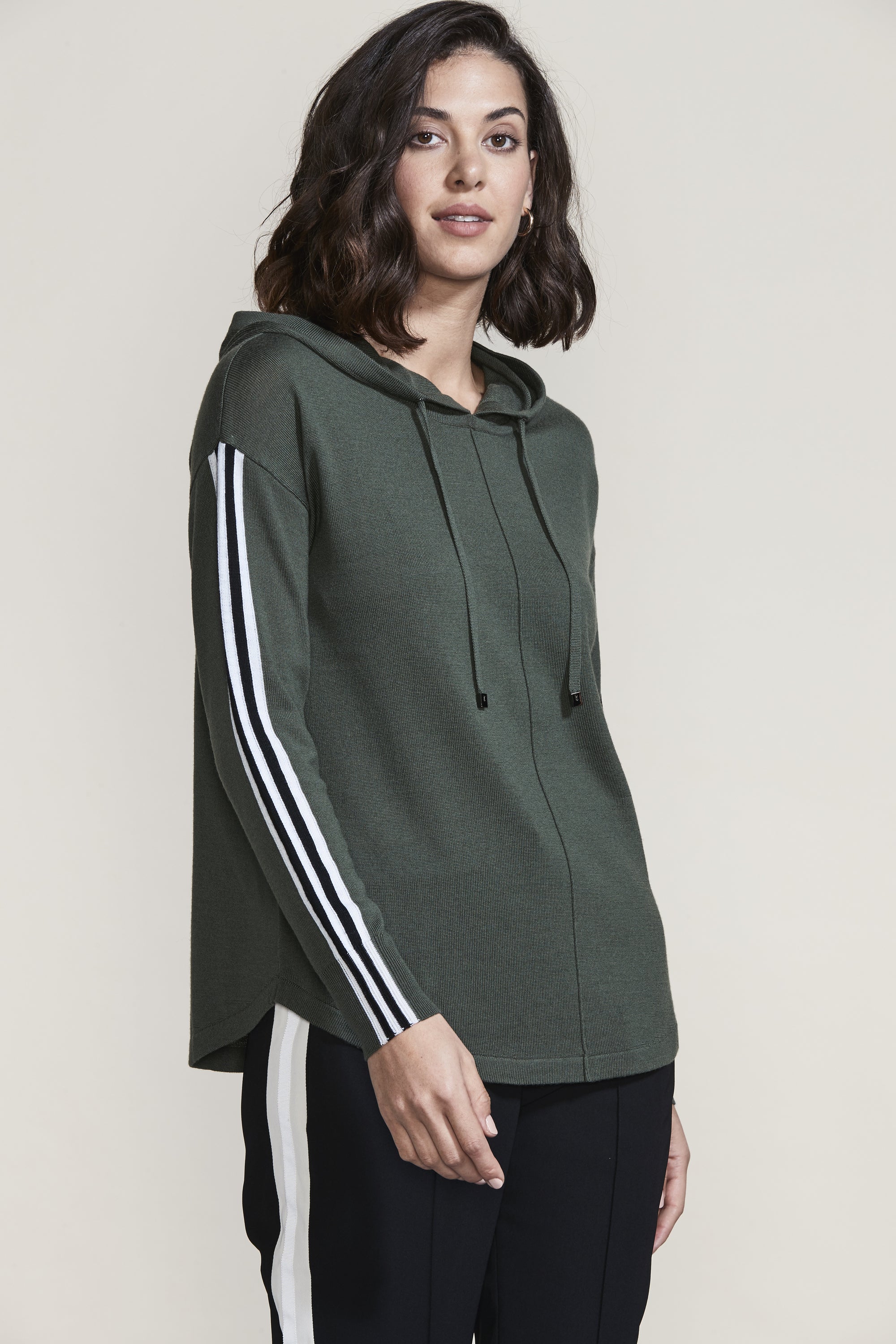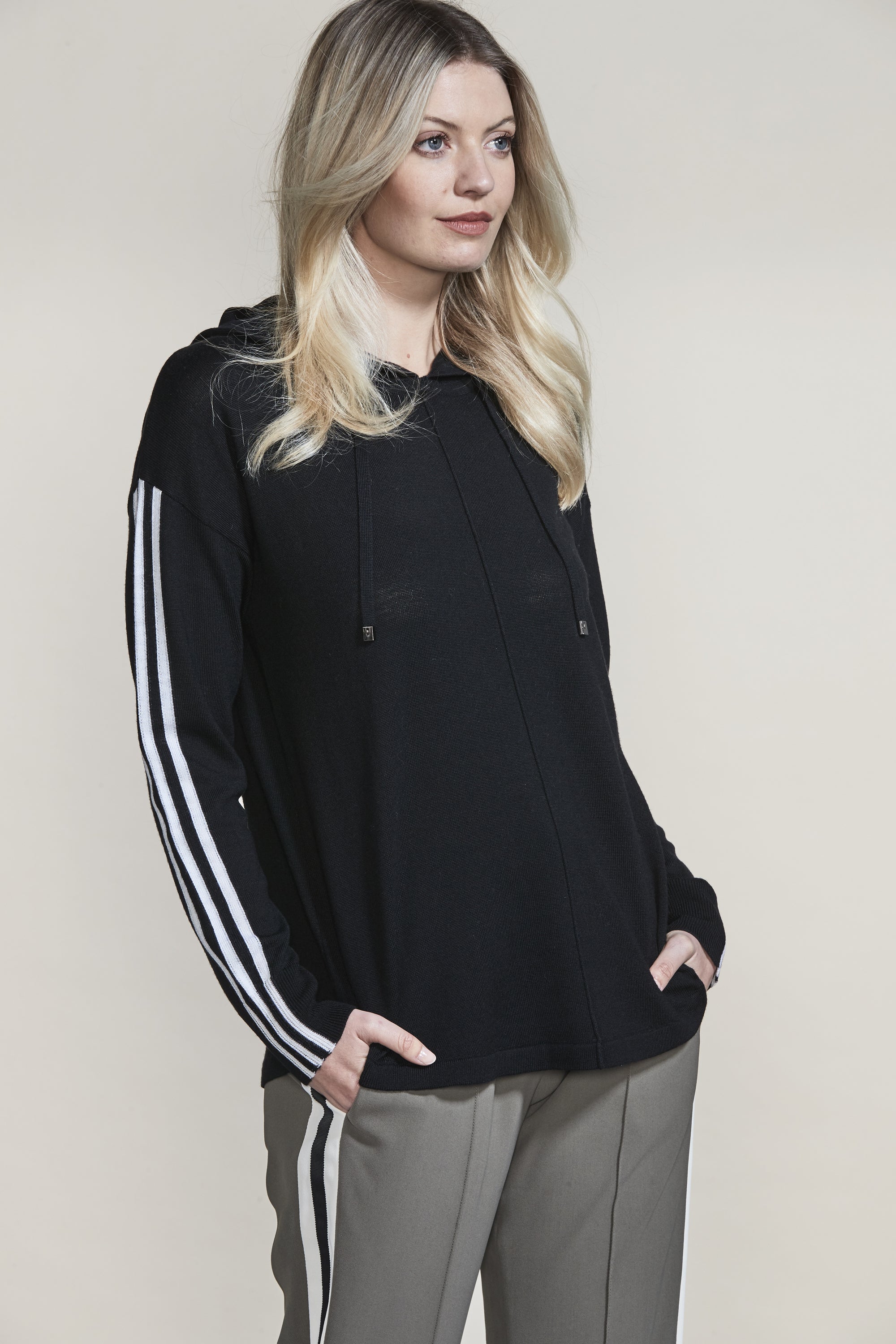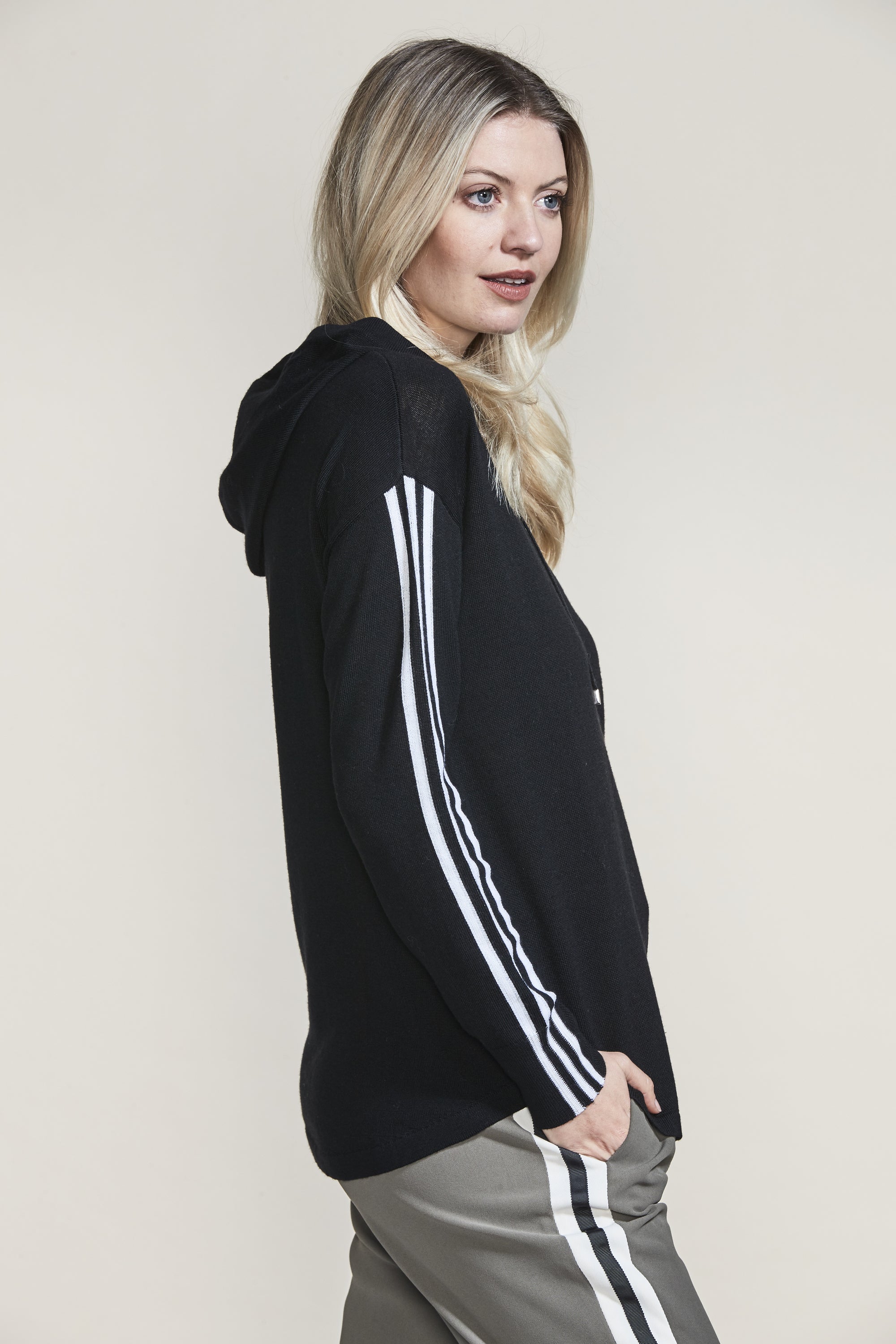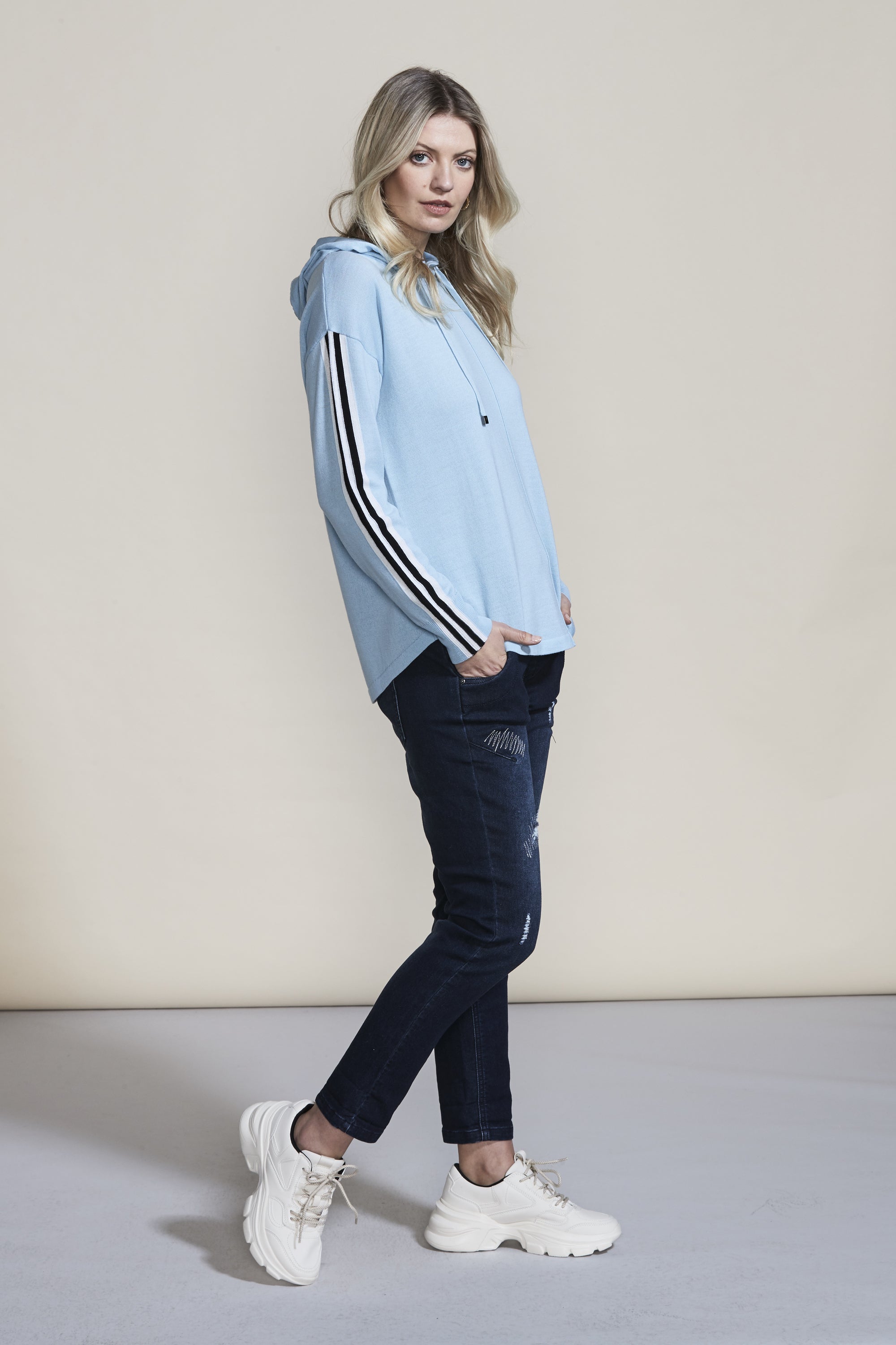 Cosy up this winter in the Fraser Hoodie. The raised panel seams and knitted stripe tape at the overarm add a modern twist to this classic Lania shape. Wear with our Buzz Boyfriend Jean for a cool casual look.