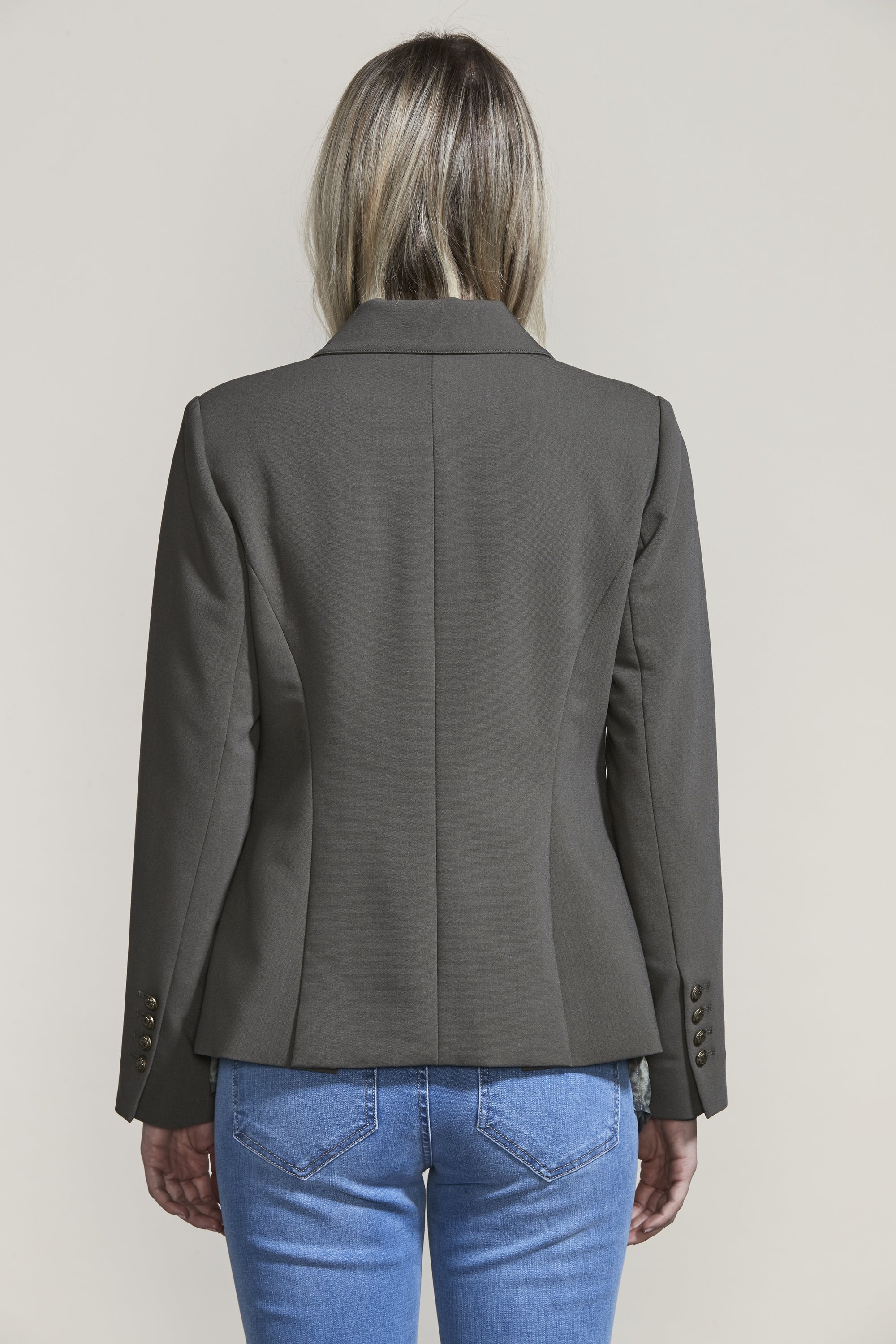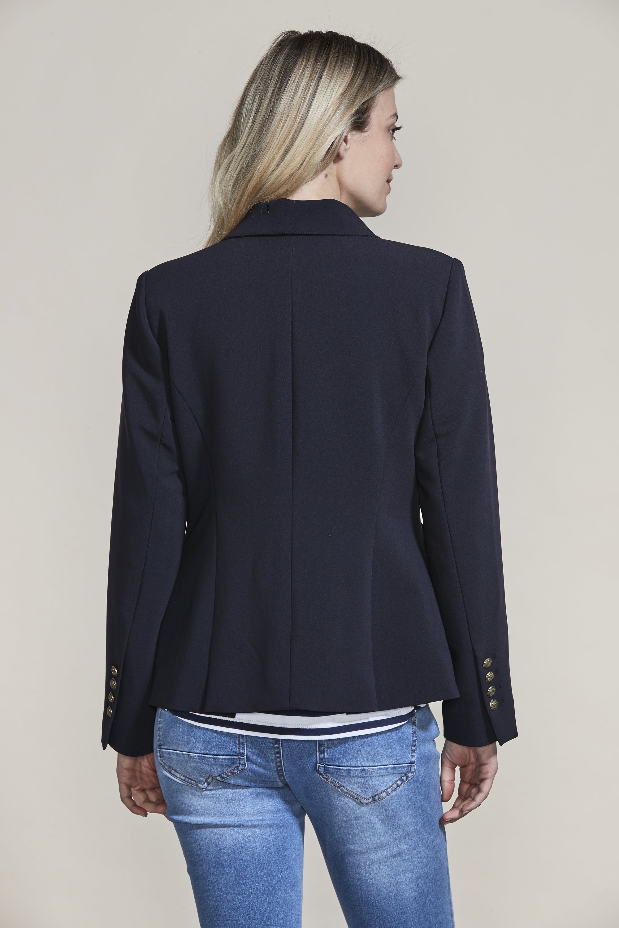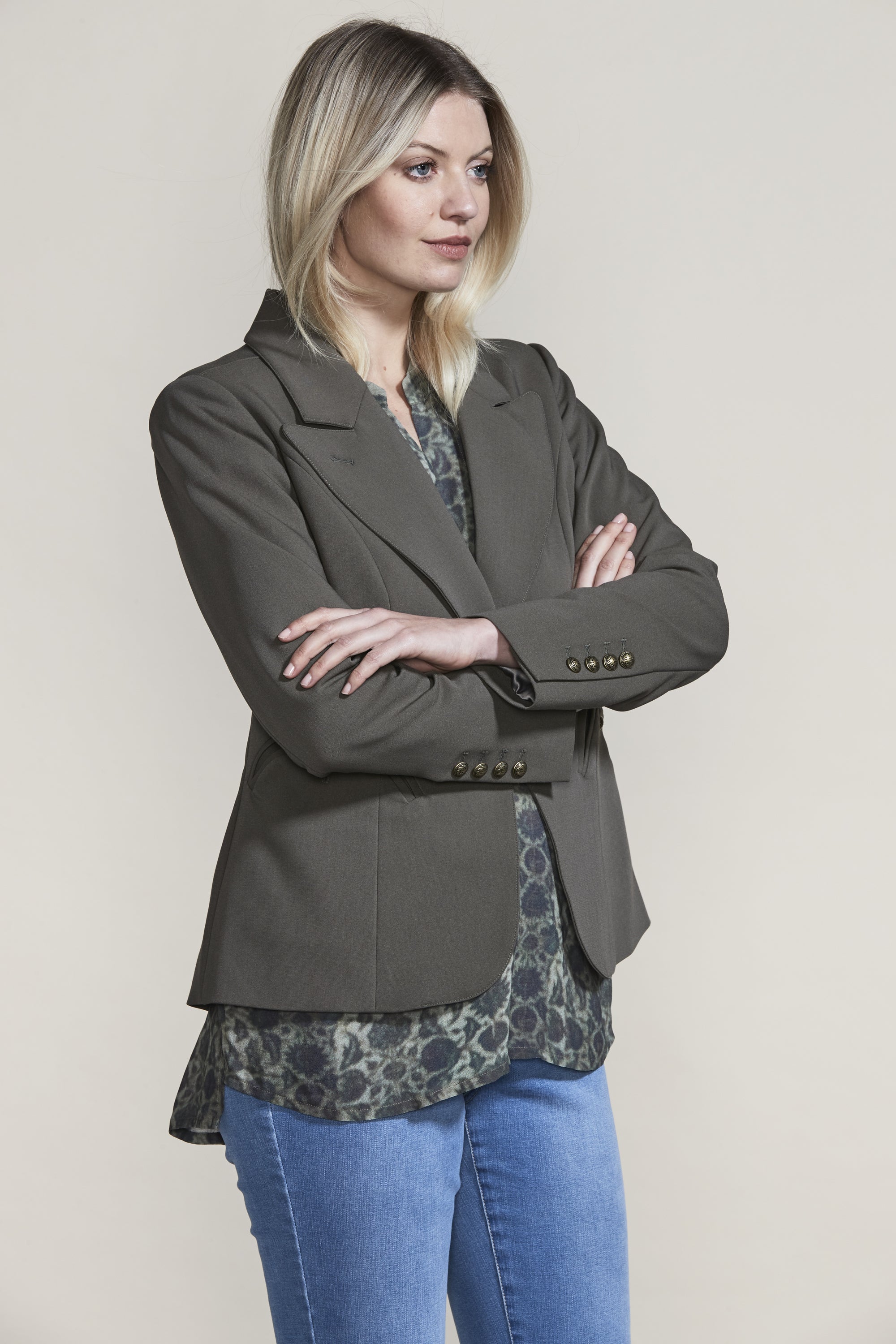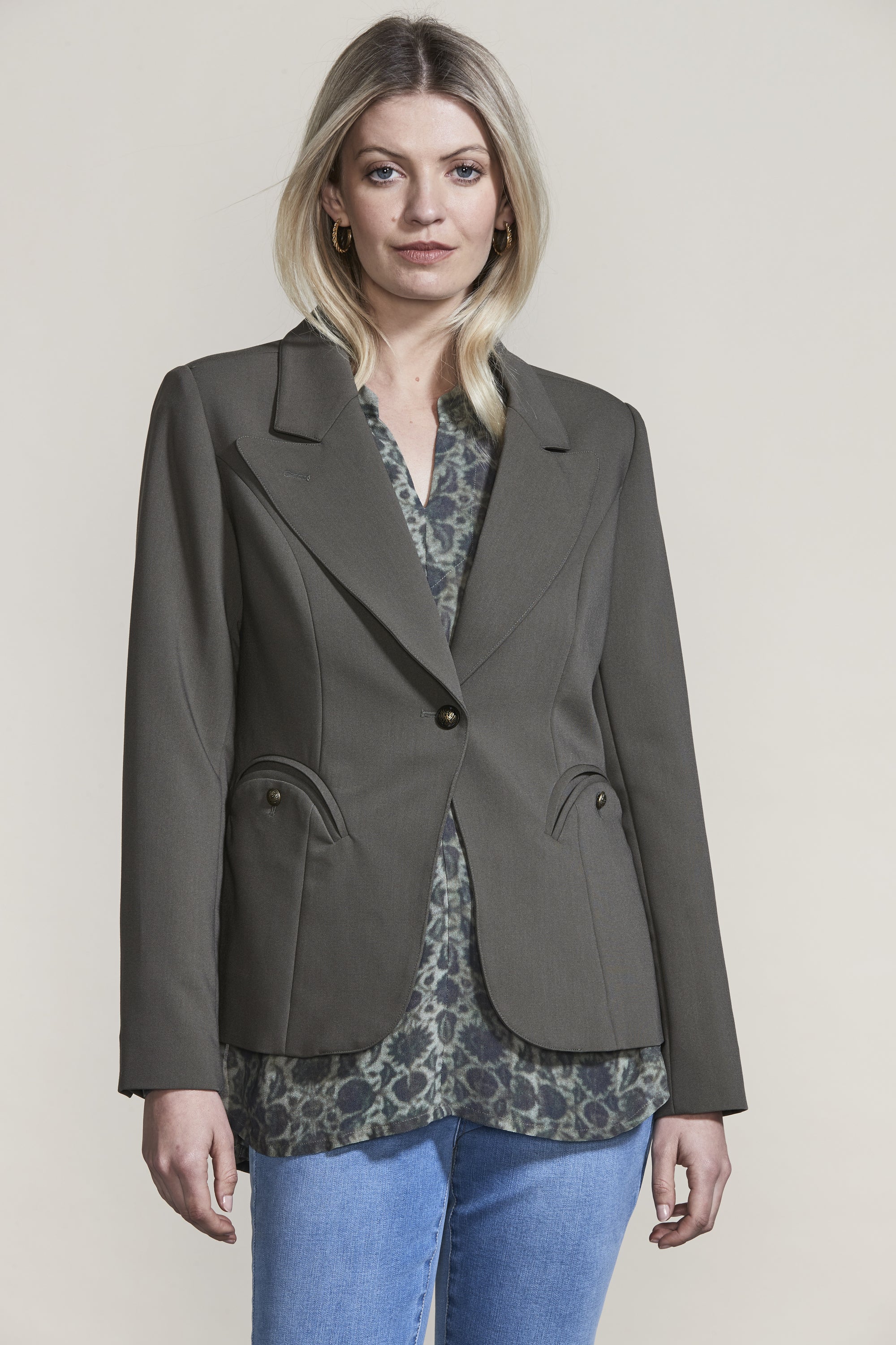 A classic slim fit blazer with a twist — designed with a wide peak lapel, cuff placket and decorative curved jetted pockets. Engraved shank buttons add a sense of luxury to this style.