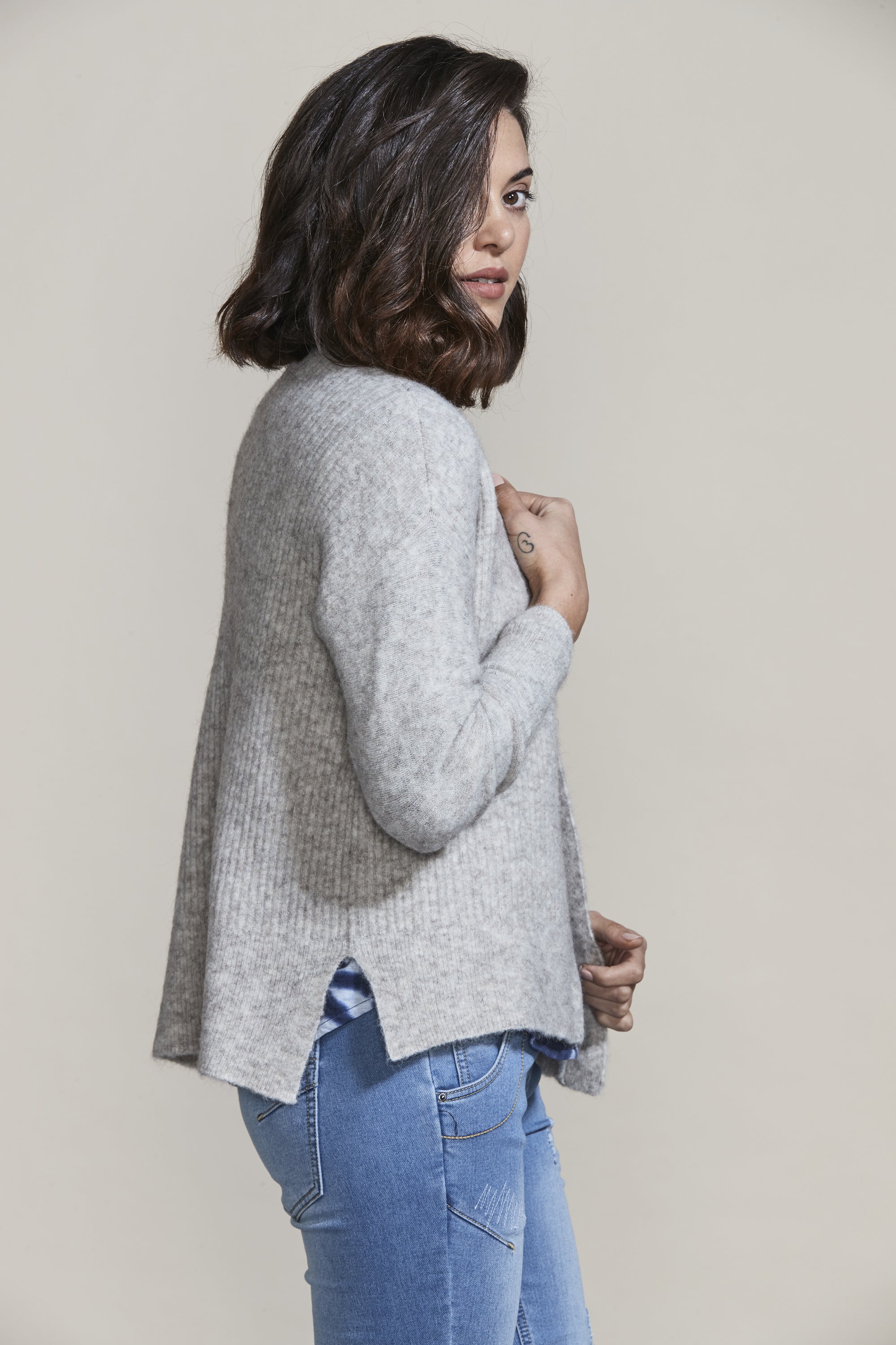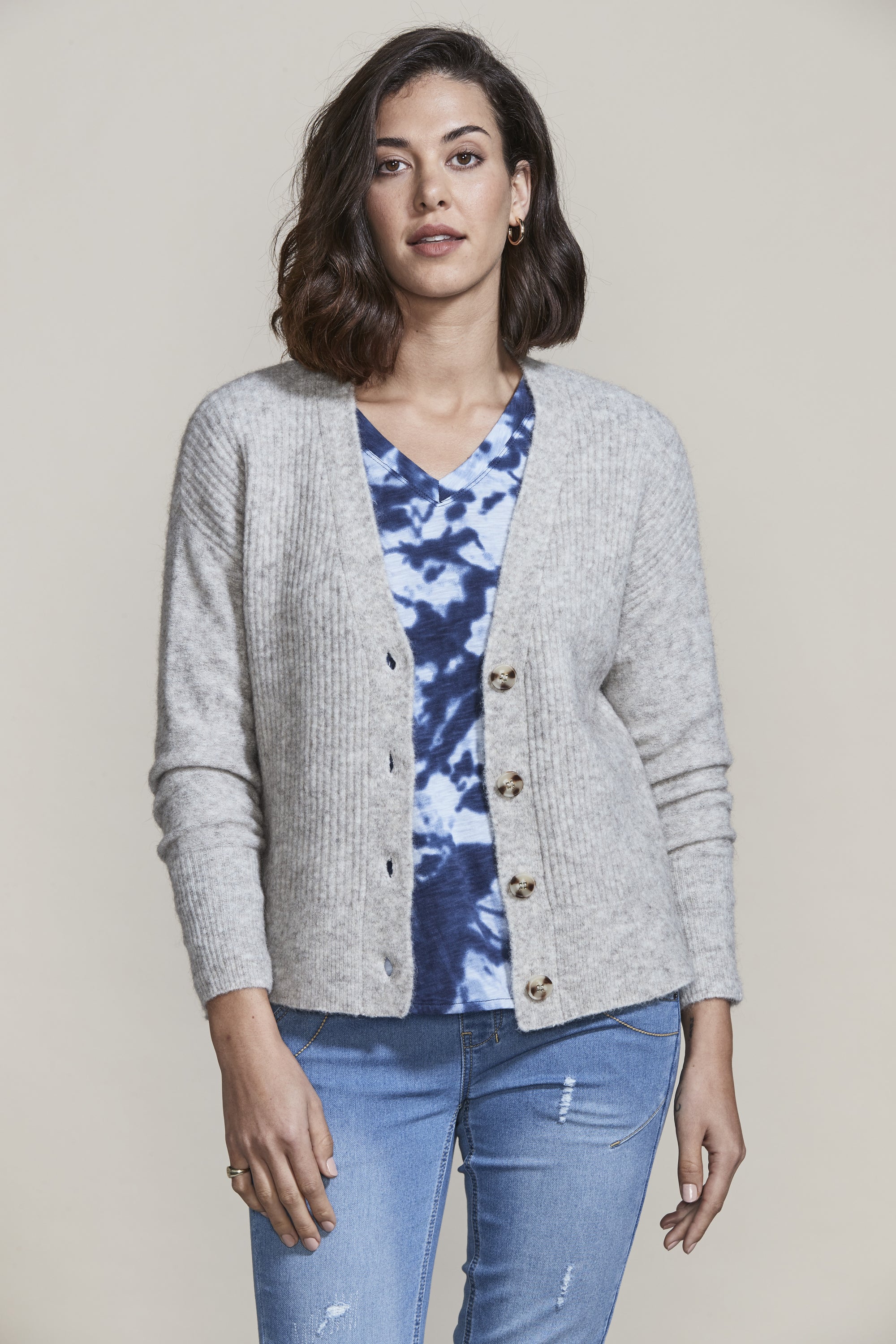 This wool blend rib knit cardi makes a perfect layering piece for colder days, elevated by statement buttons and side splits. Wear over our Easton Dress for an elegantly warm winter look.