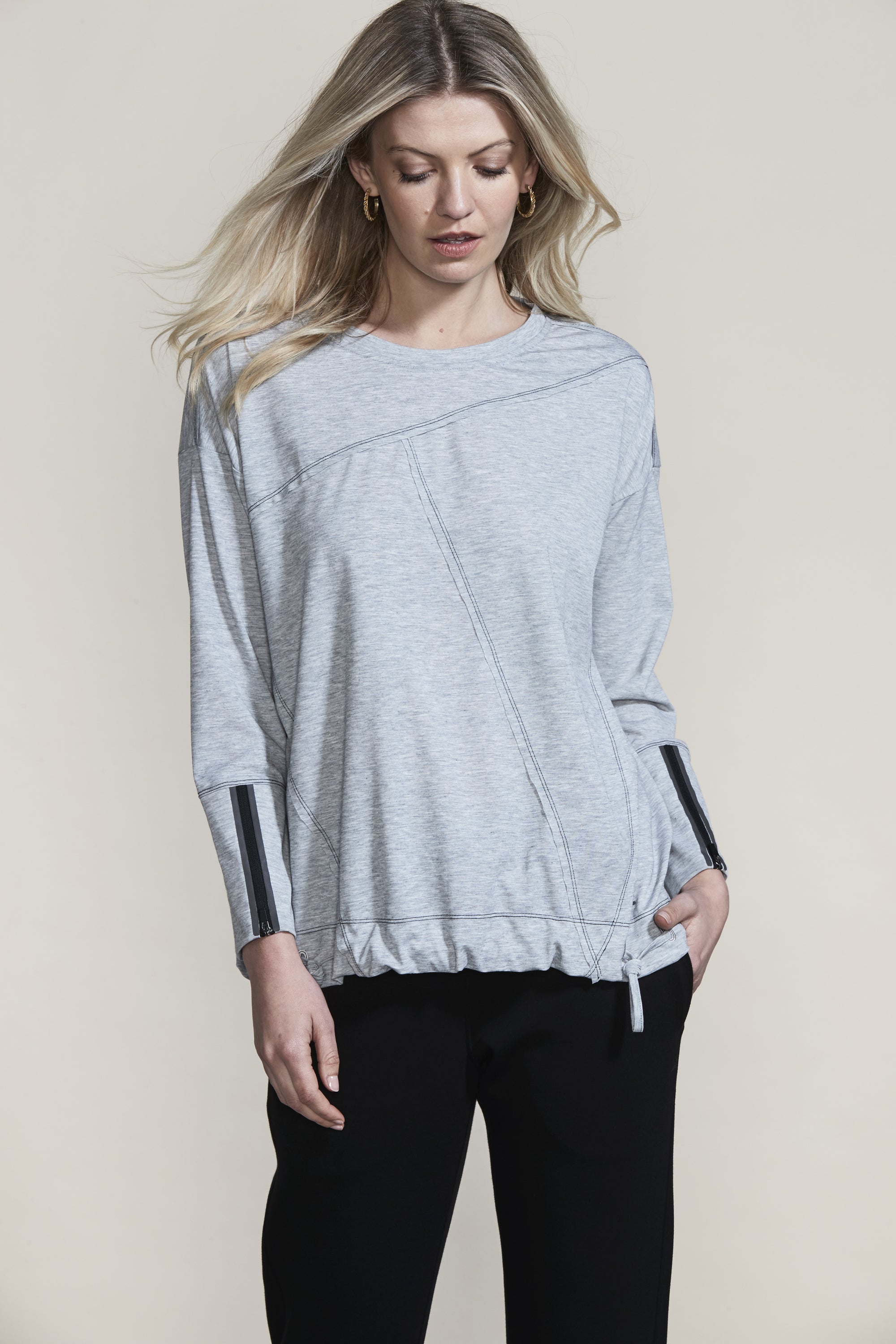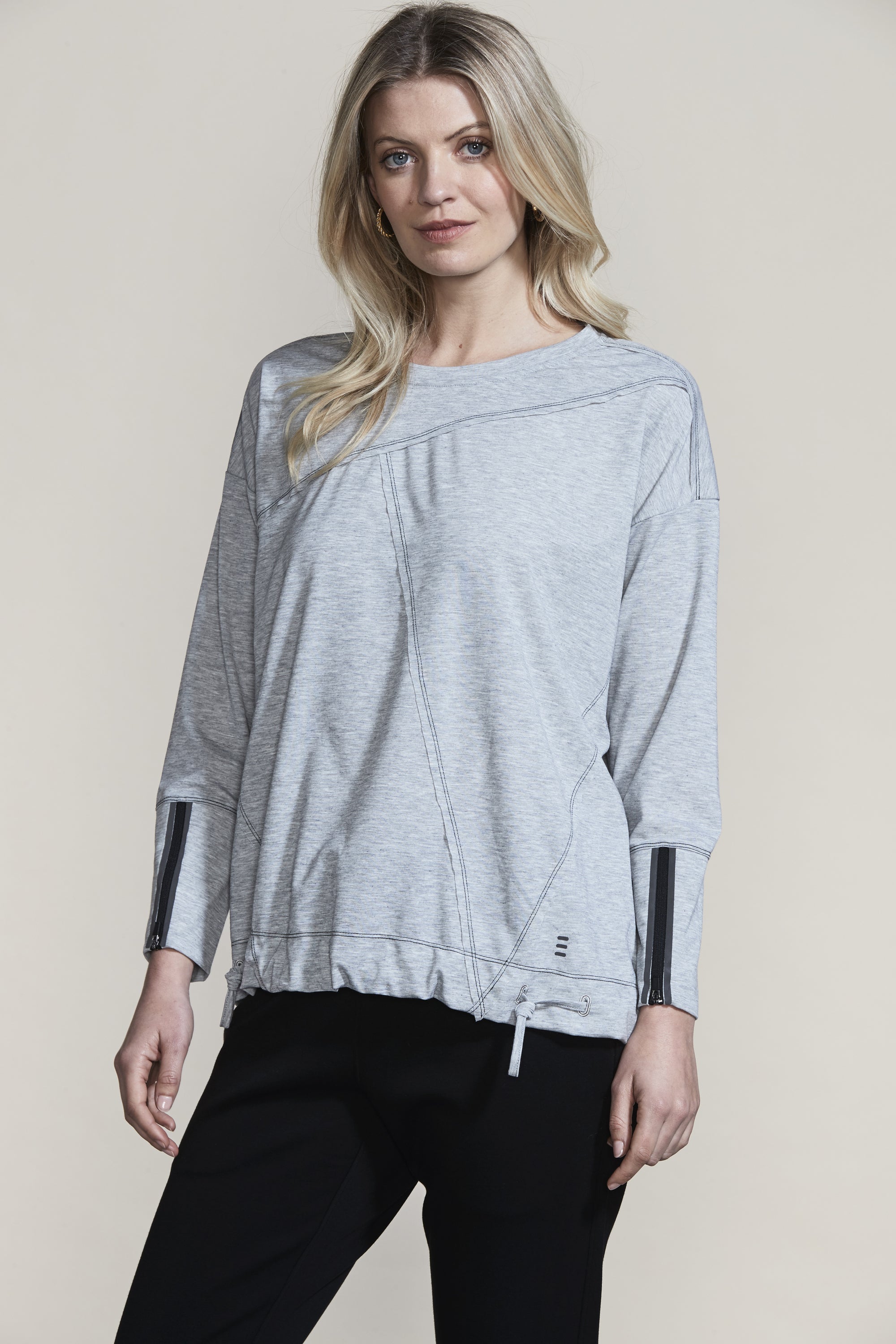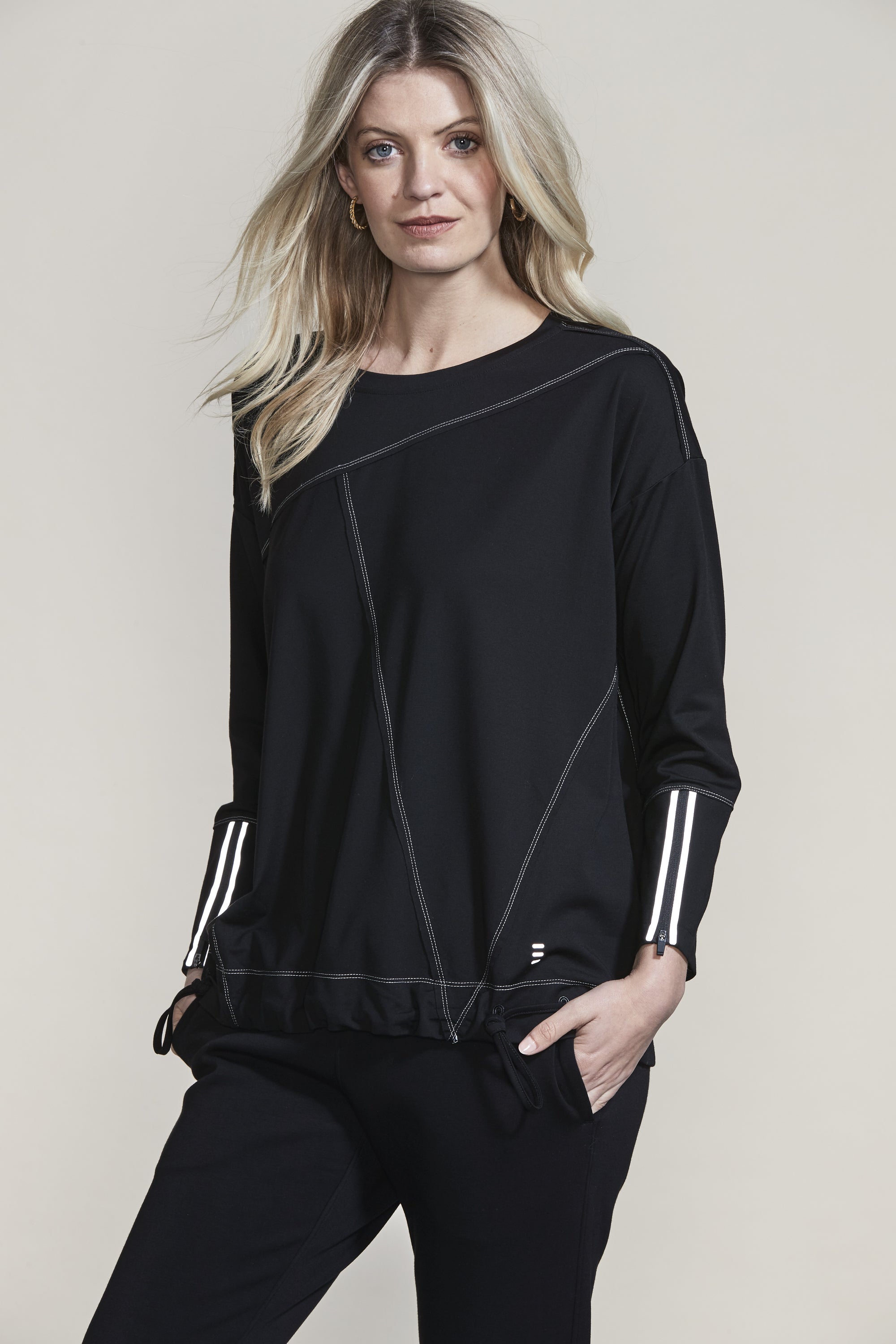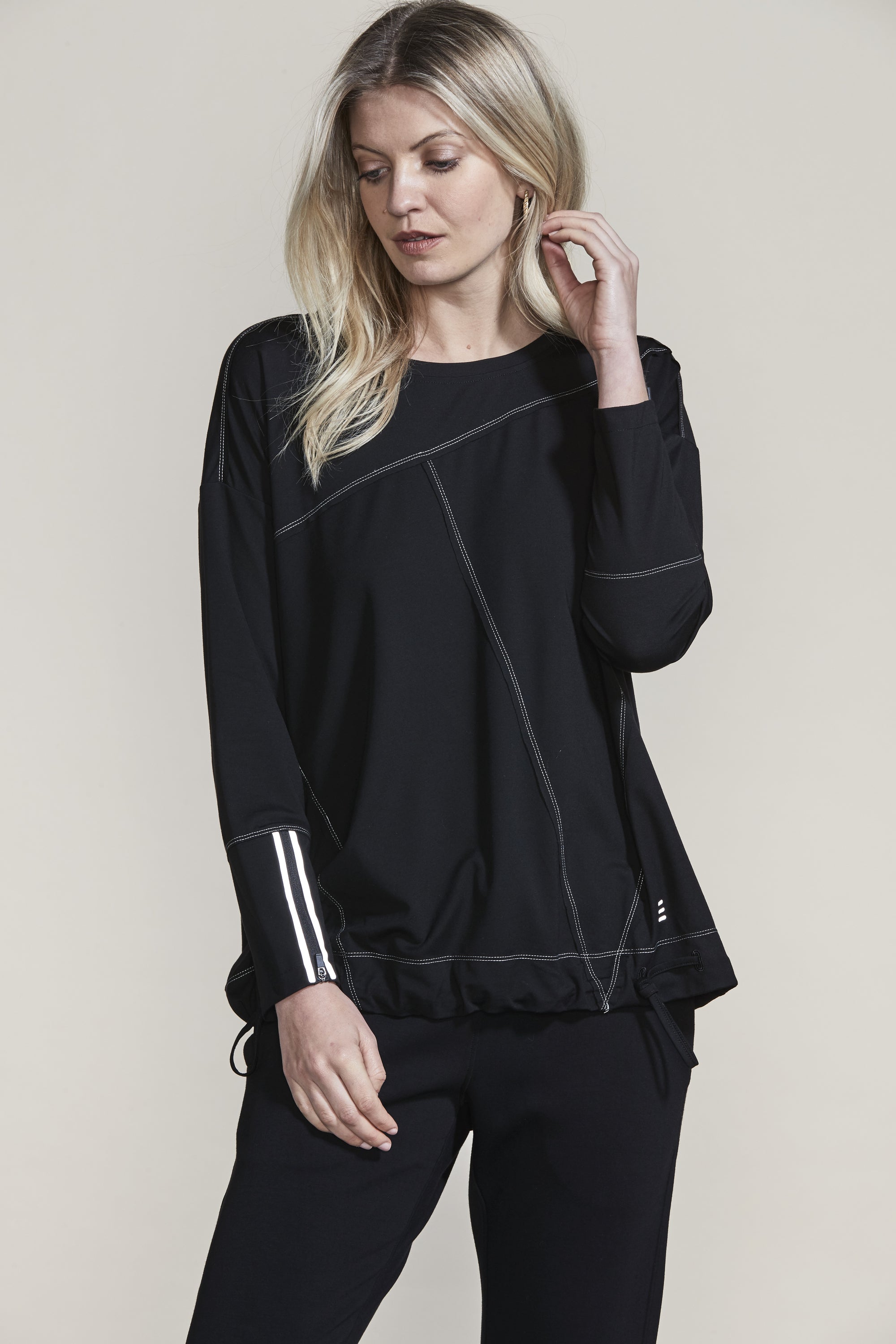 Add some sports chic to your look with this sleek long-sleeve jersey. The asymmetric style lines are finished with raw edges and contrast topstitching. Sporty details such as the drawcord hem with heat sealed tape complete the look.
