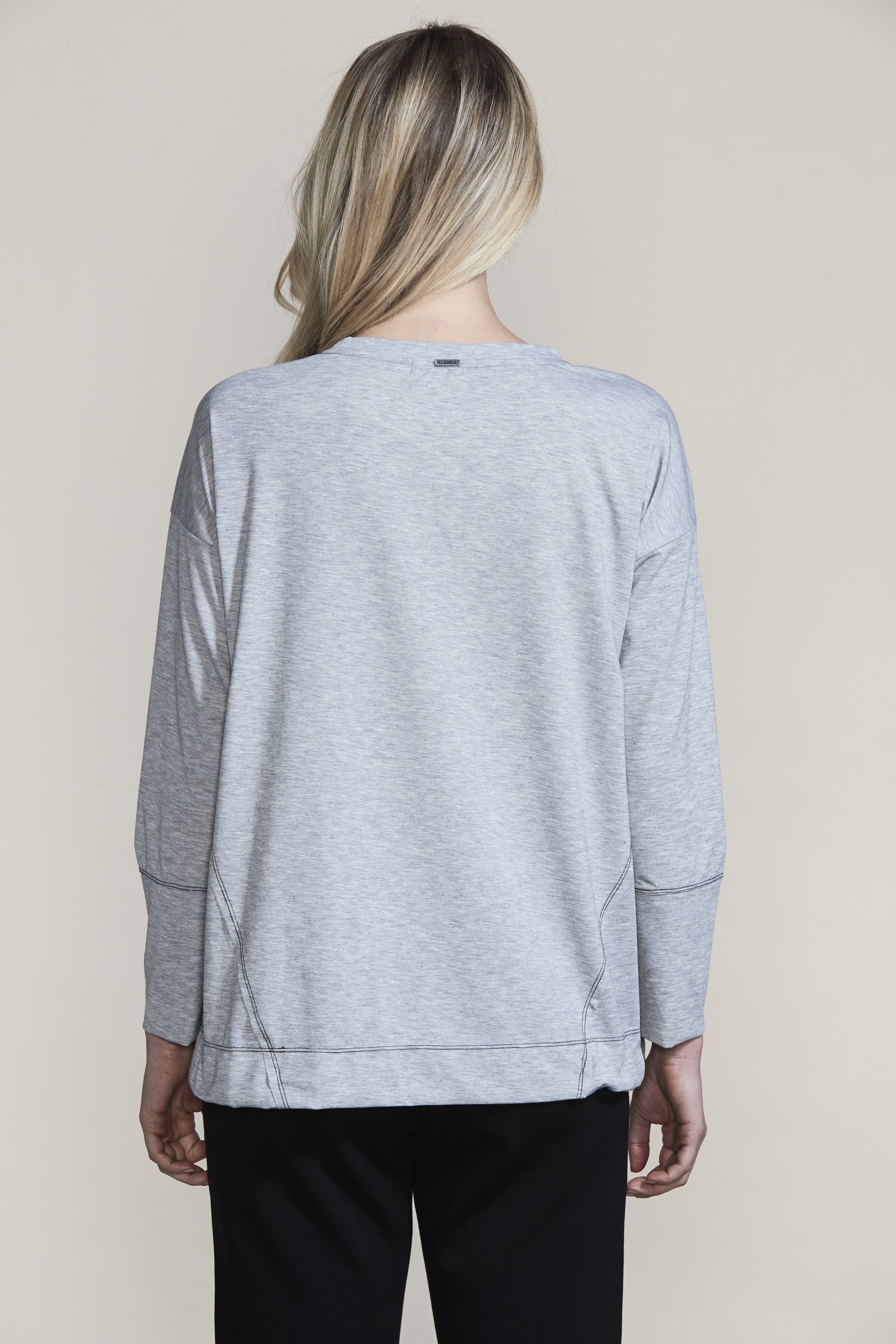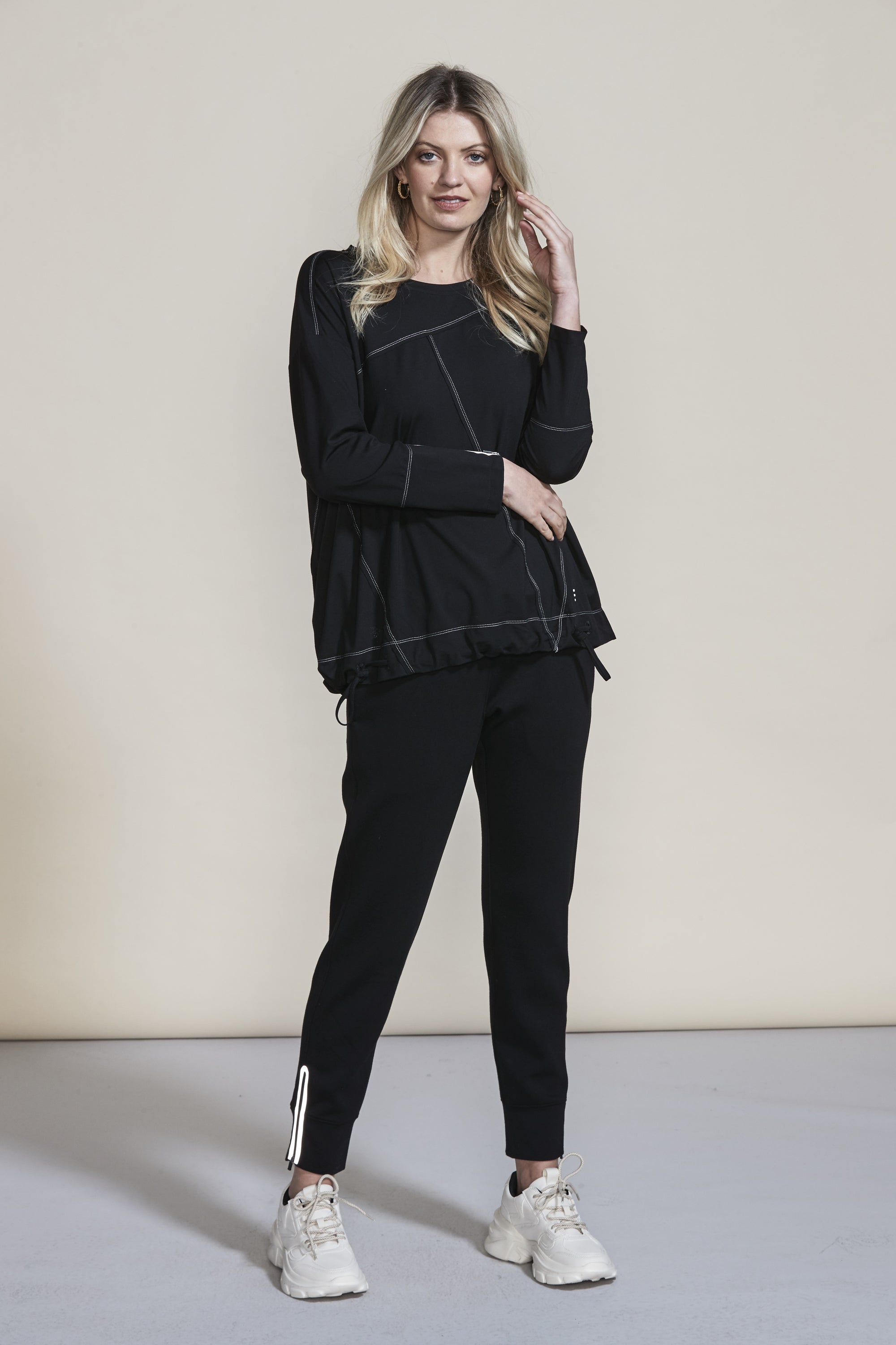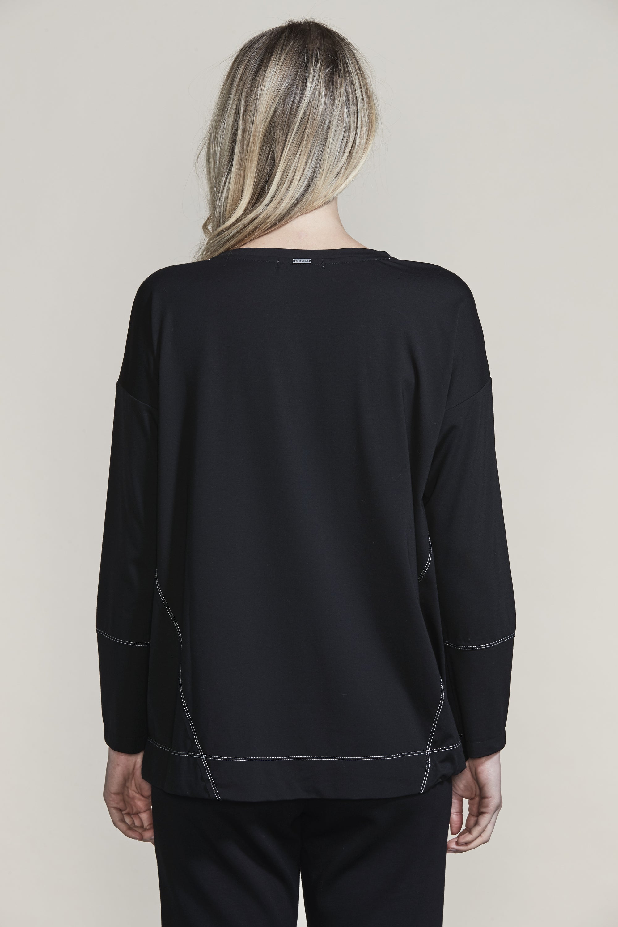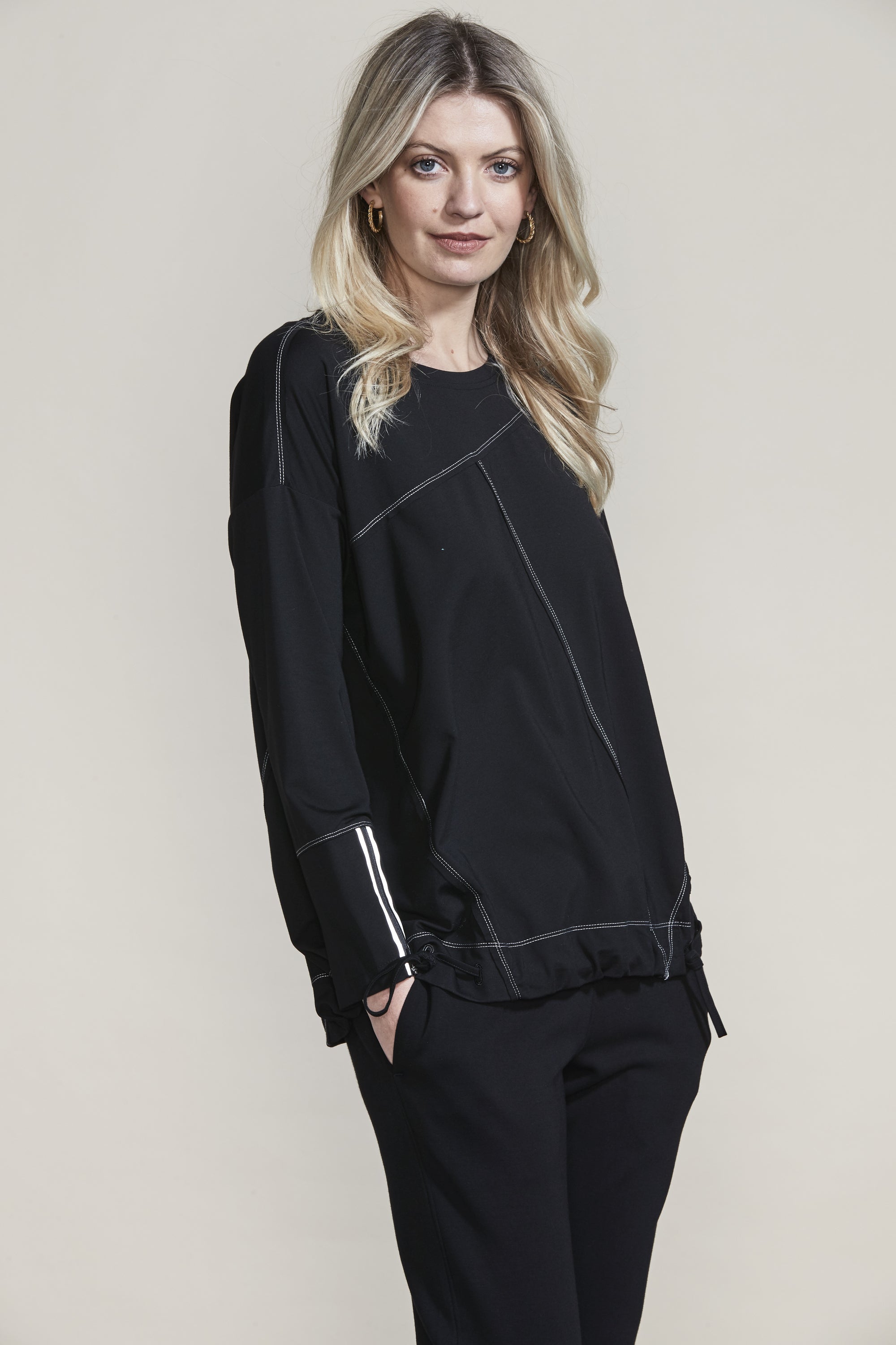 Add some sports chic to your look with this sleek long-sleeve jersey. The asymmetric style lines are finished with raw edges and contrast topstitching. Sporty details such as the drawcord hem with heat sealed tape complete the look.