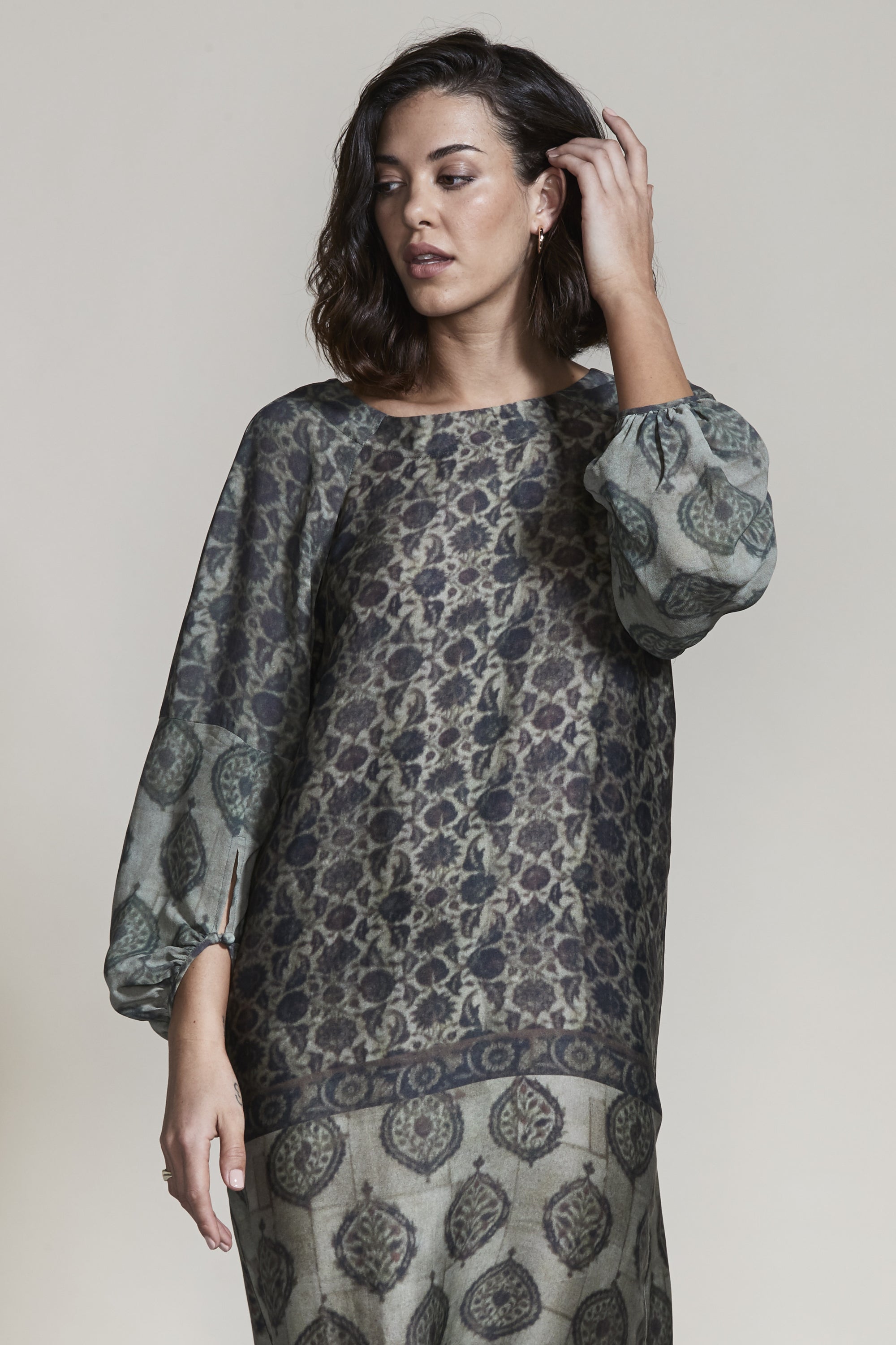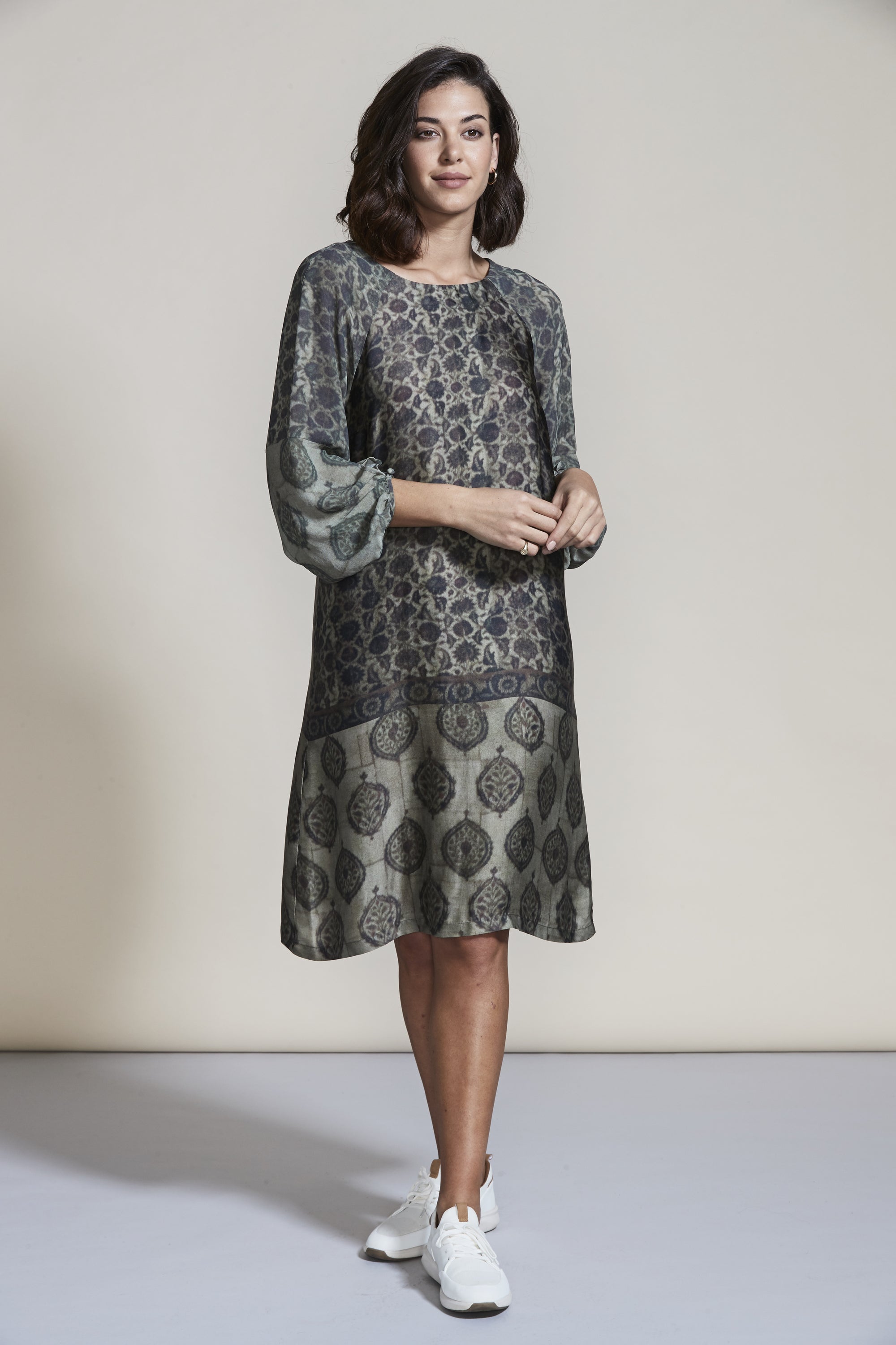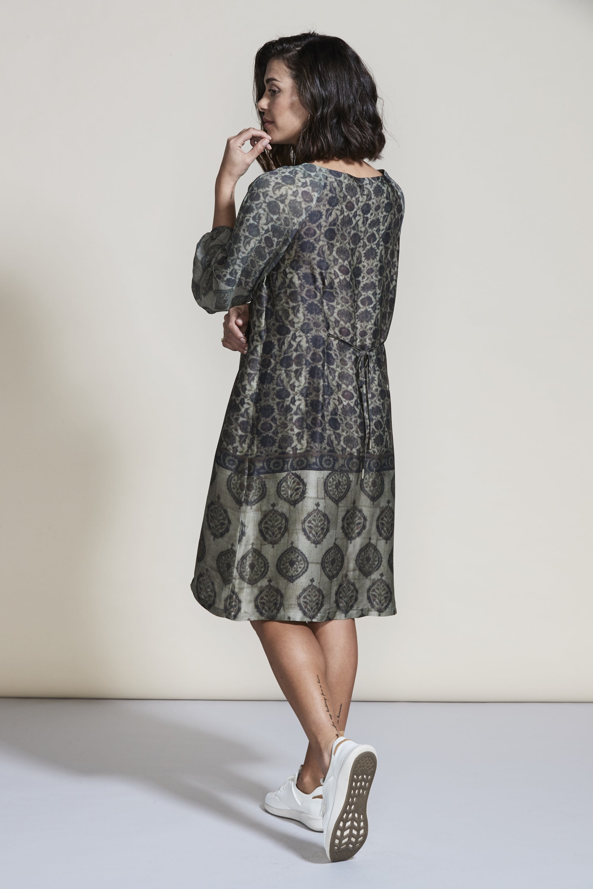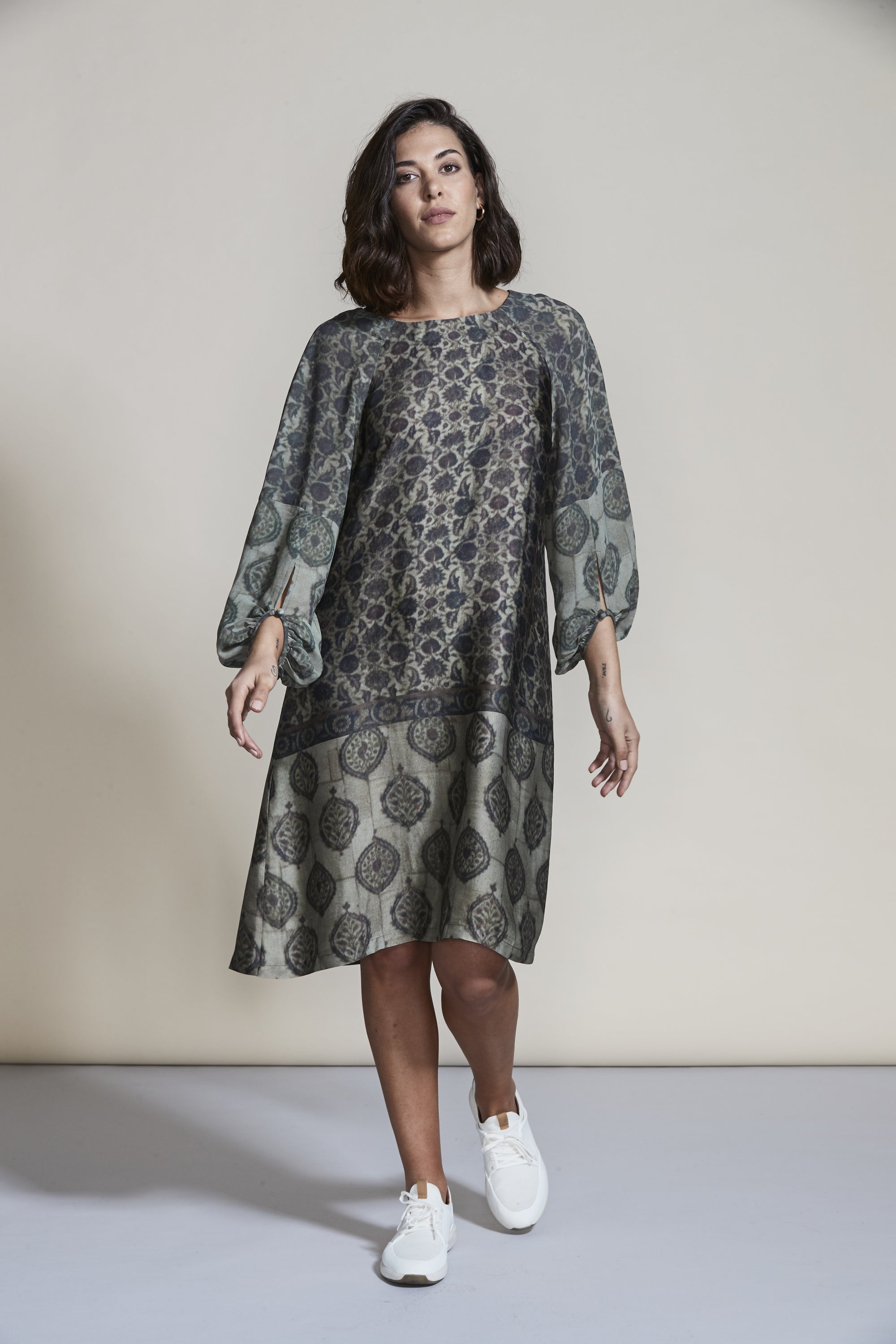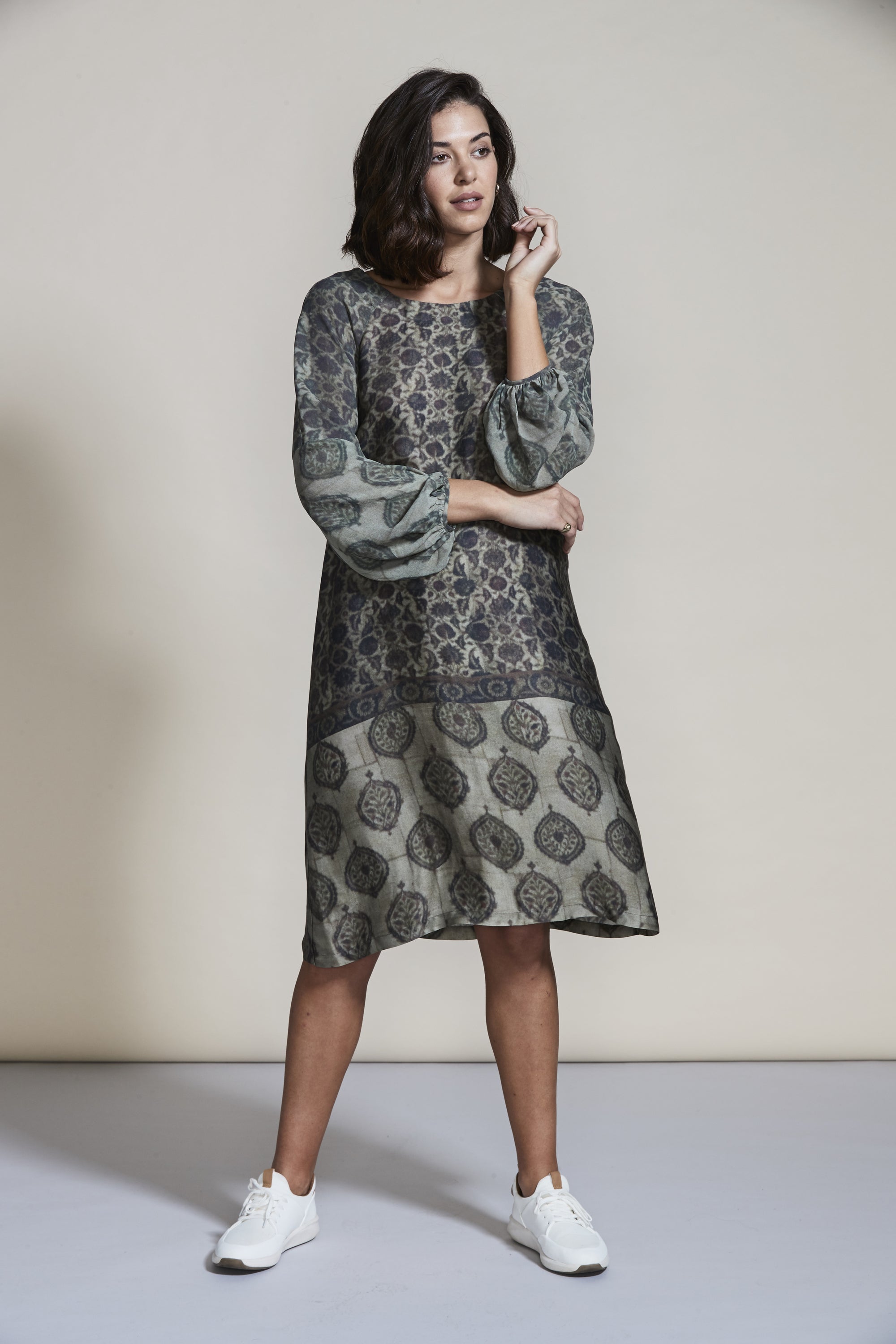 Our A-line Scandal Dress will be an effortlessly chic addition to your wardrobe. Designed with a billowing raglan sleeve in lightweight georgette, a flattering boat neck and back waist tie.