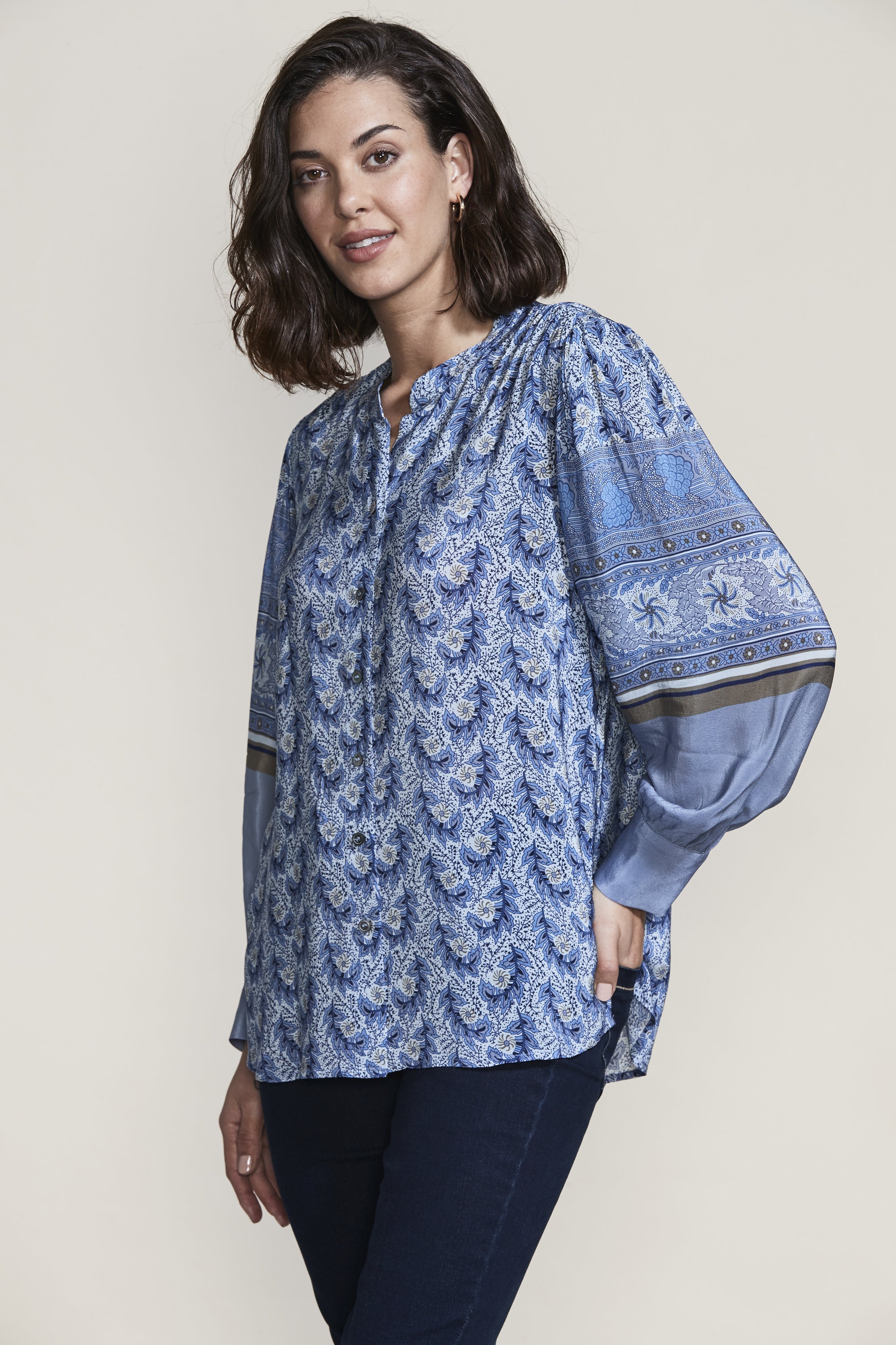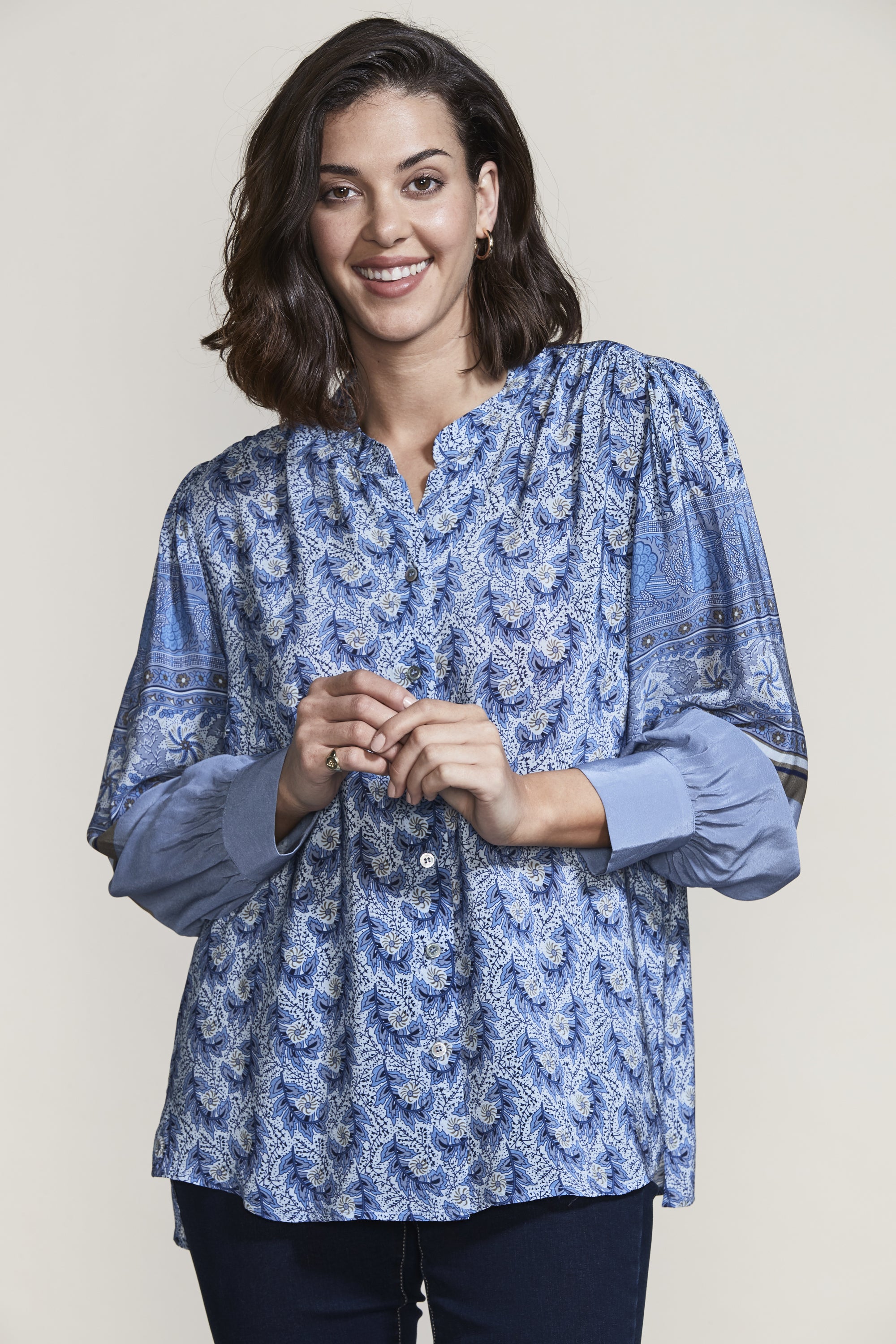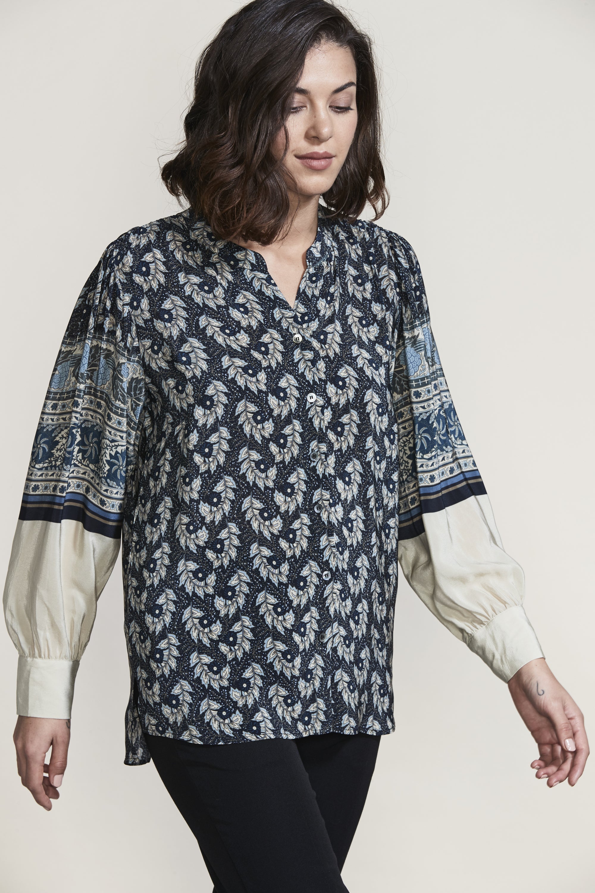The Vintage Print is an intricate design inspired by winter botanicals. It lends itself perfectly to the medley of gathers and ruching in the Vintage Shirt. Pearl buttons and a border print through the sleeve add a sophisticated elegance to the style.