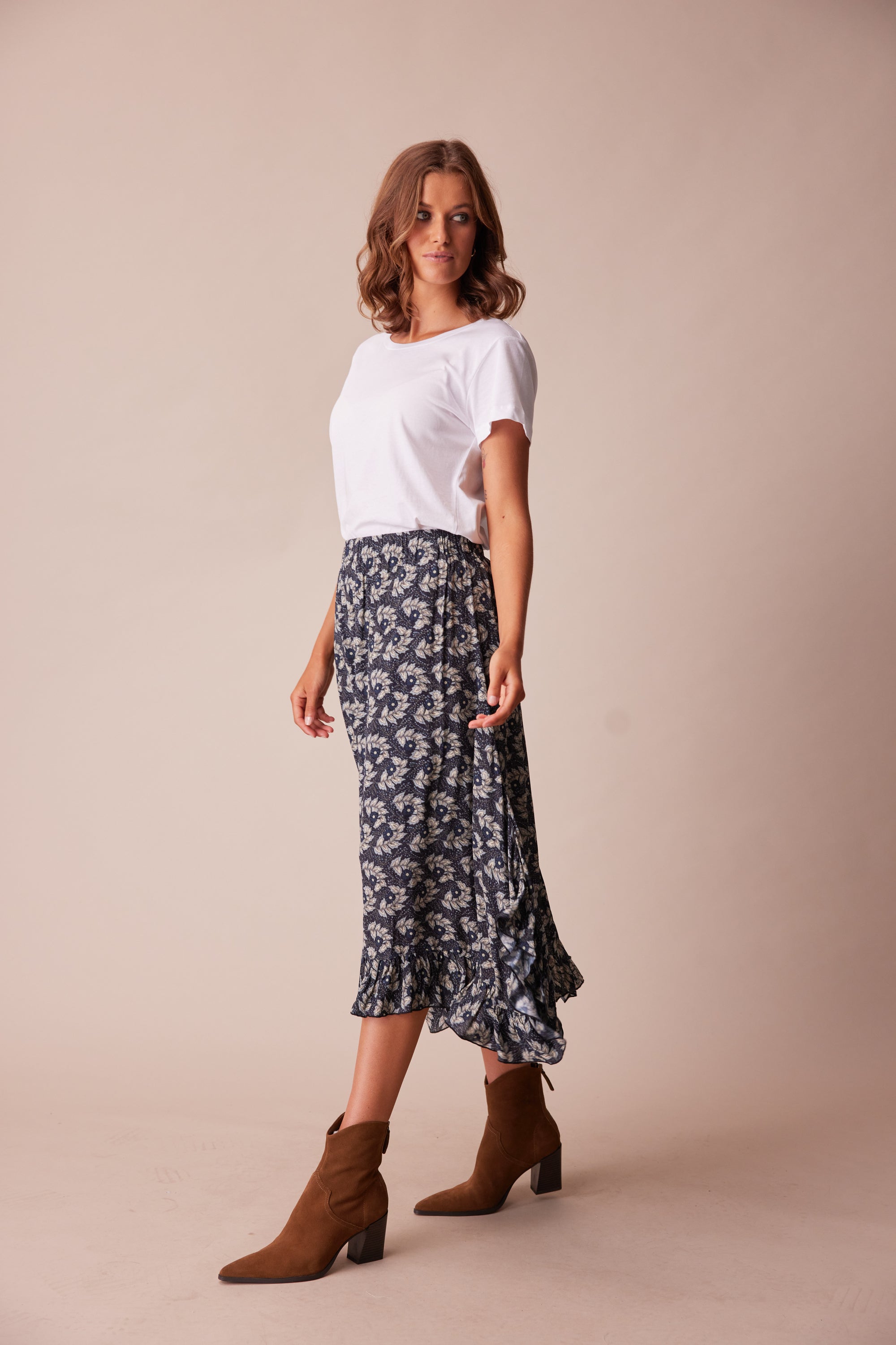 The Vintage Print is an intricate design inspired by winter botanicals. It lends itself perfectly to the voluminous high-low hemline and hem frill of the Vintage Skirt. The elasticated waist ensures comfort meaning you can wear on repeat.