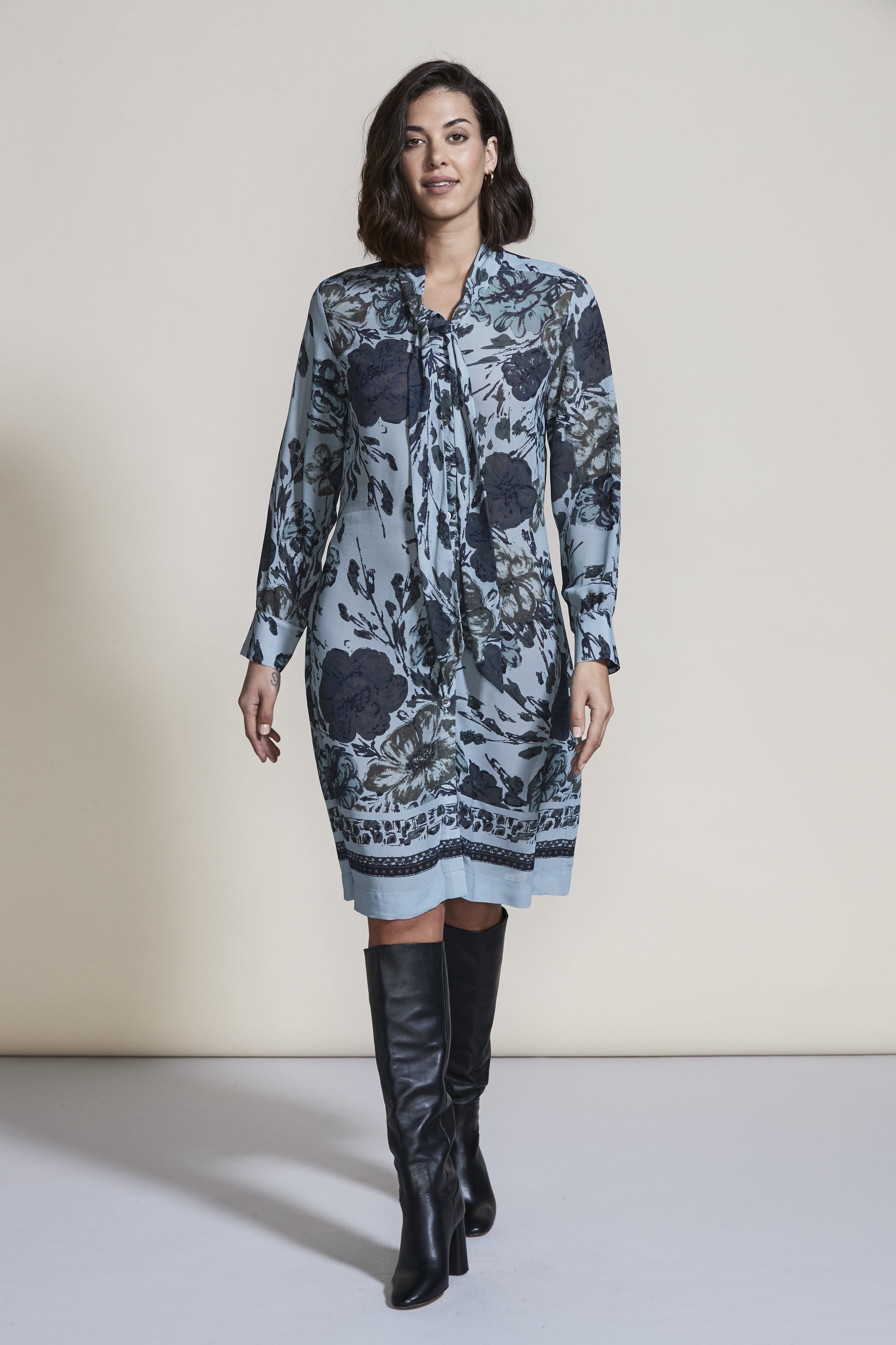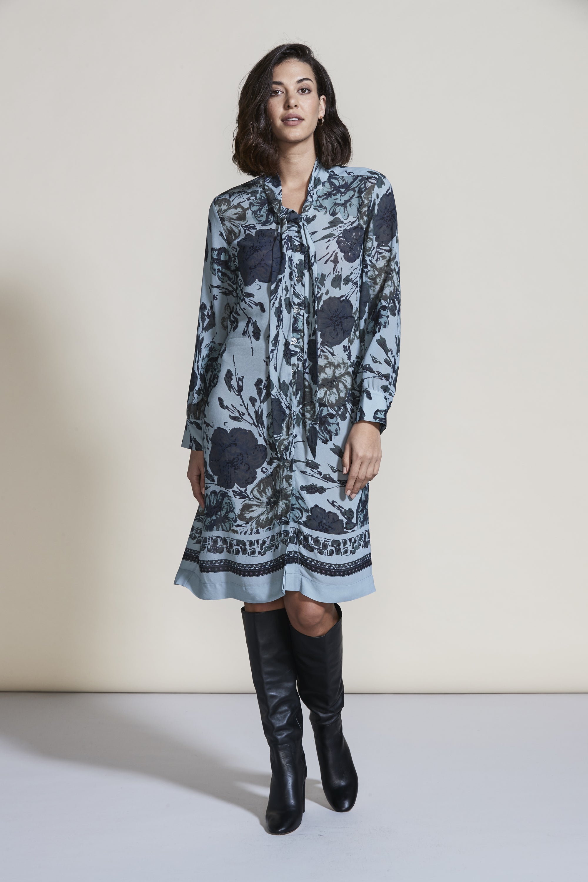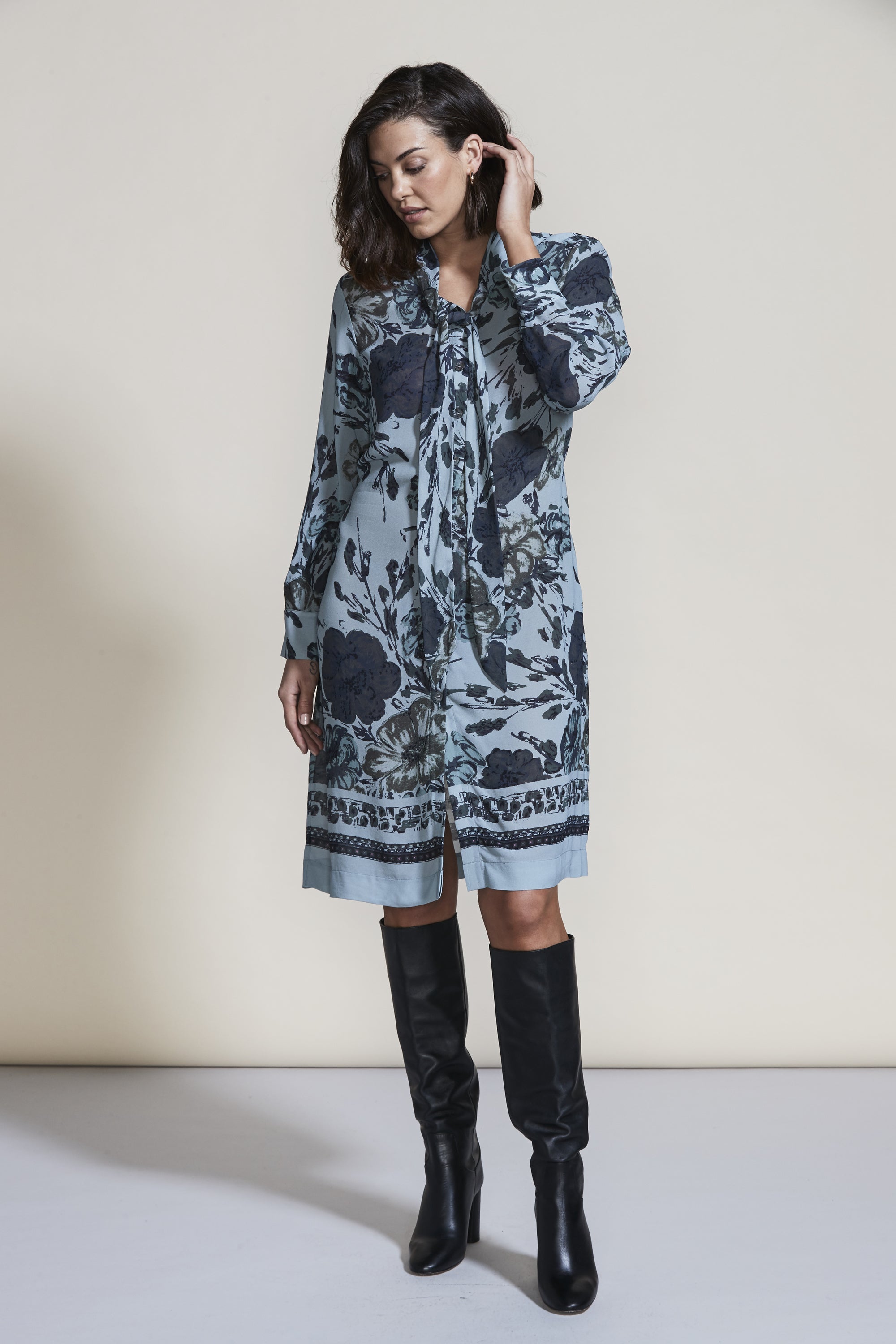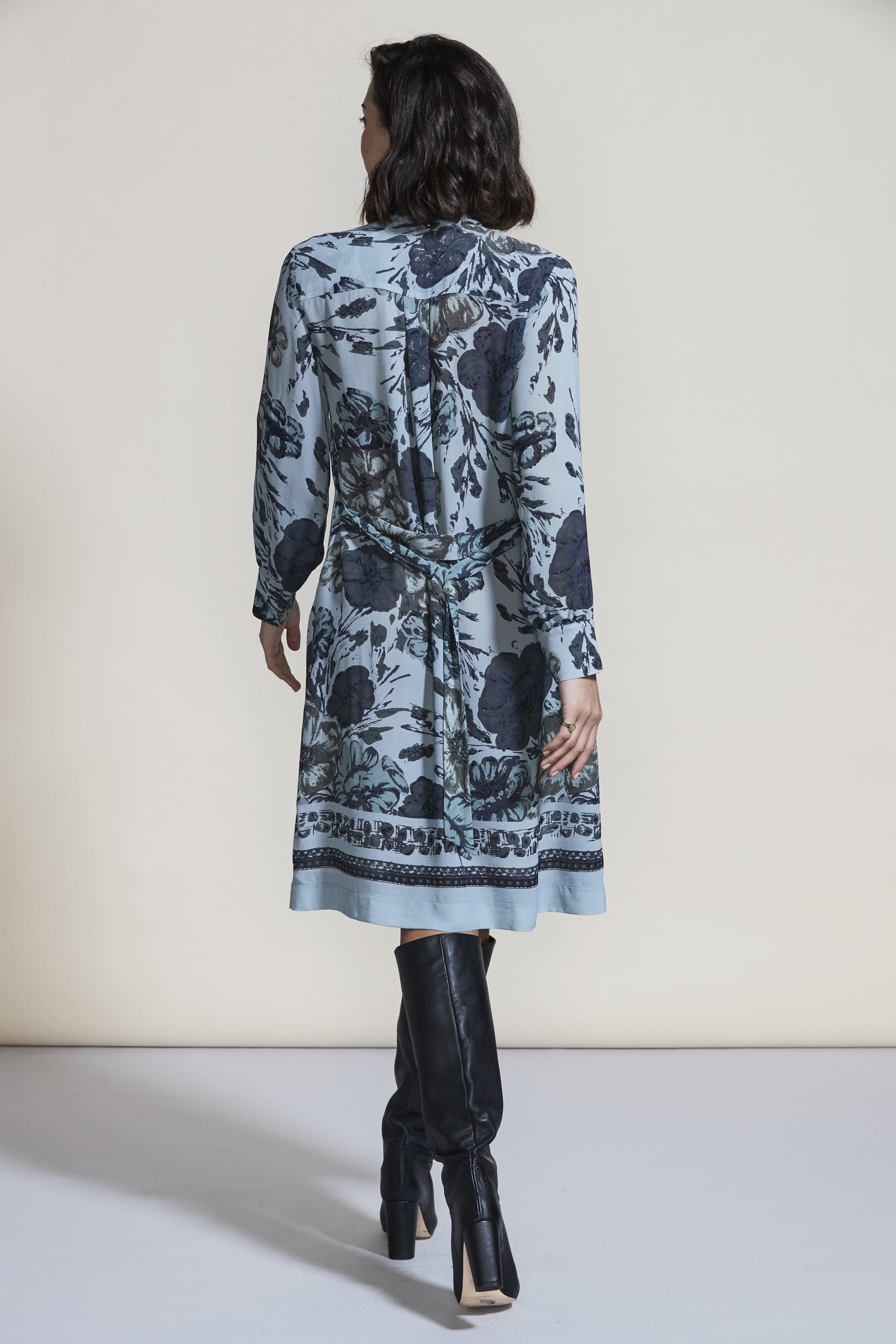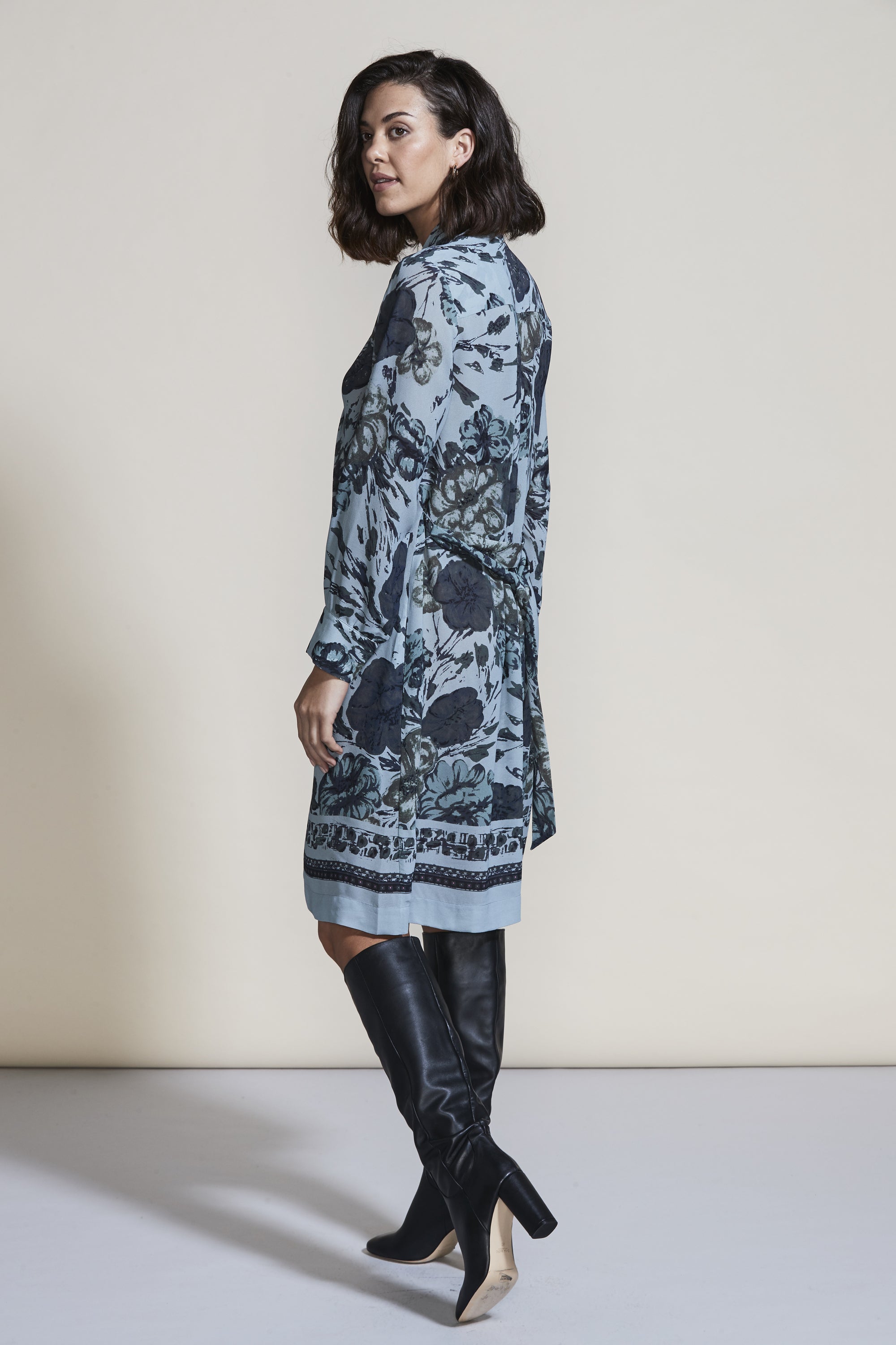 The painted floral of the Zen print will bring a bold elegance to your winter wardrobe. This easy fit shirt dress comes with side pockets, neck tie and waist tie, creating endless styling options.