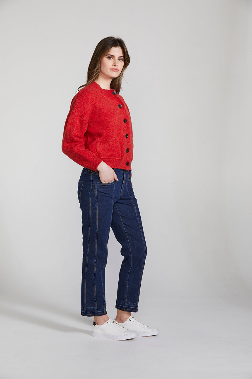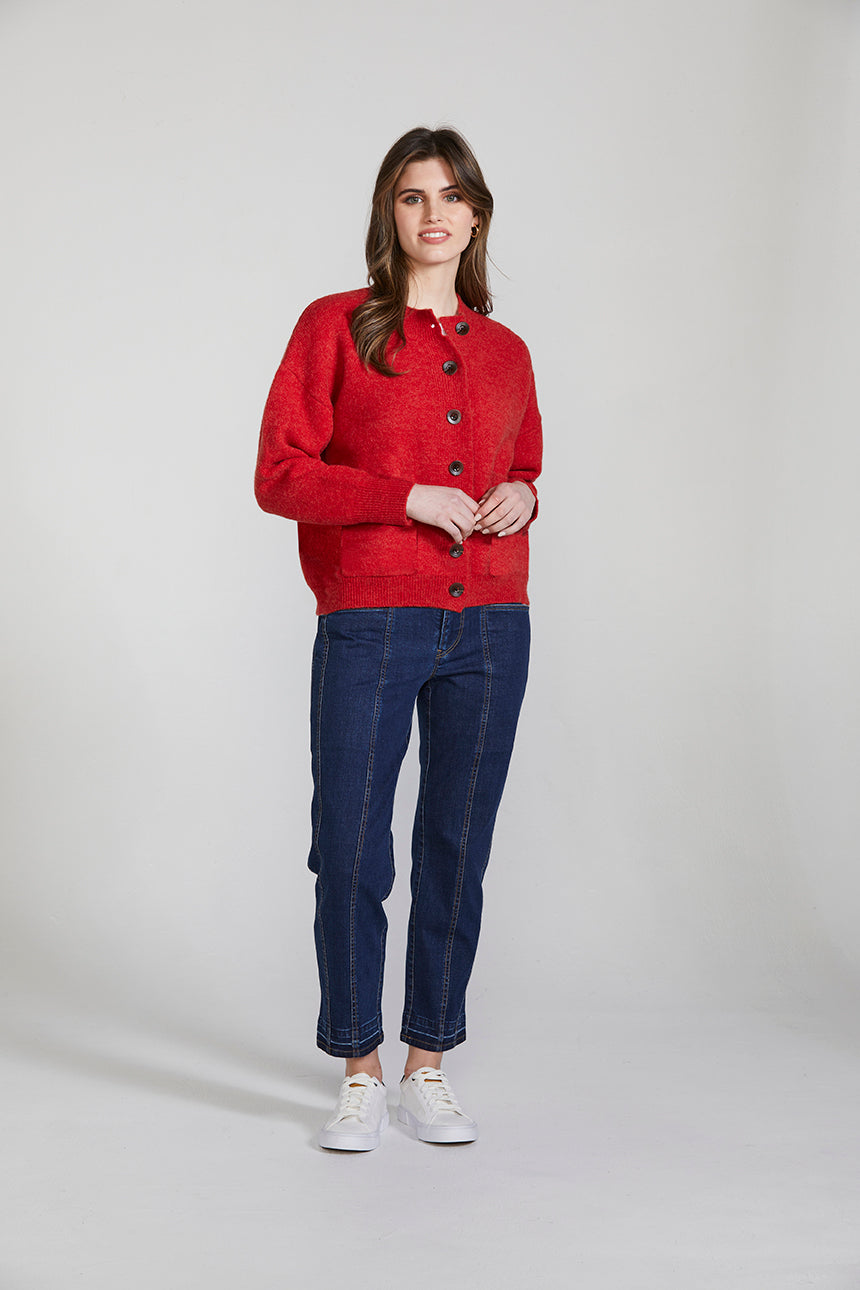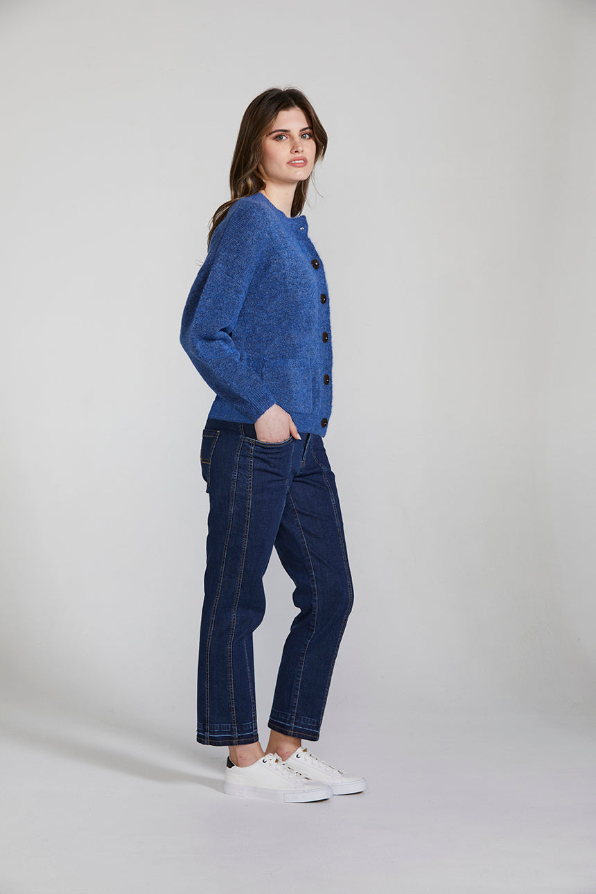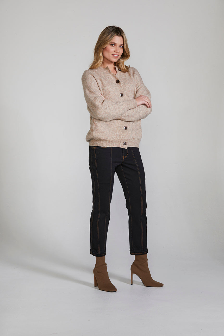 This mohair and wool blend knit cardi is the perfect layering piece for cold days. This winter essential is a classic buttoned-down cardi with statement buttons and functional front pockets. Wear it over our dresses for a cozy winter look, or pair it with jeans and sneakers to achieve a casual weekend look.