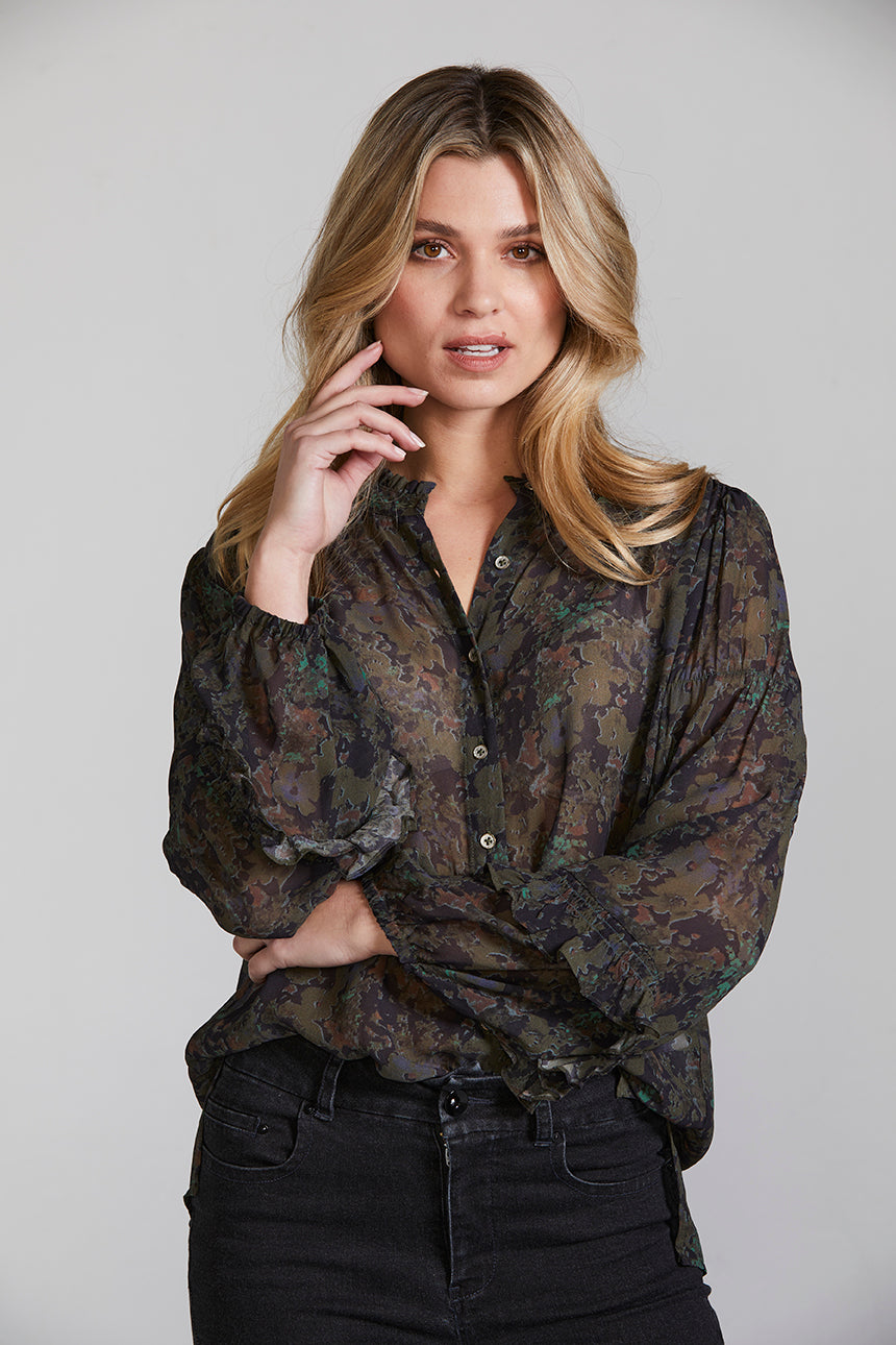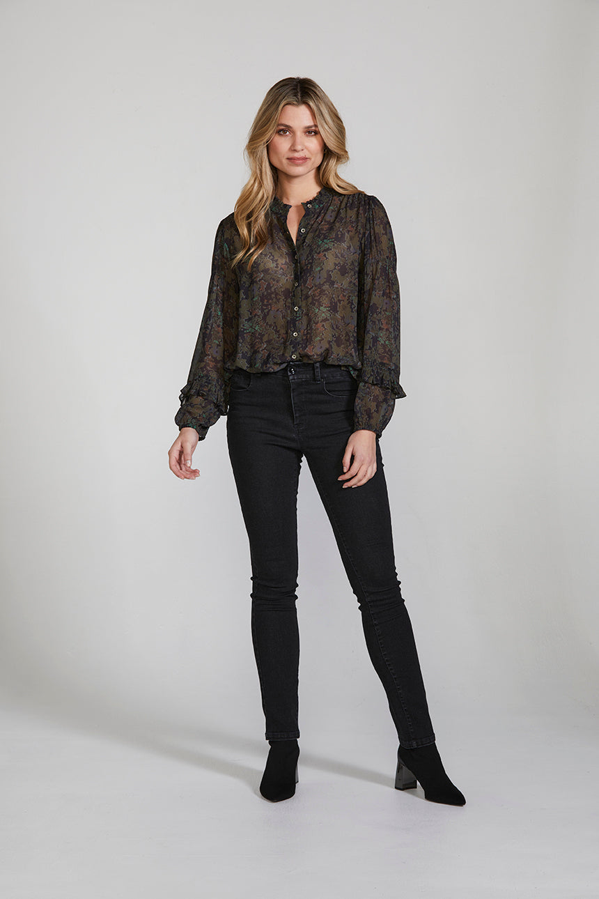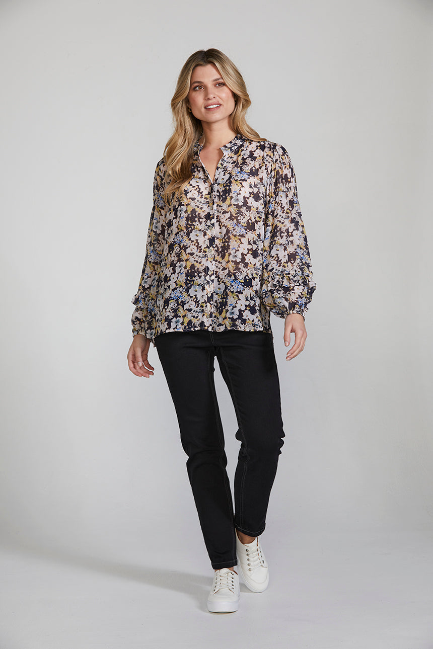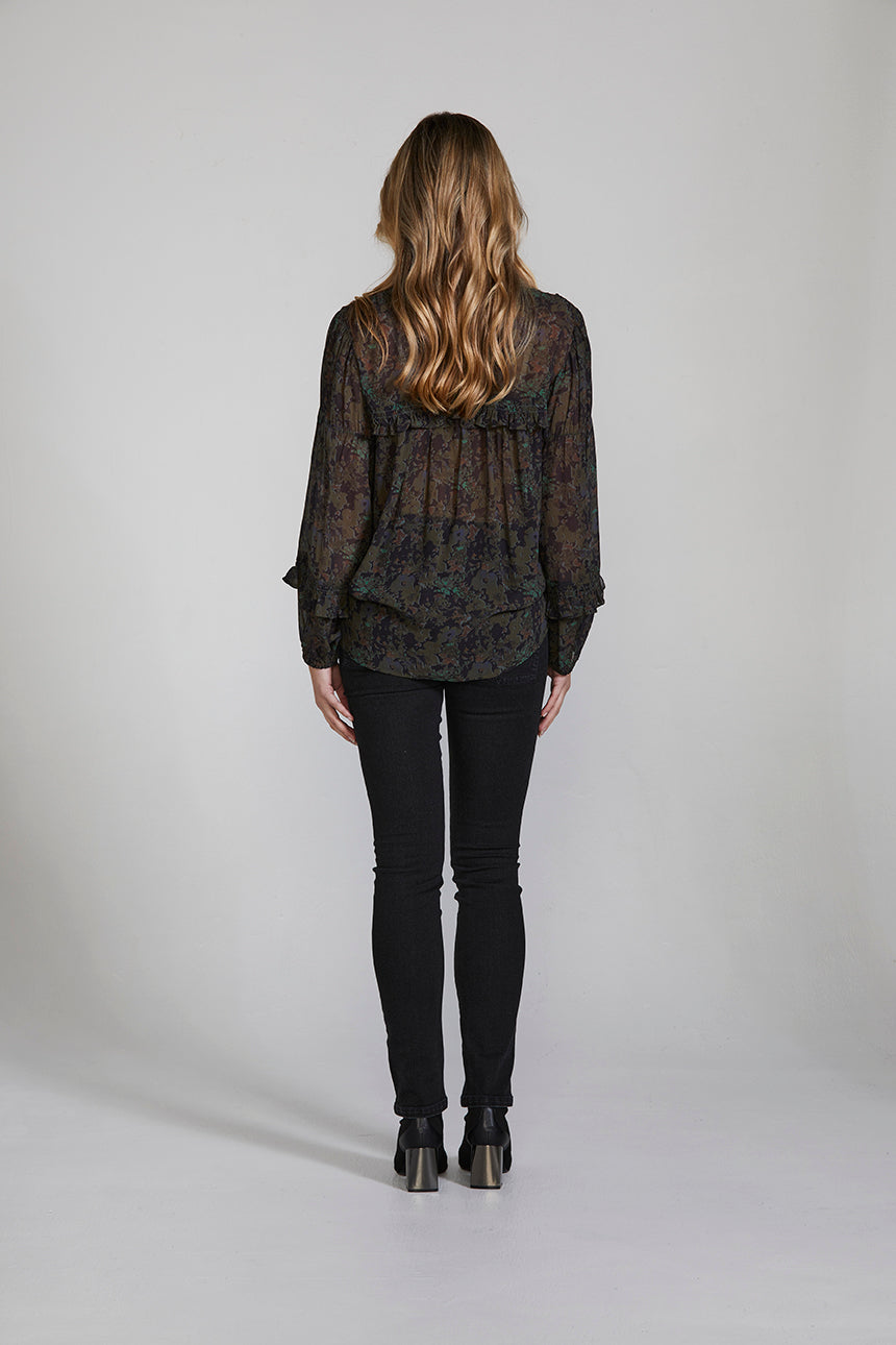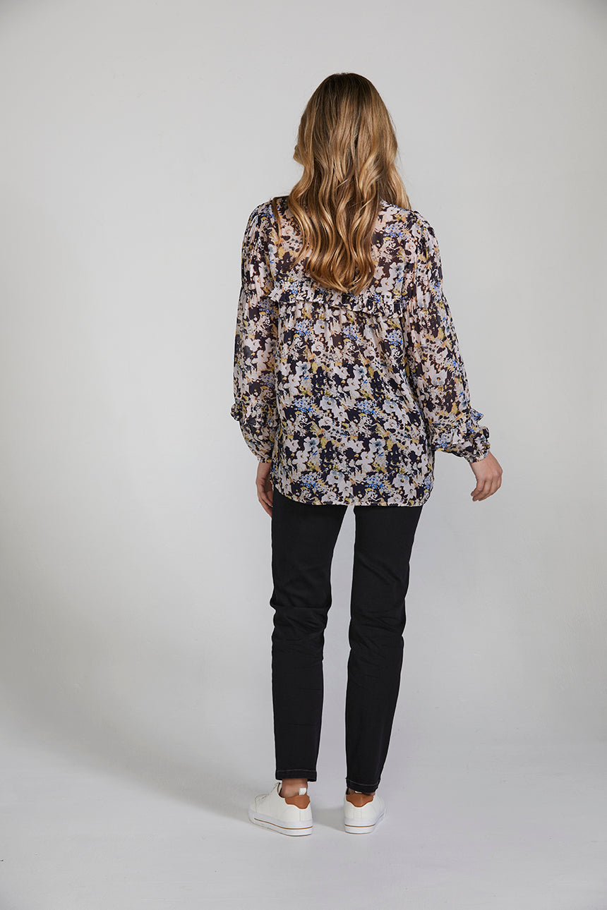 The Park Shirt is romantic and sophisticated, perfect for celebrating a new season. This shirt features a subtle watercolour floral print and softly gathered frill detailing at the neckline and sleeves. Wear it with black denim and boots for an effortless and chic look.