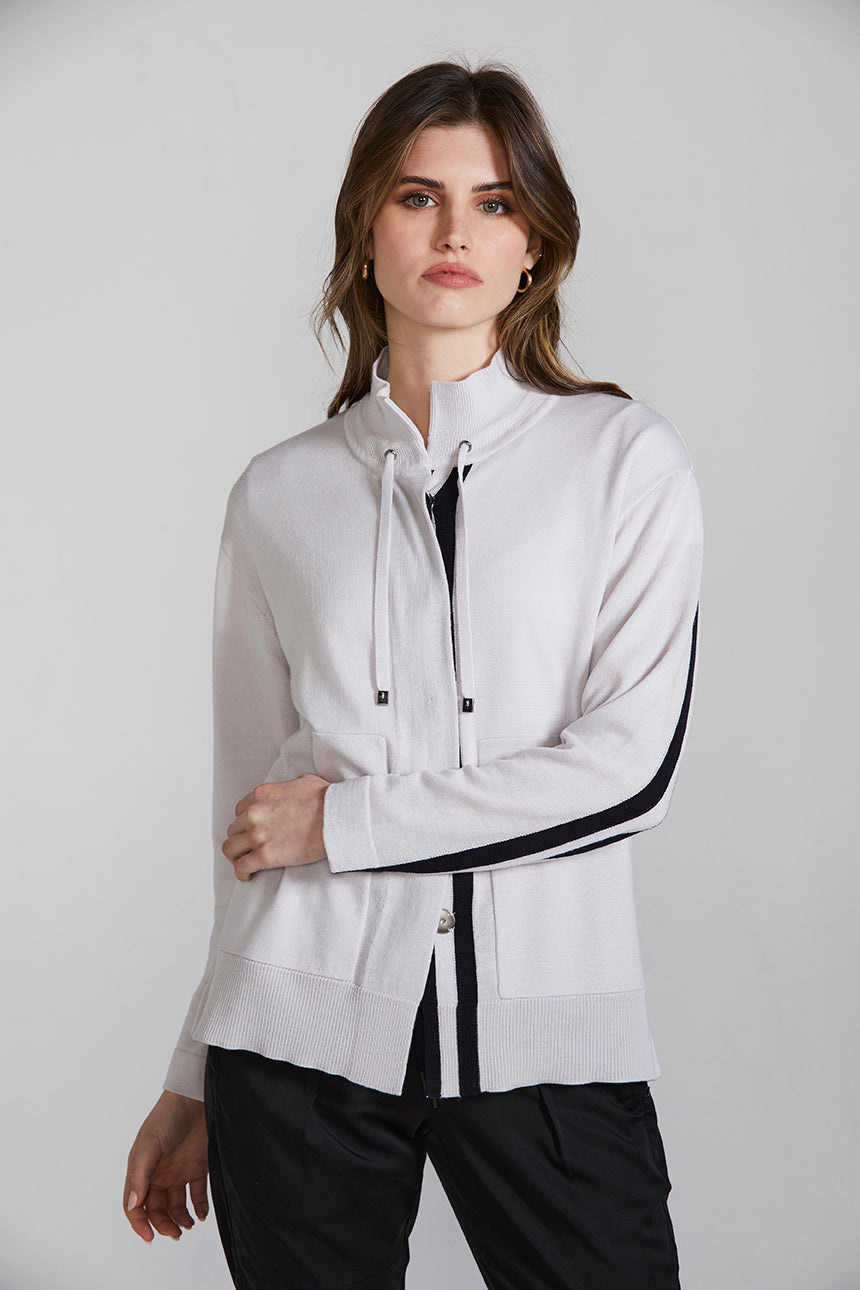 The Street Cardi in 100% merino wool is a winning addition to your wardrobe, Specially crafted to be soft and decidedly casual. Wear it with your favourite denim or wear it open over a t-shirt for an effortless yet on-trend style. Highlighted by contrast knitted stripe detail at sleeve and back stripes.