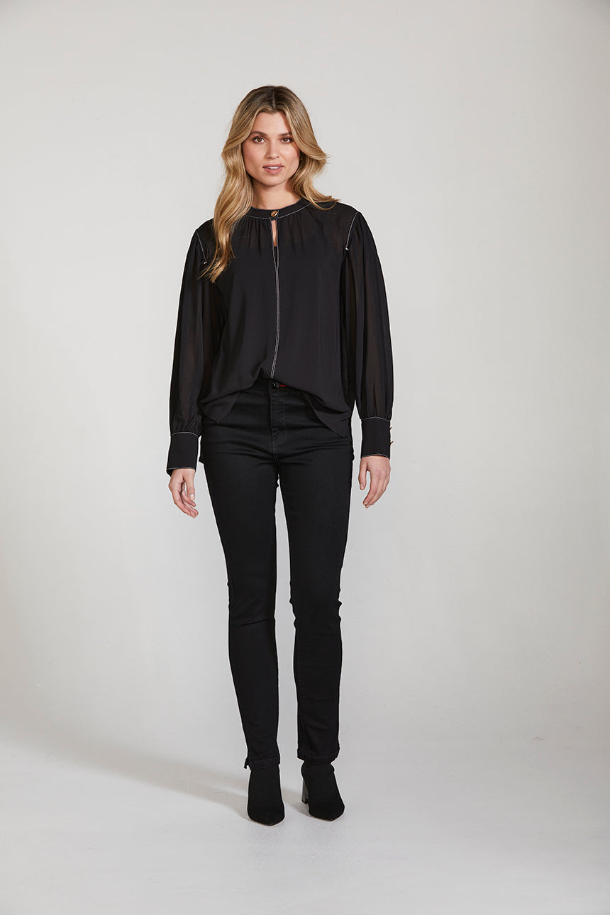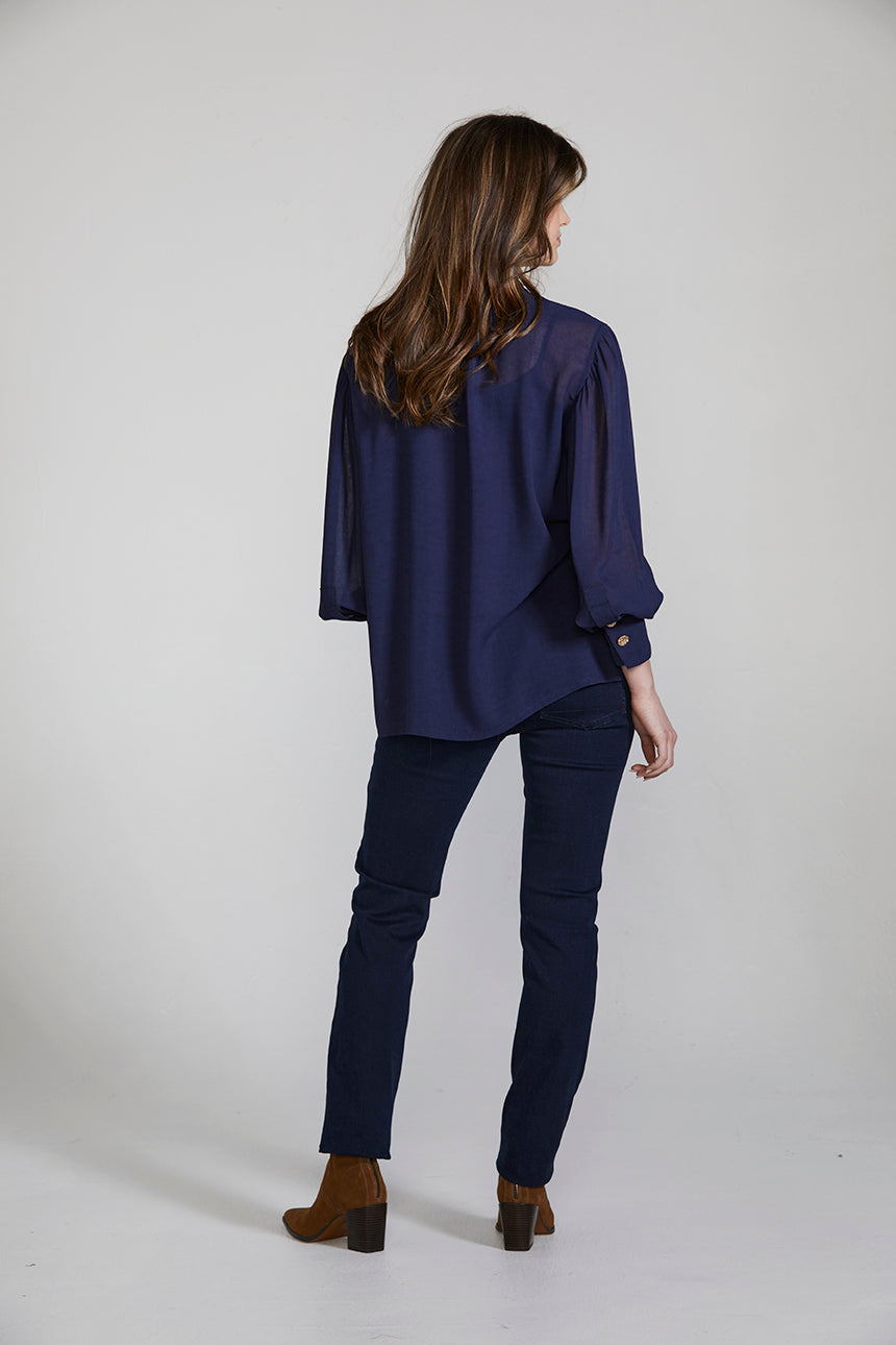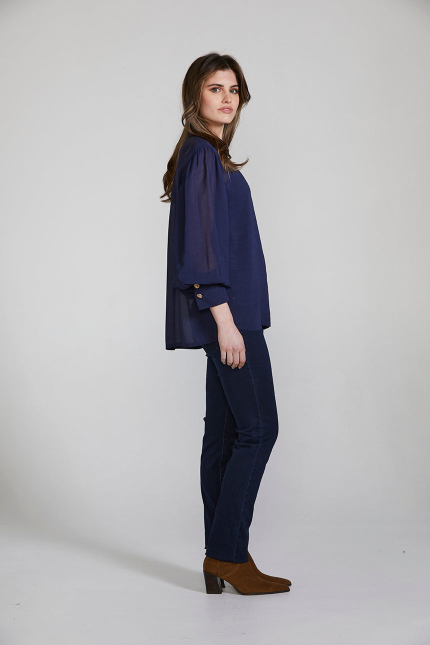 The Zoe Top is equal parts feminine and timeless. It features considered details such as a unique textured matt gold shank button, contrast stitching, and a gathered sleeve. Slightly oversized this effortless piece exudes style and sophistication. Team yours with our stripe suiting for a perfect business look.