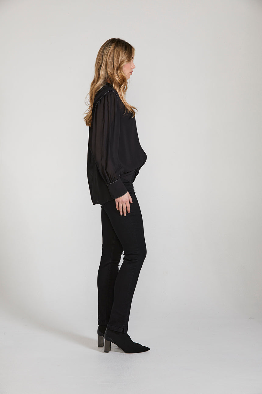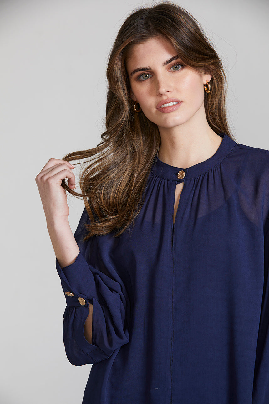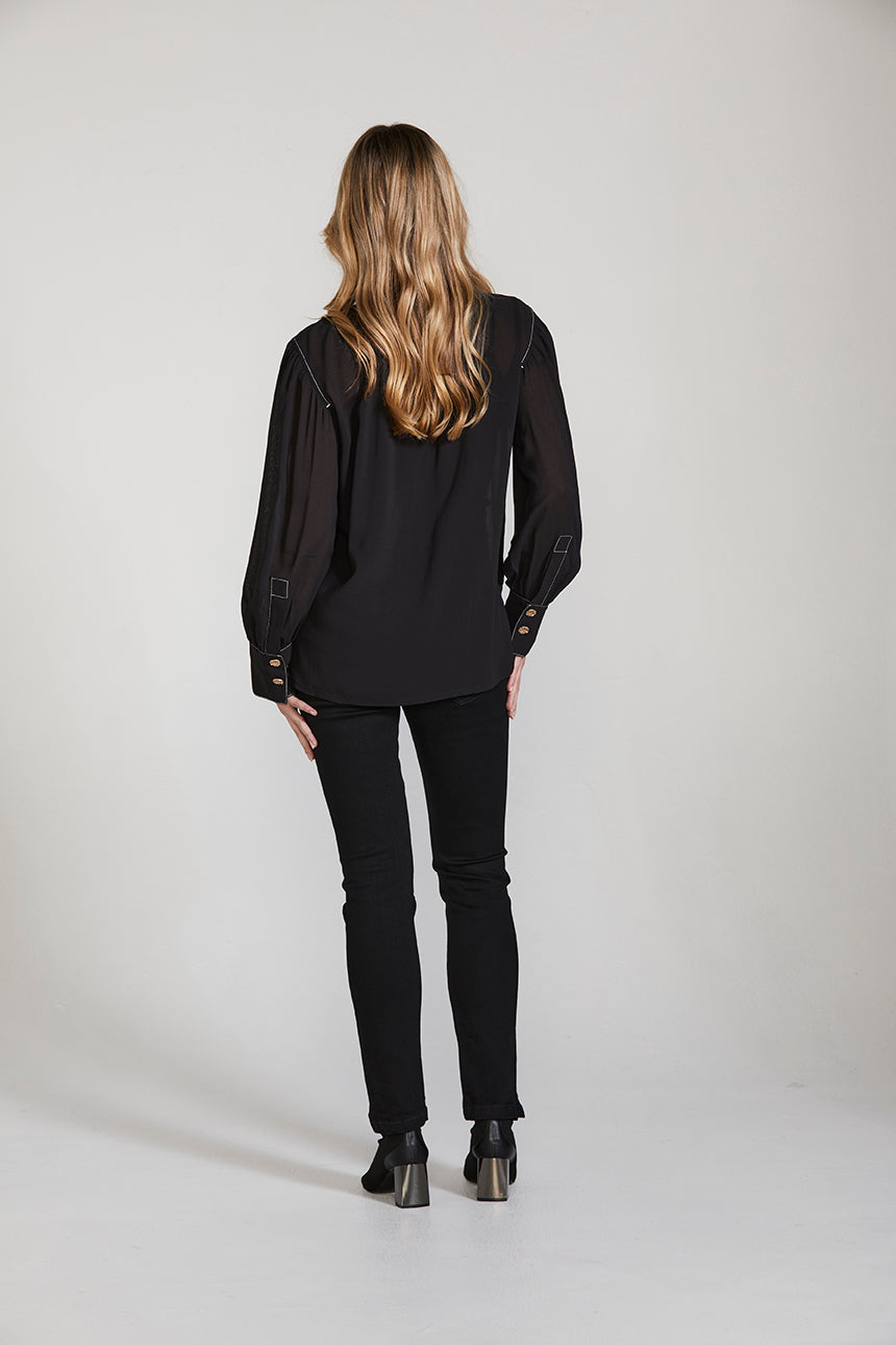 The Zoe Top is equal parts feminine and timeless. It features considered details such as a unique textured matt gold shank button, contrast stitching, and a gathered sleeve. Slightly oversized this effortless piece exudes style and sophistication. Team yours with our stripe suiting for a perfect business look.